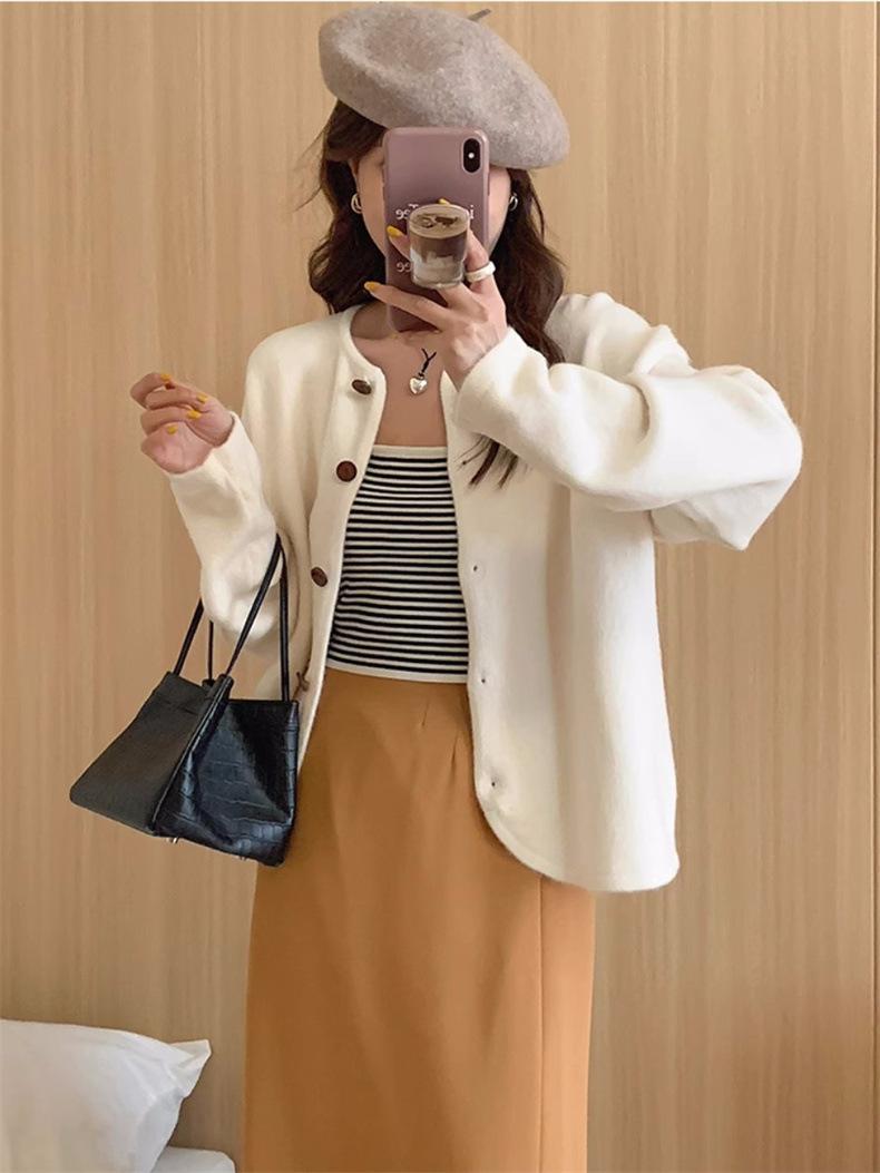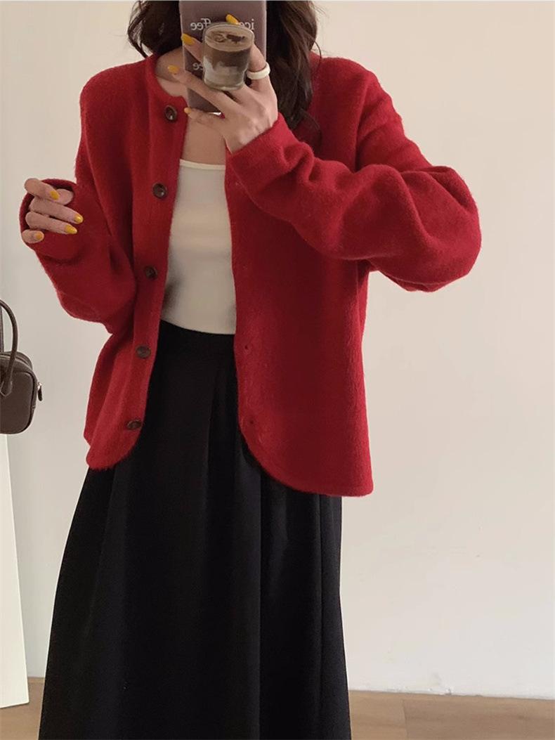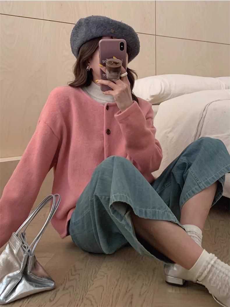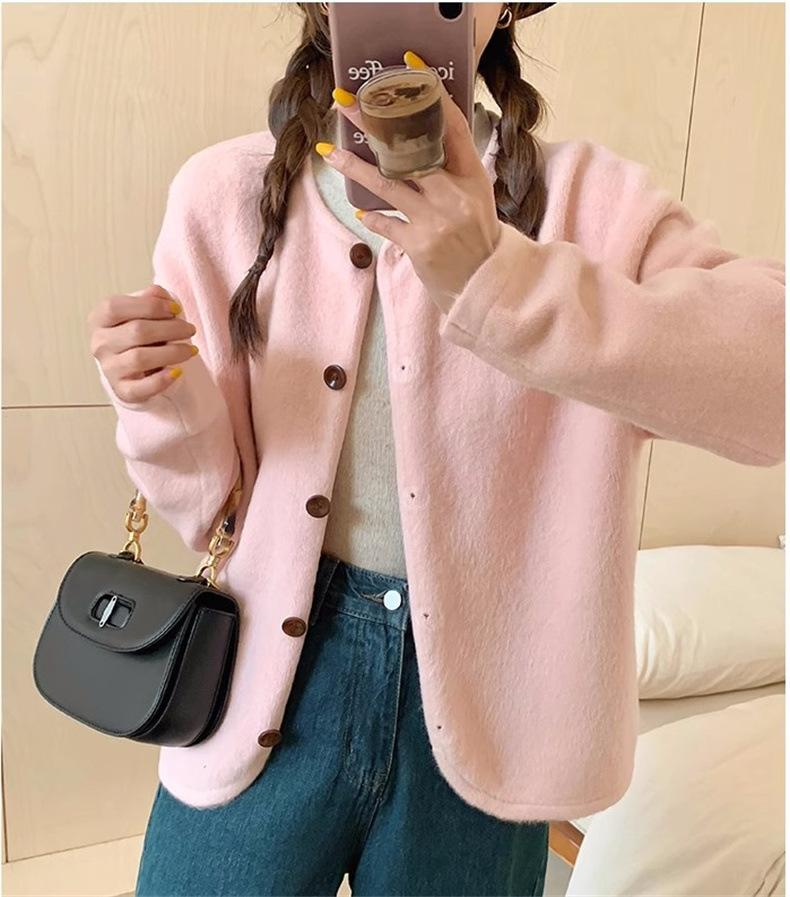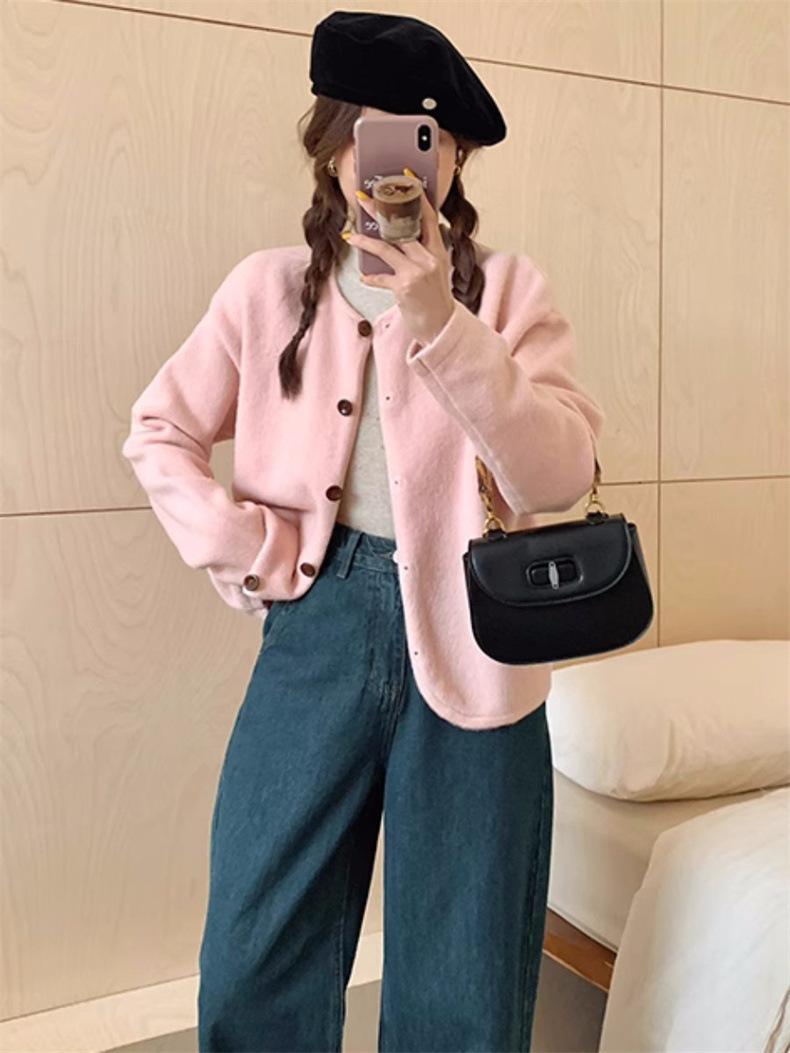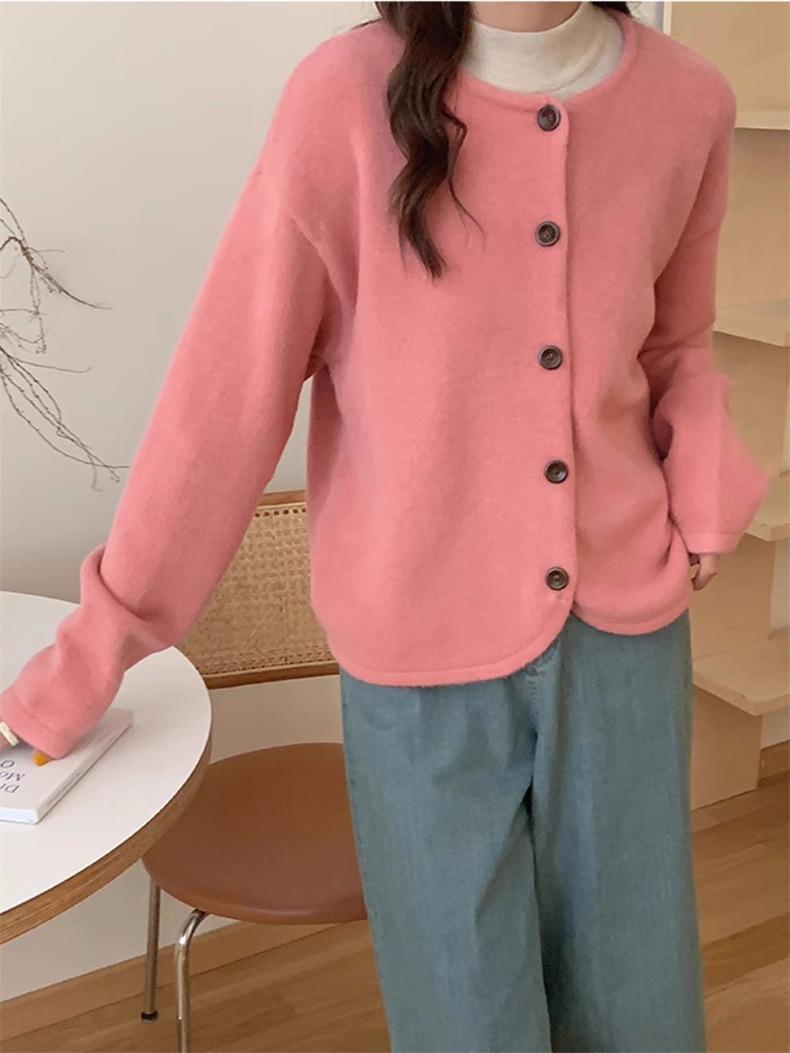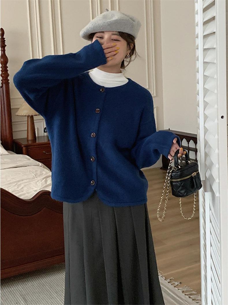 Suéter de punto suave y encerado para mujer, cárdigan estilo Hong Kong, elegante, de otoño, nuevo, de una sola botonadura, sencillo, informal, coreano