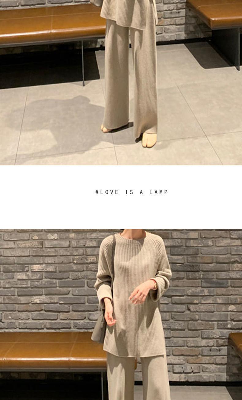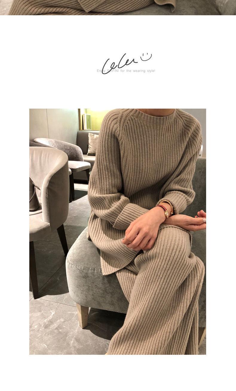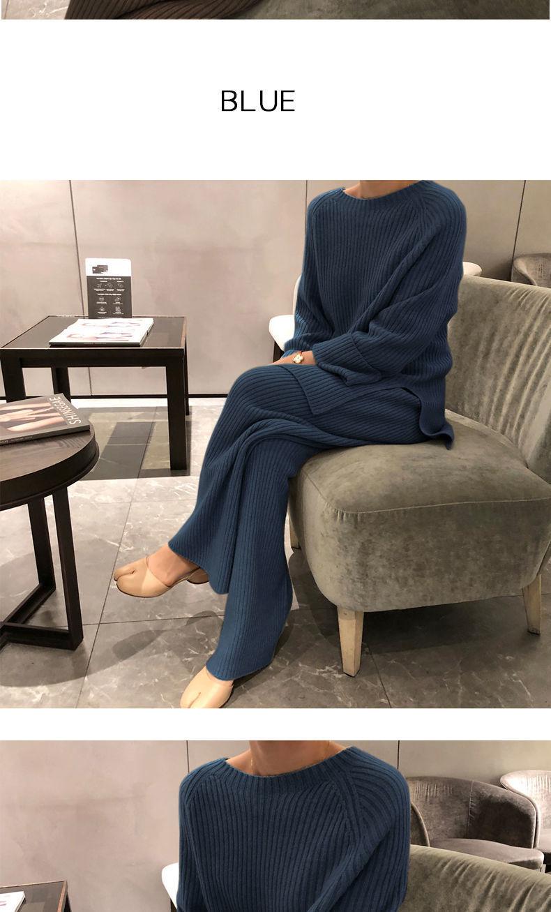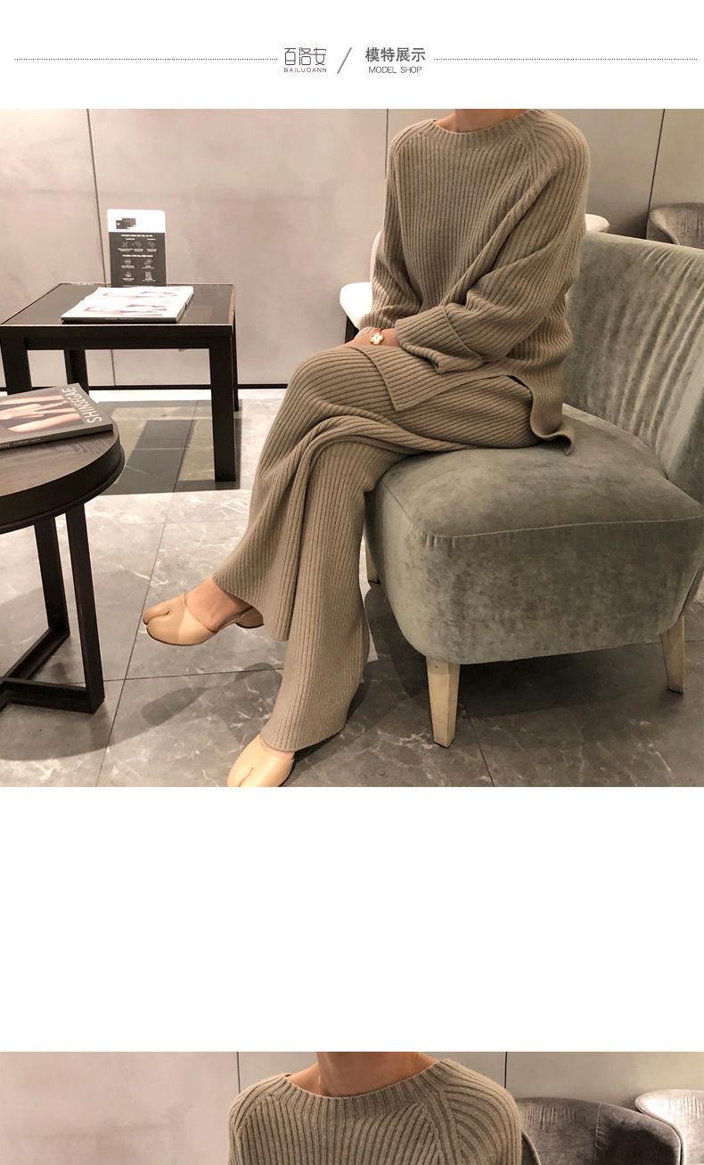 Traje de punto de moda para mujer, otoño e invierno 2024, nuevo estilo coreano, elegante, suelto, informal, suéter, pantalones de pierna ancha, conjunto de dos piezas