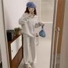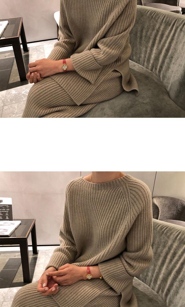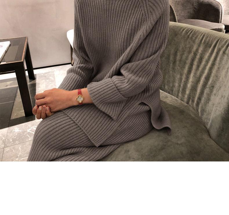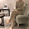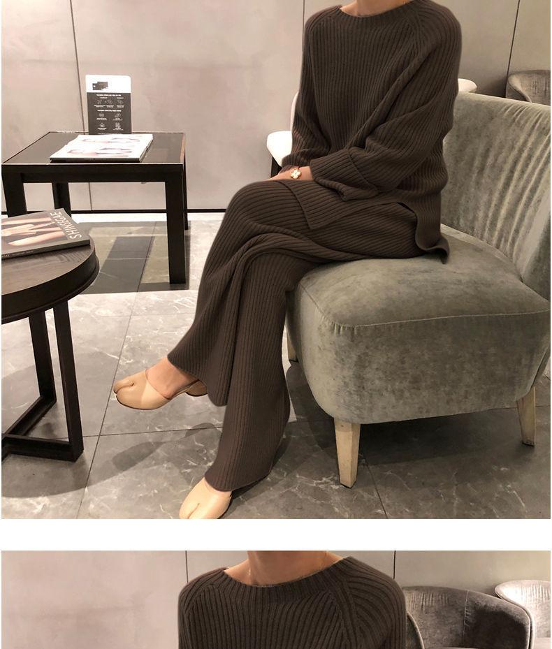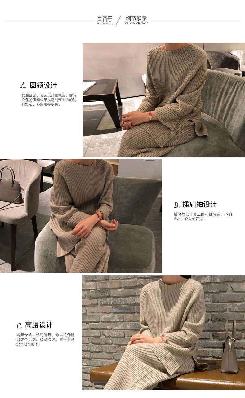 Traje de punto de moda para mujer, otoño e invierno 2024, nuevo estilo coreano, elegante, suelto, informal, suéter, pantalones de pierna ancha, conjunto de dos piezas