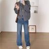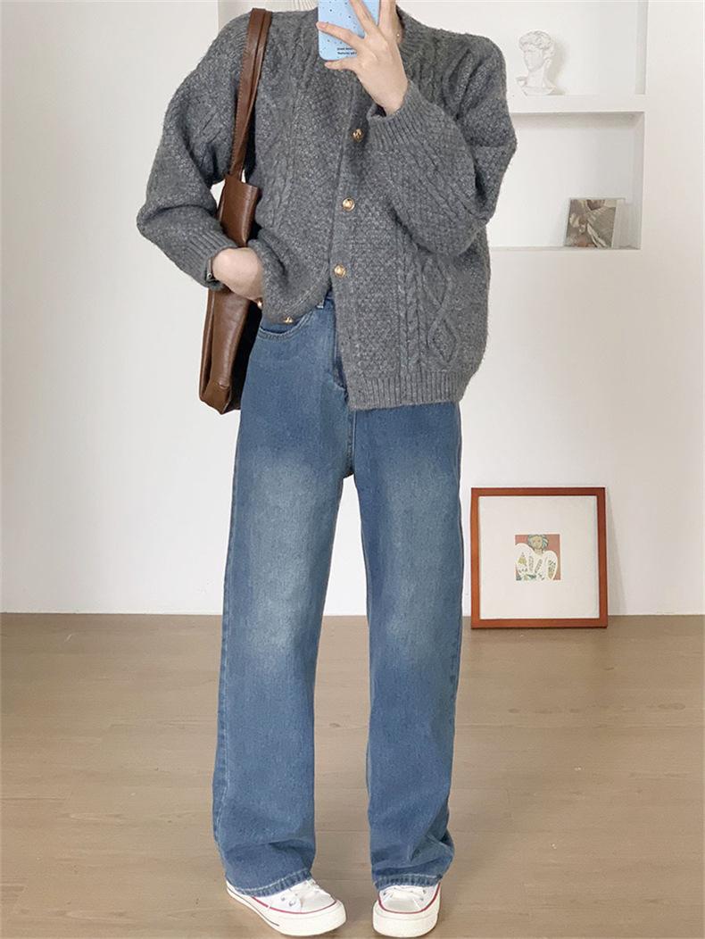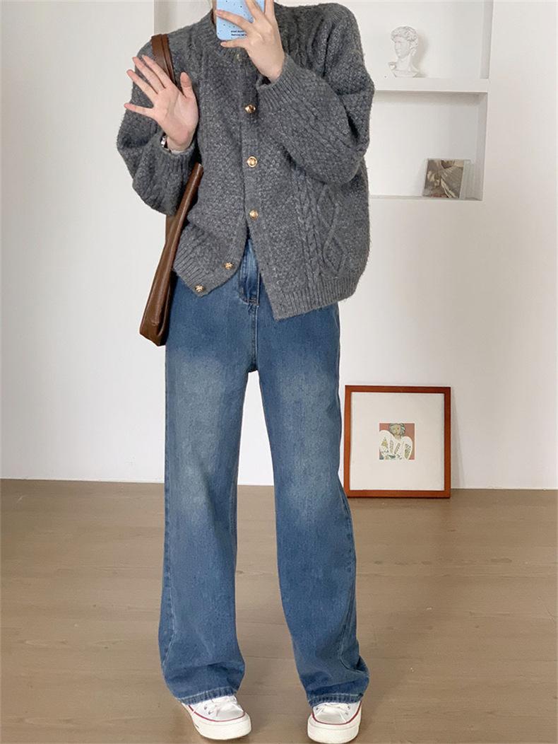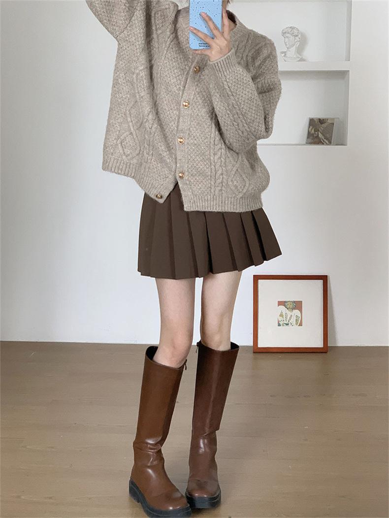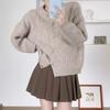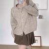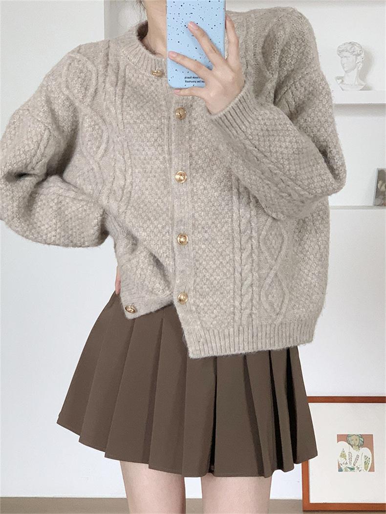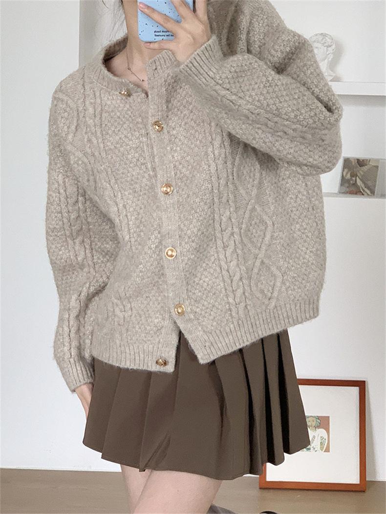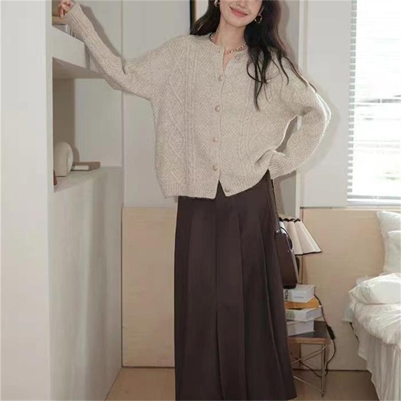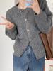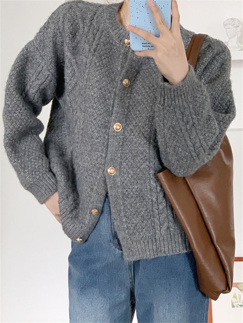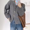 Cárdigan de punto suave y encerado de estilo japonés para mujer, suéter holgado informal de cuello redondo con cuadros torcidos de color sólido para otoño e invierno.