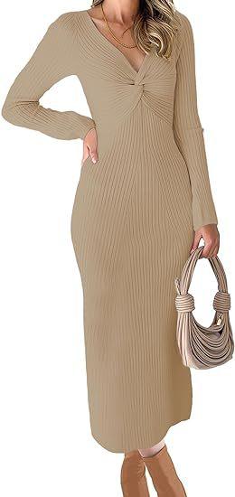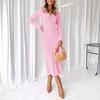 2024 Otoño Amazon Vestidos Europeos y Americanos Otoño Nuevo Vestidos de Manga Larga Torcidos Plisados Falda Larga Mujer