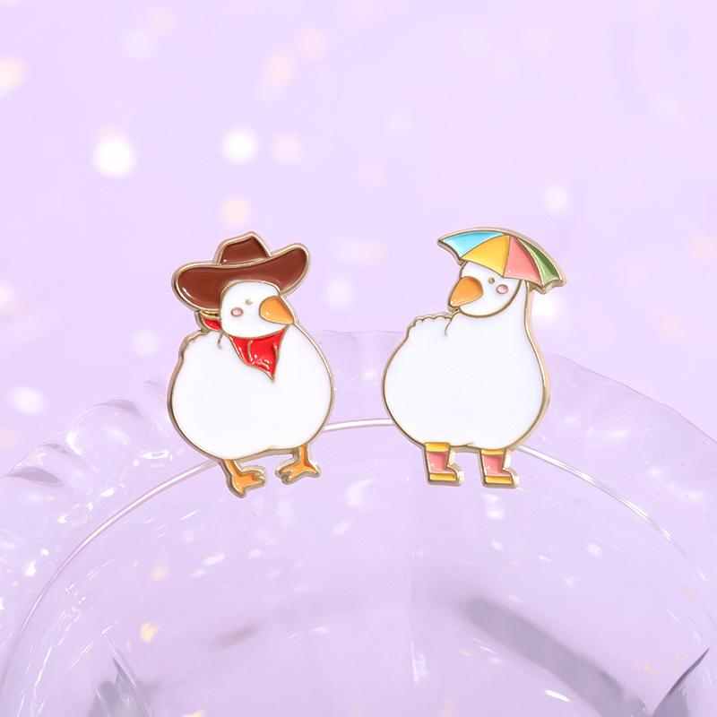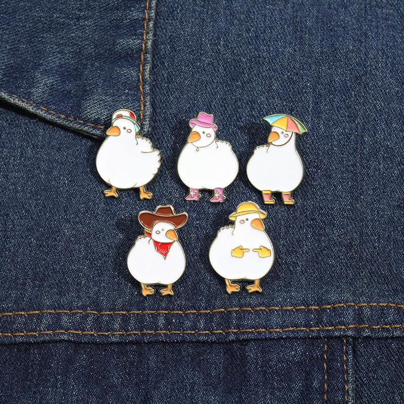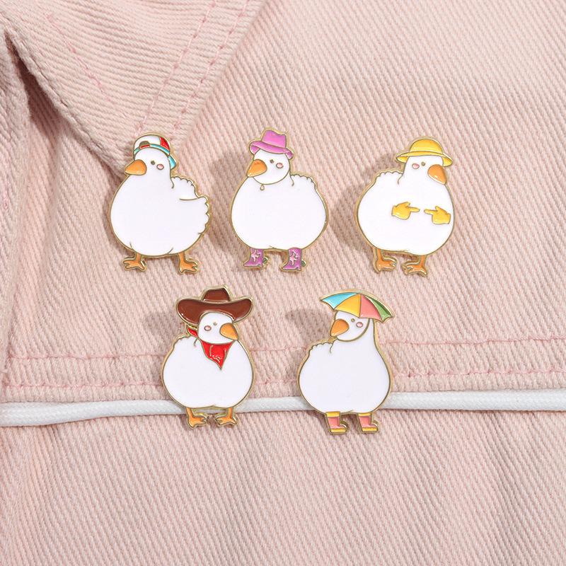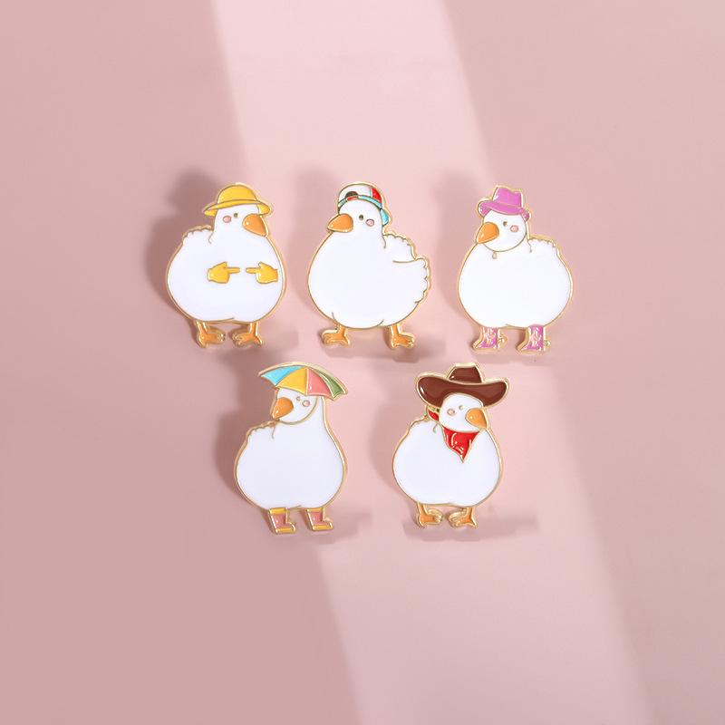 Lindo pato blanco insignia de metal animal mascota gordito exquisito regalo broche vestido