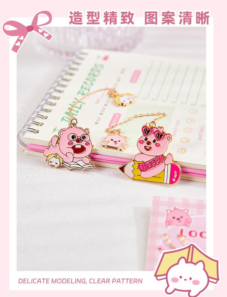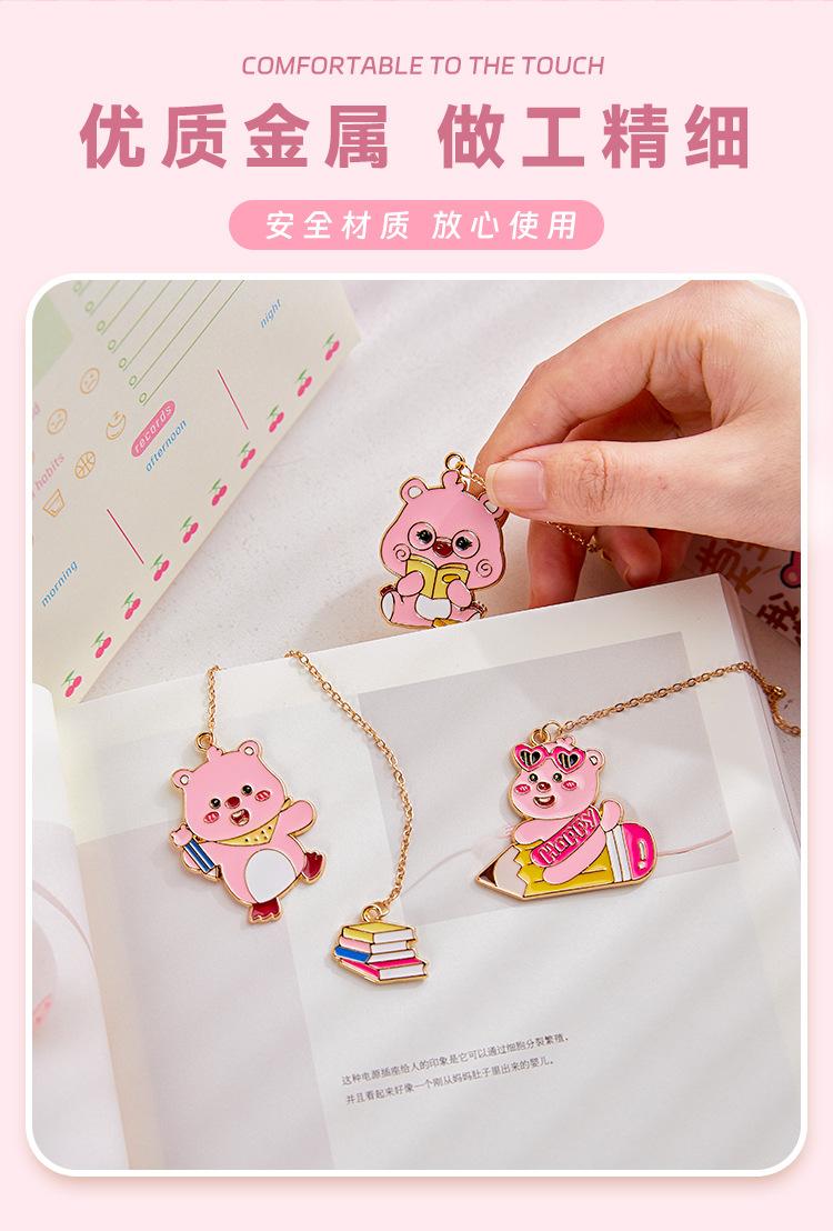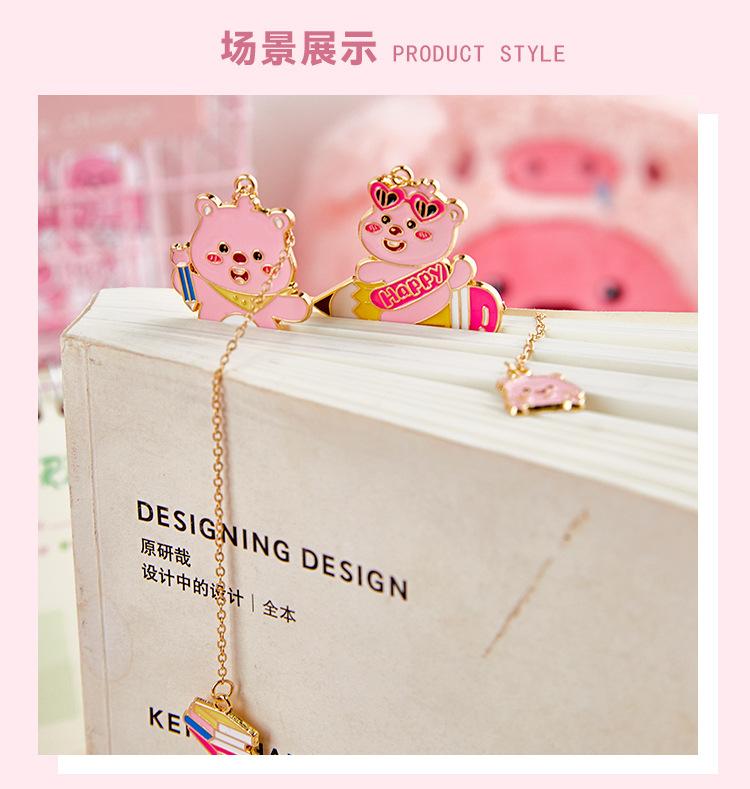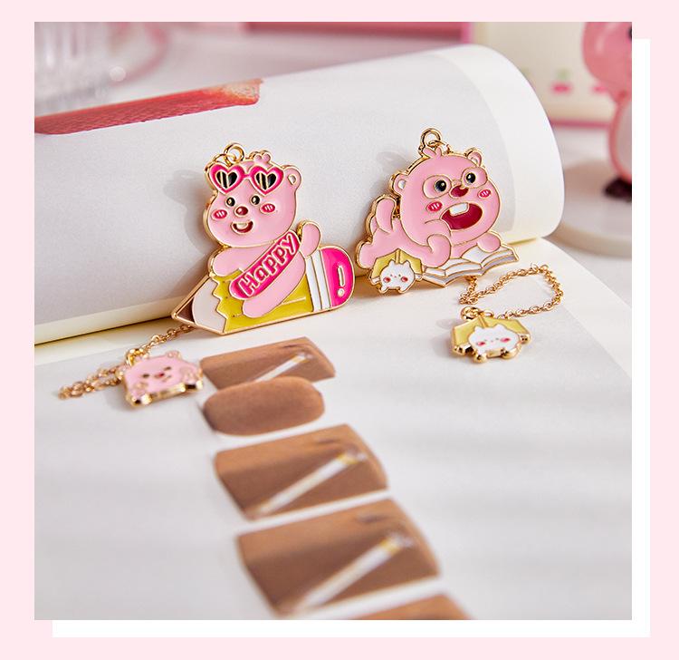 Lindo pequeño marcador de metal de castor, alto valor de color, dibujo animado, regalo creativo, carpeta de páginas de lectura exquisita para estudiantes