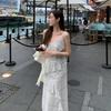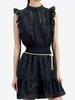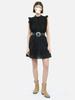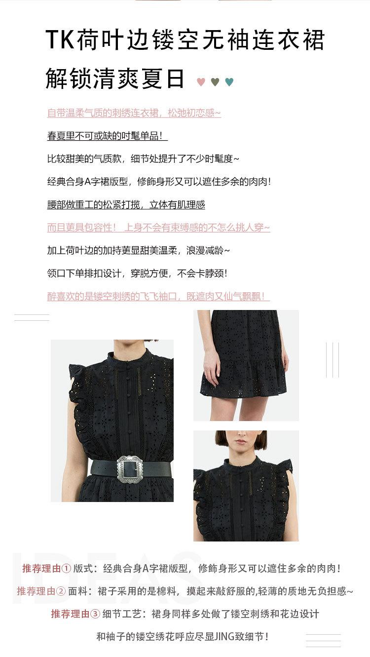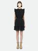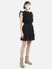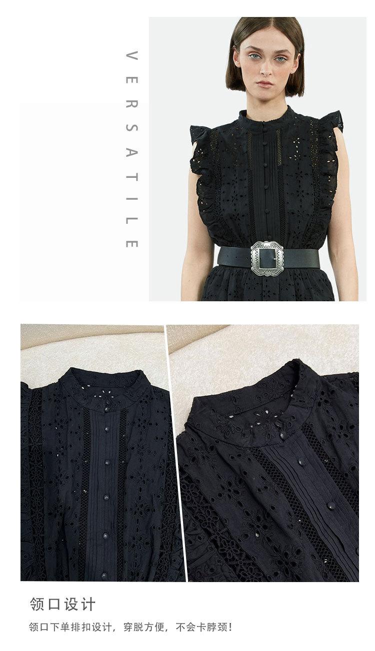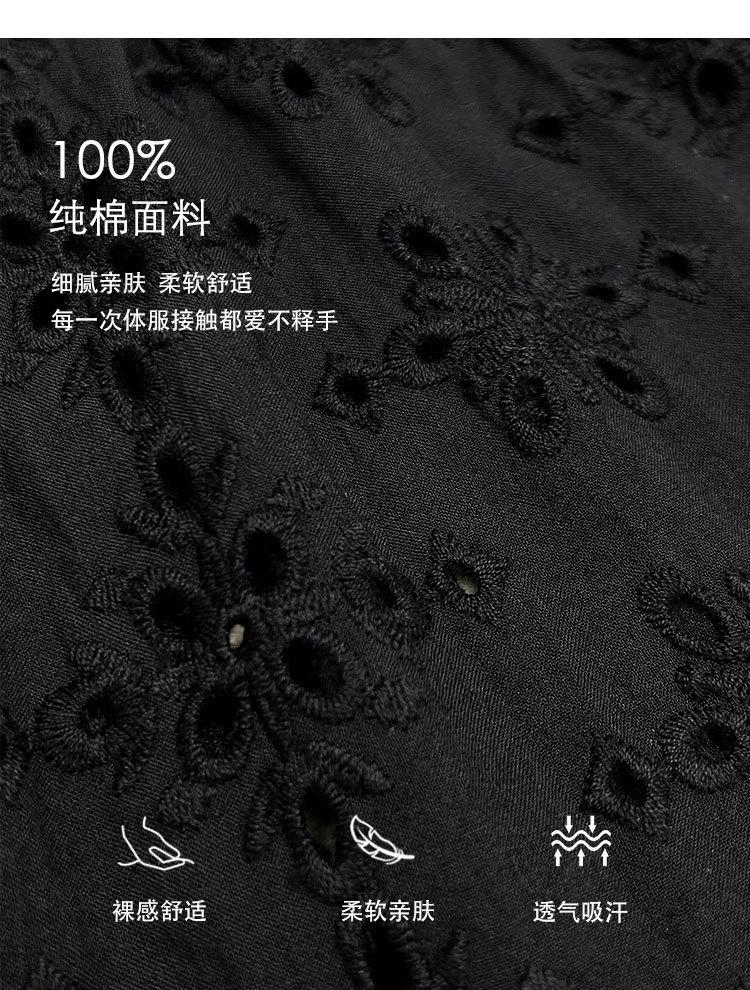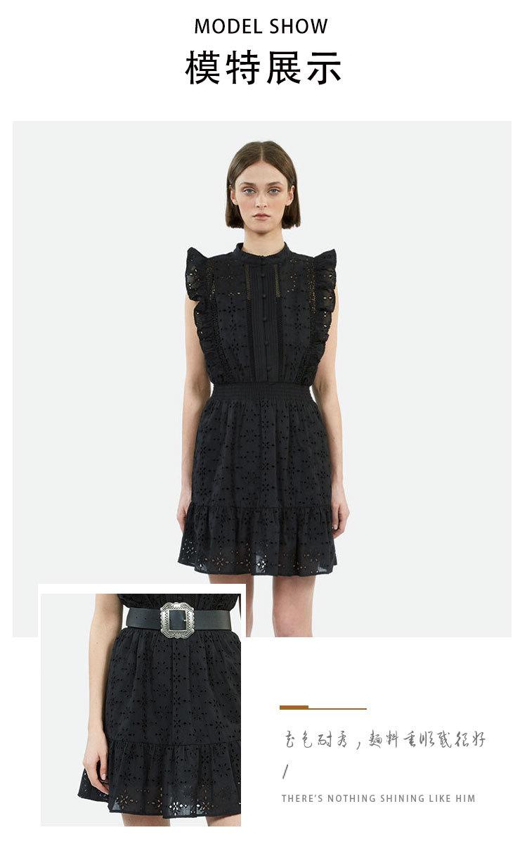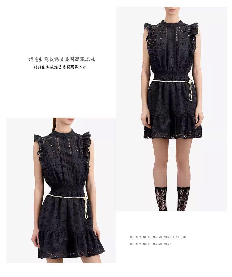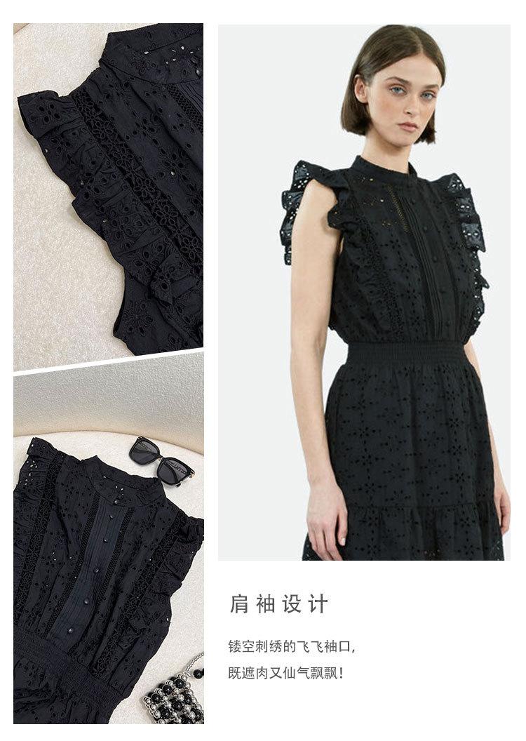Verano Nuevo Francés Negro Dulce y Lindo Bordado Calado Manga Corta con Volantes Vestido Corto