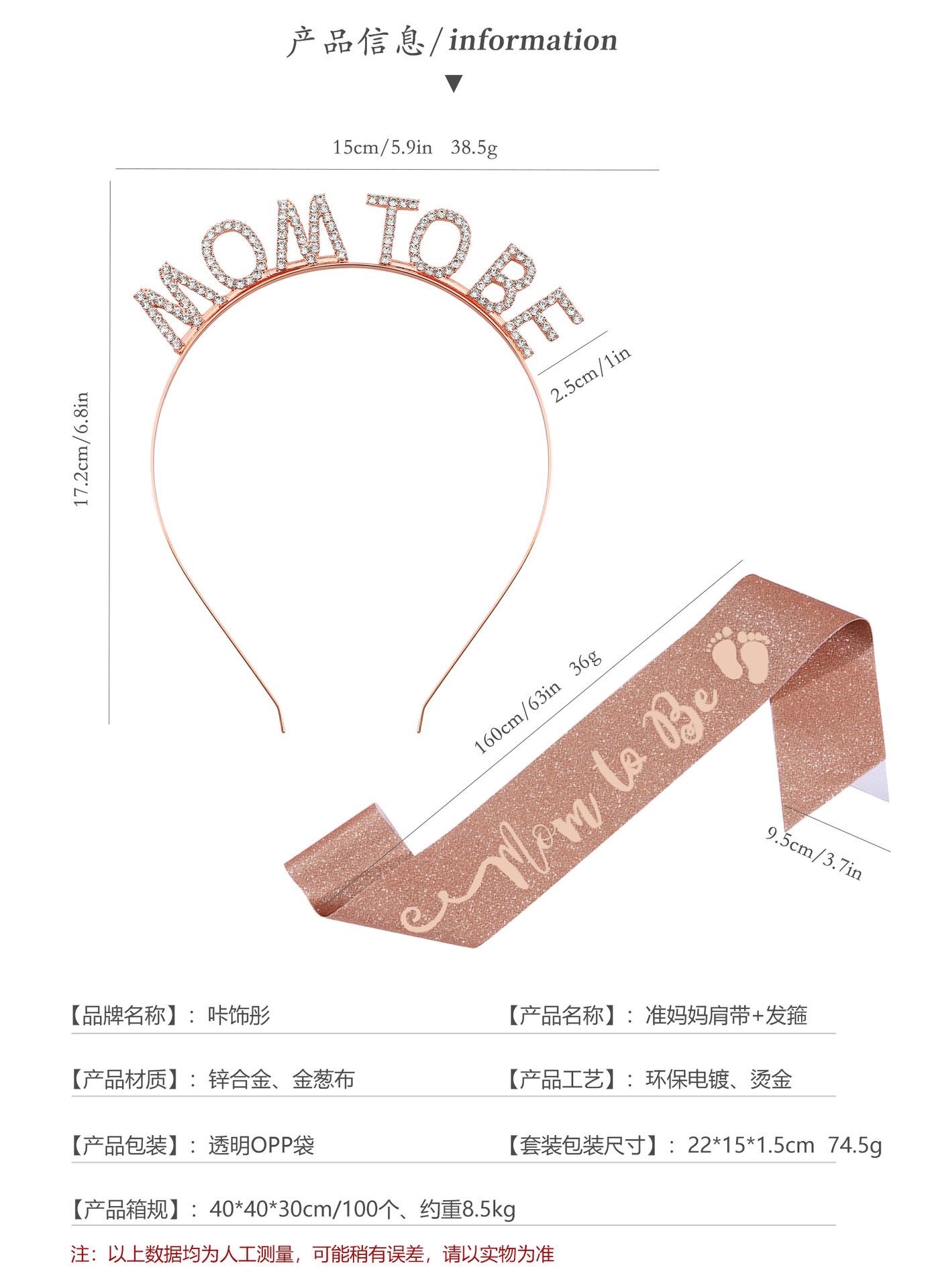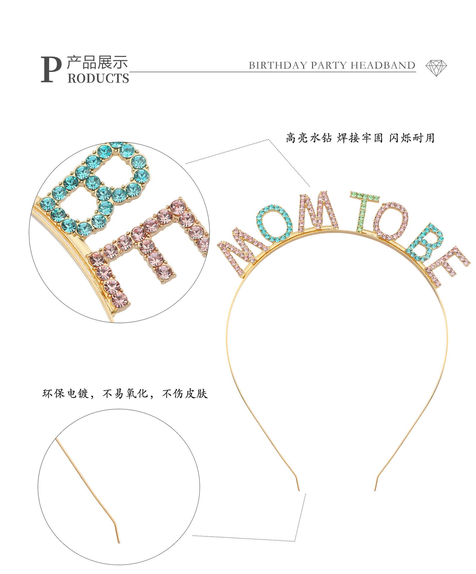 Moda Europea y Americana Aleación Cristal Diadema de Letras Set de Correa para el Hombro para Mamá por Nacer Tocado Cinta