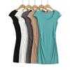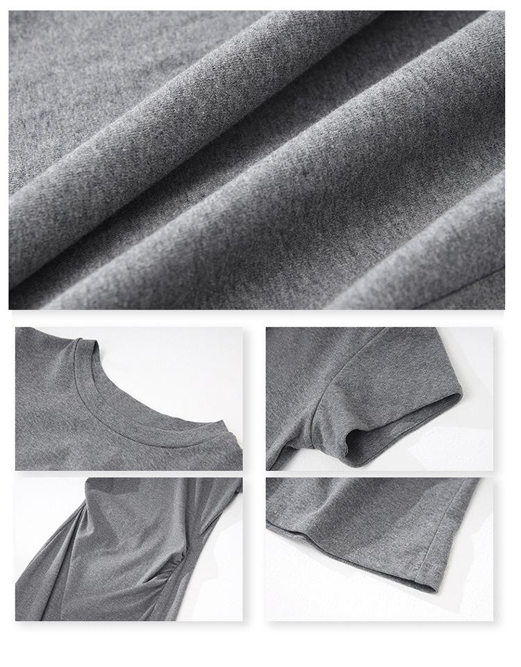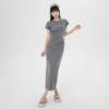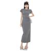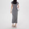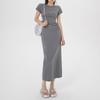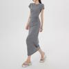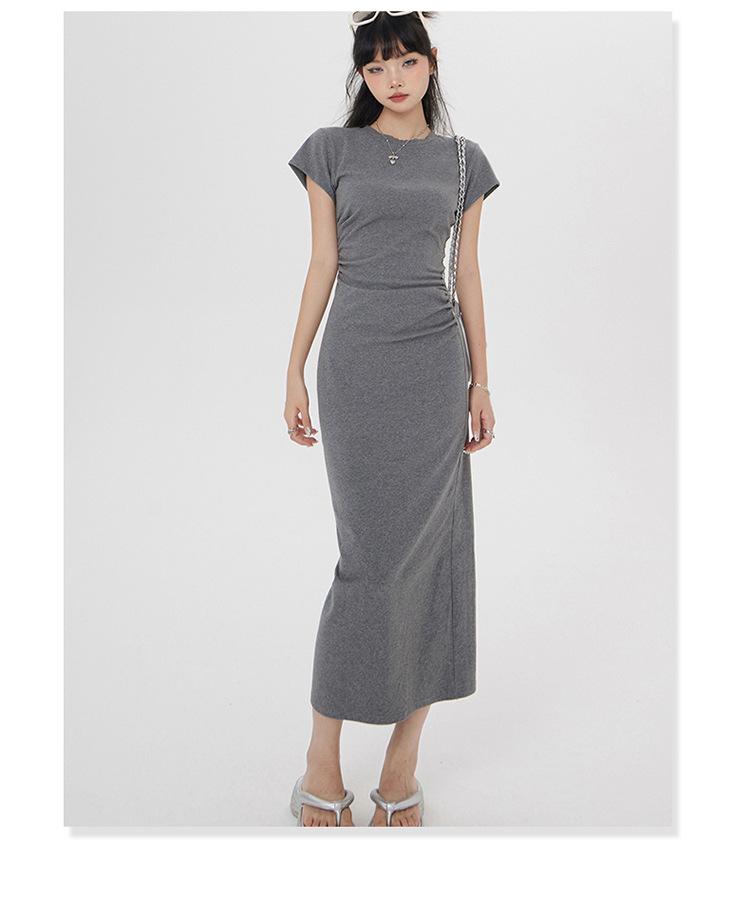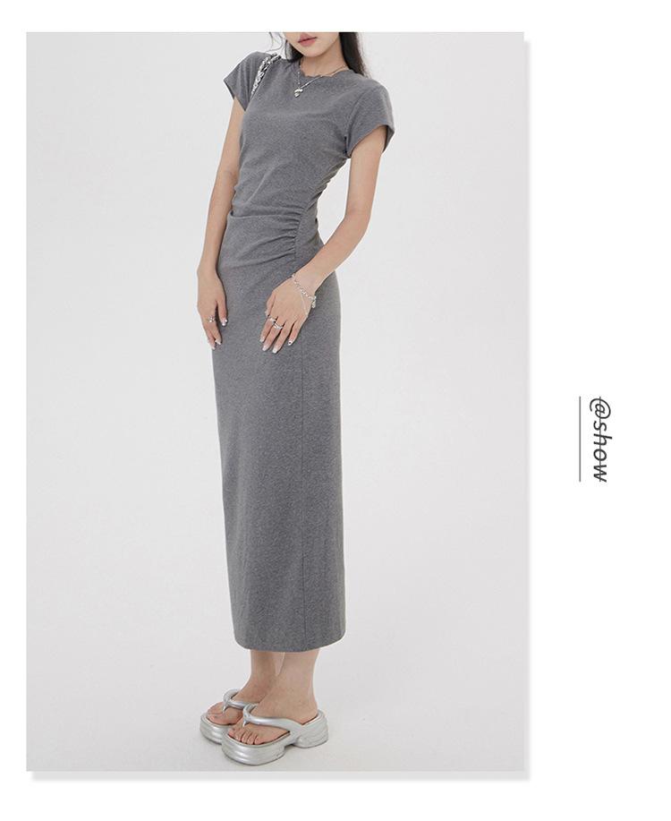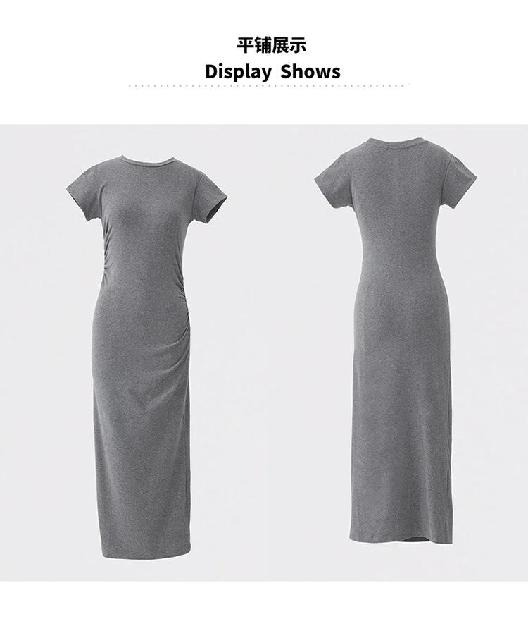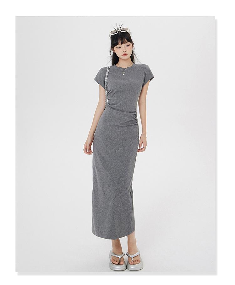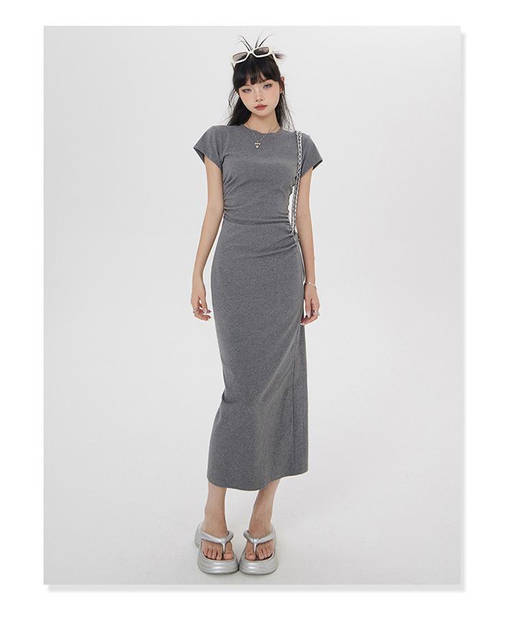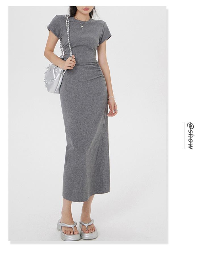 Vestido ajustado de manga corta para mujer, estilo Pure Desire, color gris, ajustado, con cintura ajustada y diseño plisado, a la moda, largo.