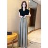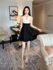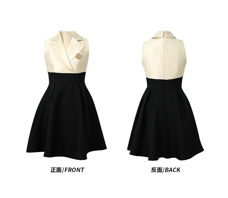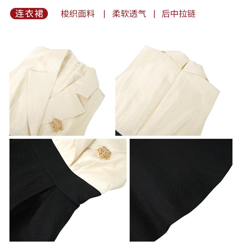 2025 Nuevo Estilo de Verano Traje de Estilo Francés para Mujer Cuello de Solapa Cintura Vestido Esponjoso Falso de Dos Piezas Falda Corta Línea A 30932