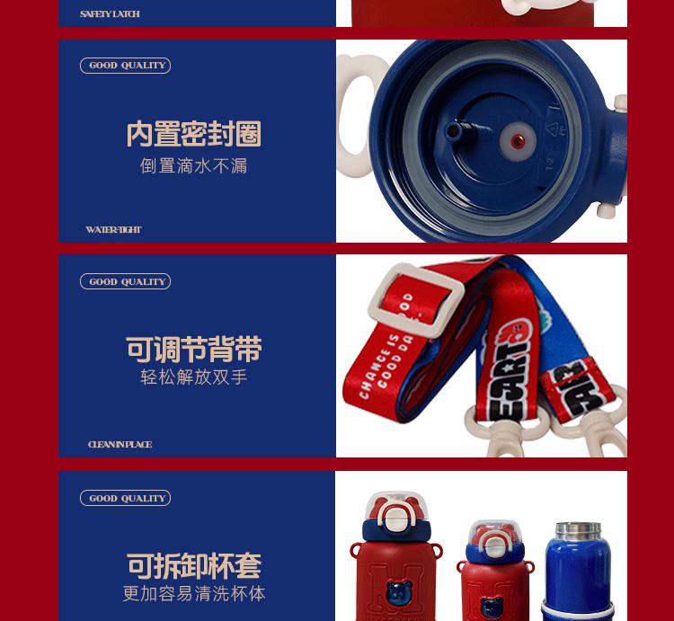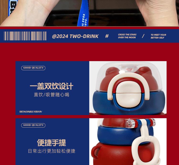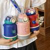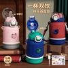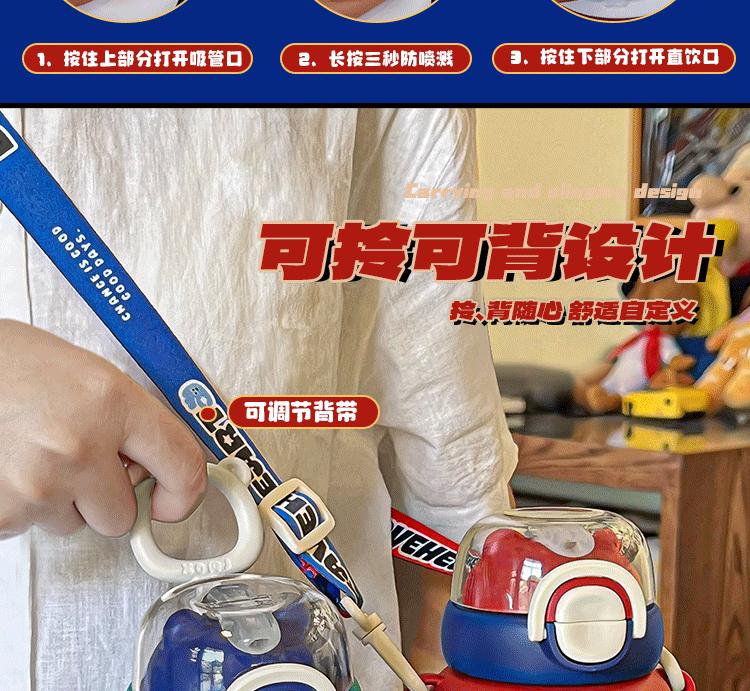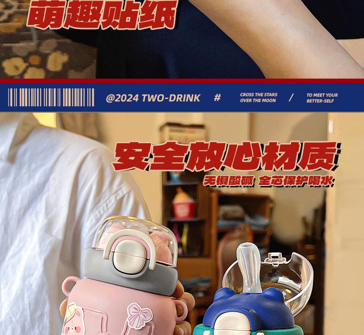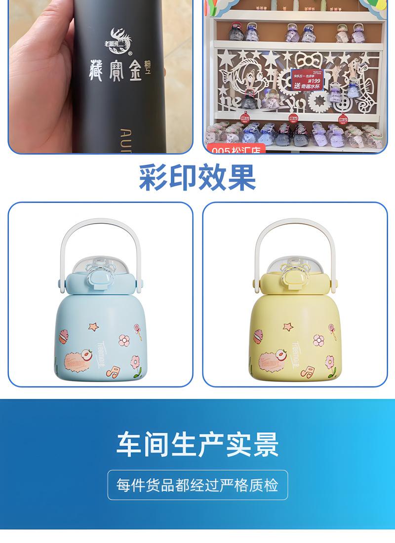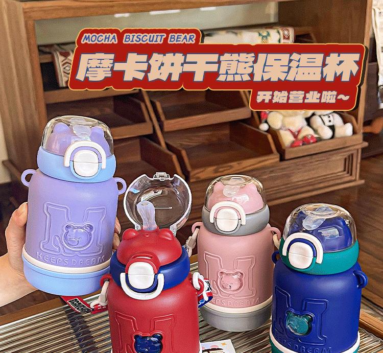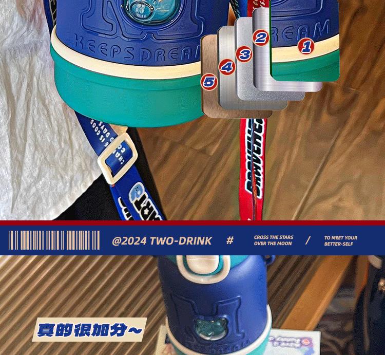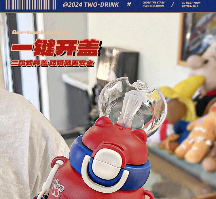 Acero Inoxidable 316 Vaso Termo Doméstico de Gran Capacidad Dibujos Animados Portátil con Correa Vaso de Agua Anticaídas Vaso con Pajita para Estudiantes