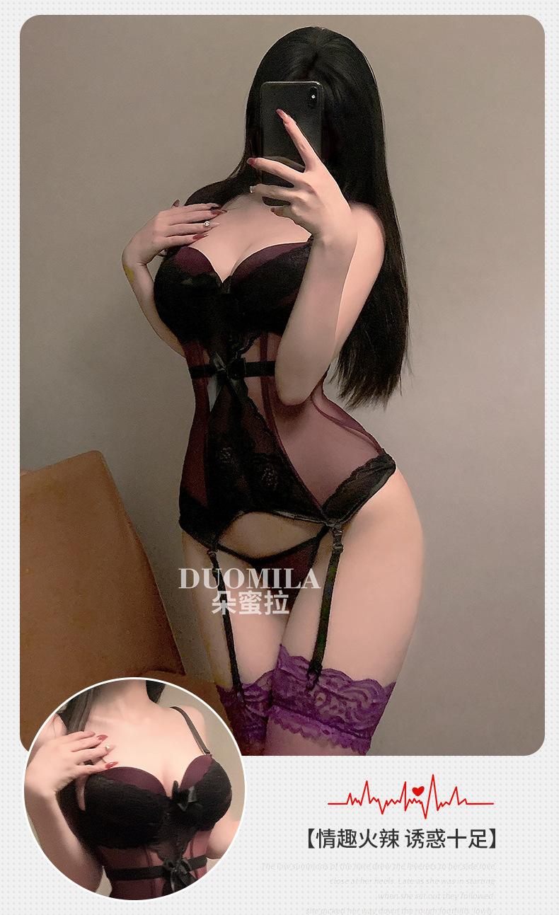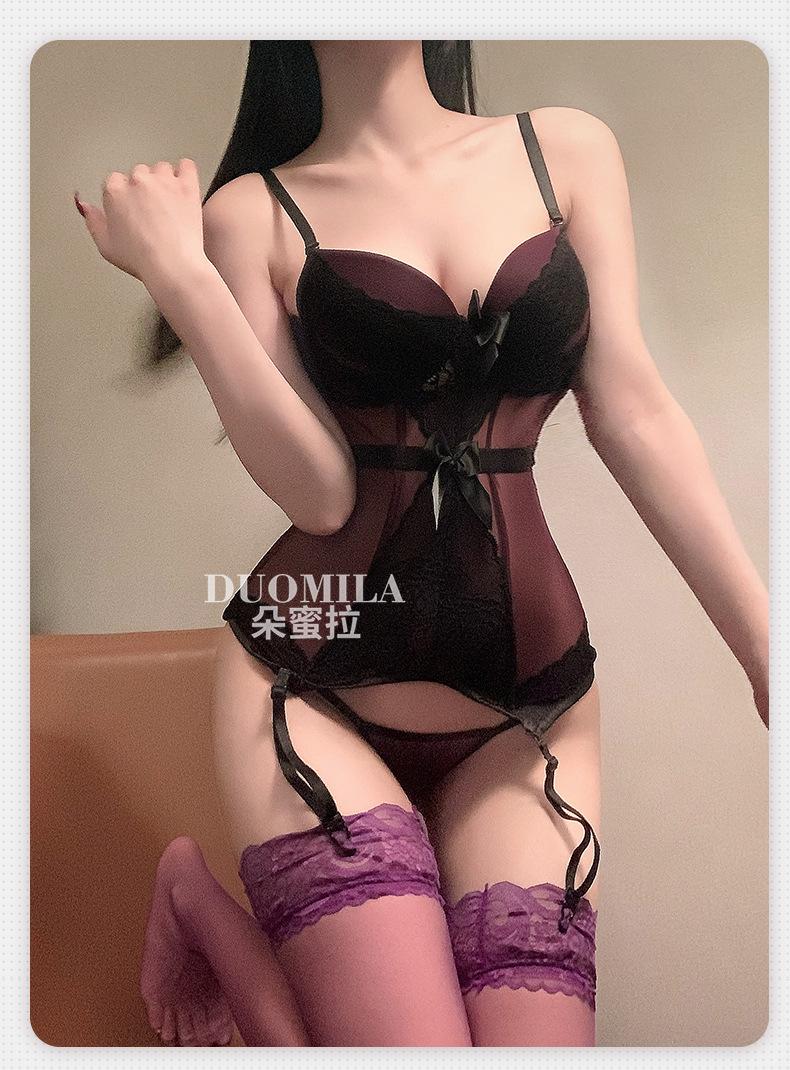Purple [vest + underwear + garter belt], Black [vest + underwear + garter belt], Purple + same style socks, Bl...