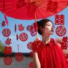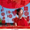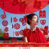Paraguas rojo de boda novia compromiso boda bata accesorios para fotos decoración de boda estilo antiguo chino regalo para recién casados paraguas de boda estilo chino paraguas de aceite paraguas rojo vestido de boda sesión de fotos carrera matutina boda feliz foto retro cheongsam boda
