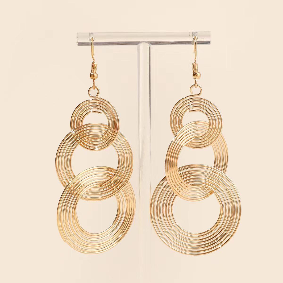 Nuevos pendientes circulares multicapa exagerados transfronterizos, pendientes circulares grandes y largos de estilo europeo y americano, pendientes de celebridades de Internet para mujeres.