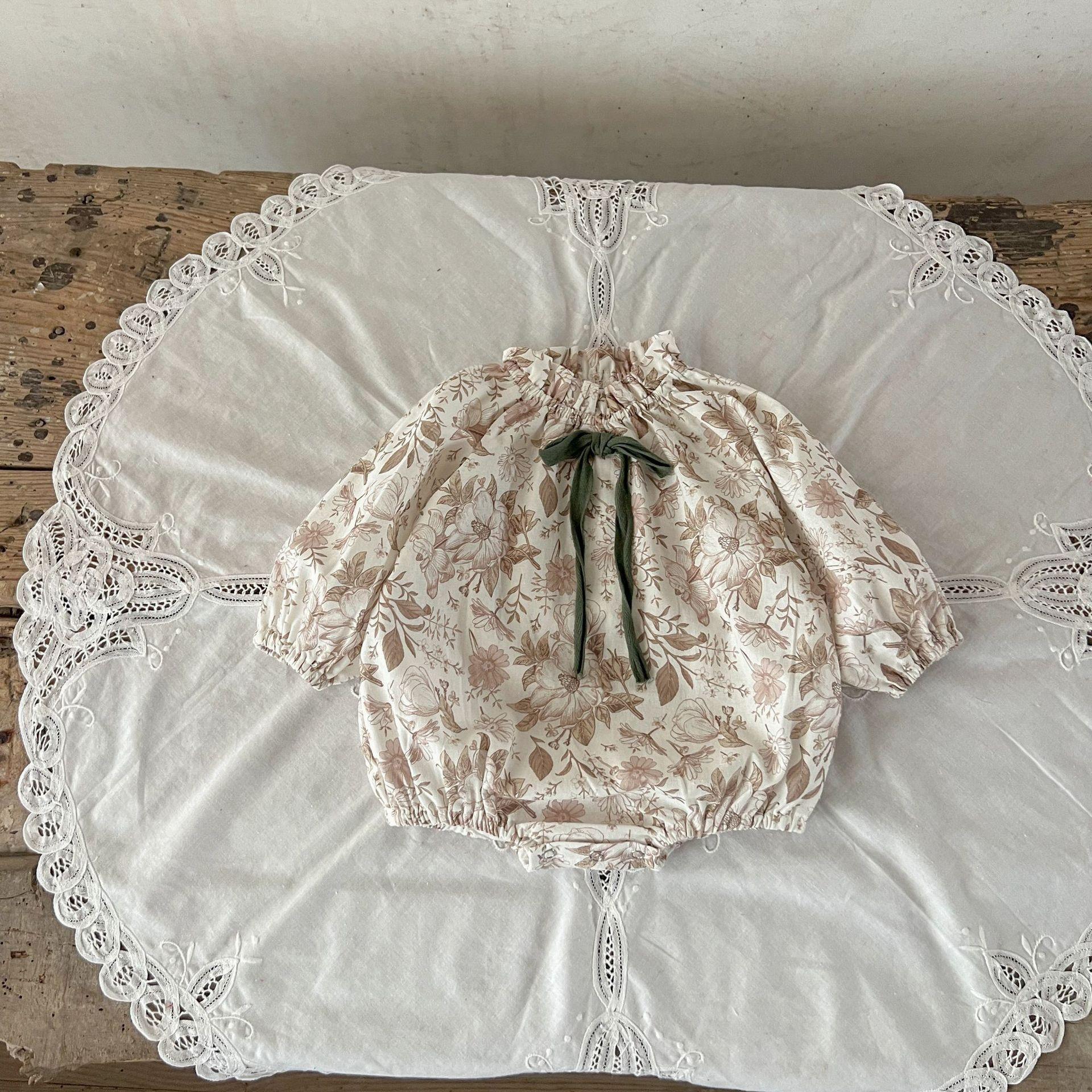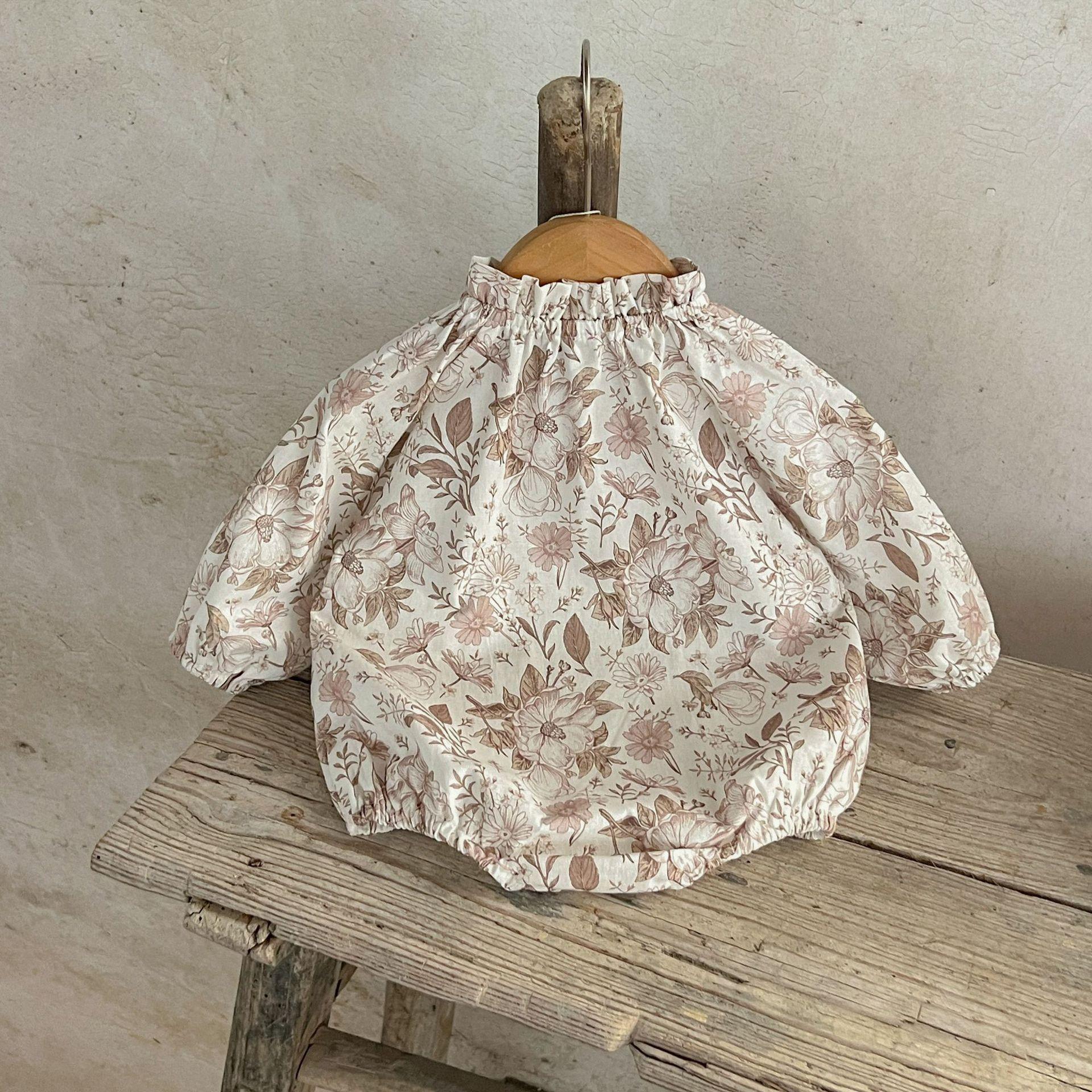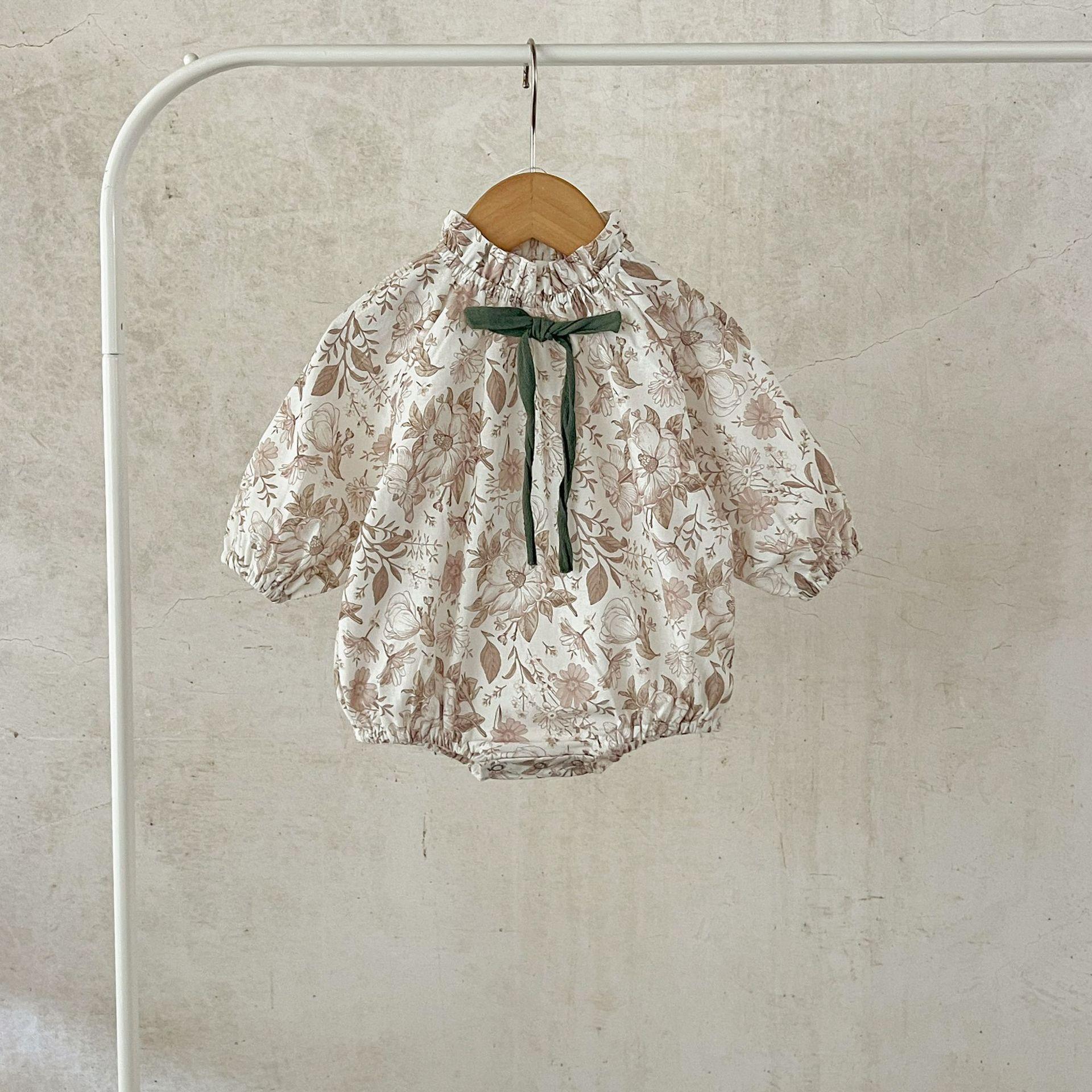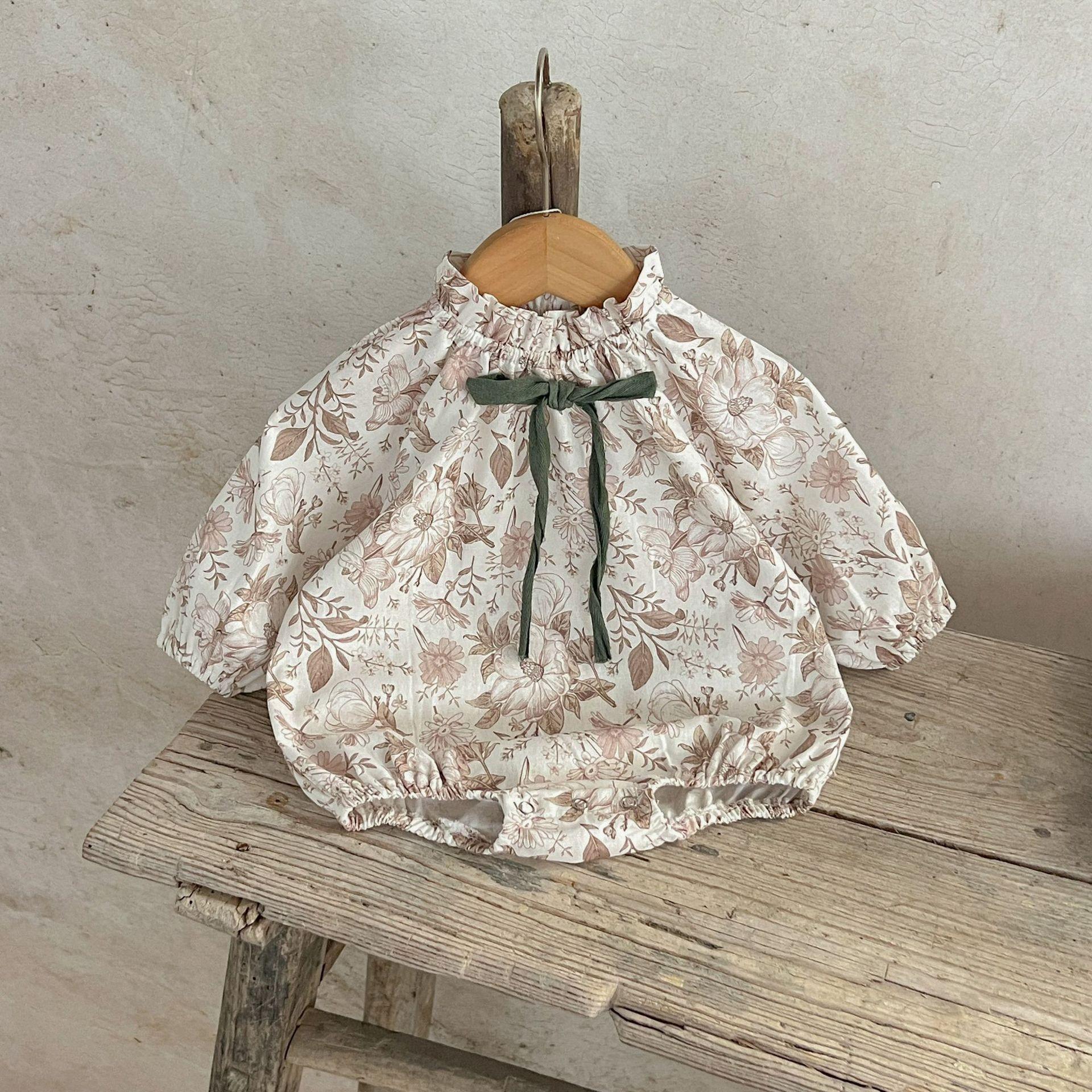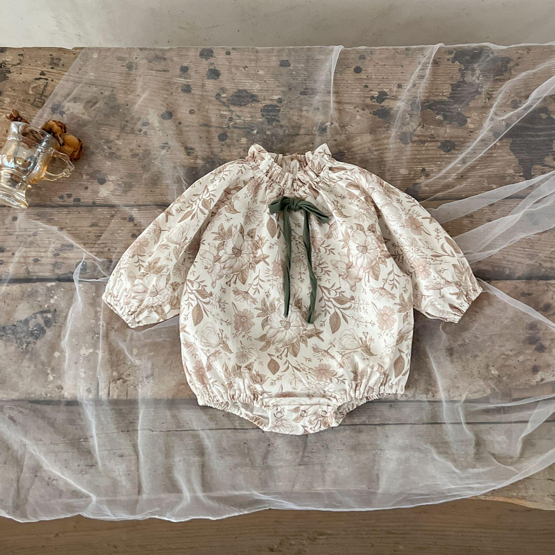 Ins Estilo Coreano Mono de Algodón para Bebé Niña con Lazo Estampado Traje para Trepar Recién Nacido Otoño Chaquetas de Algodón