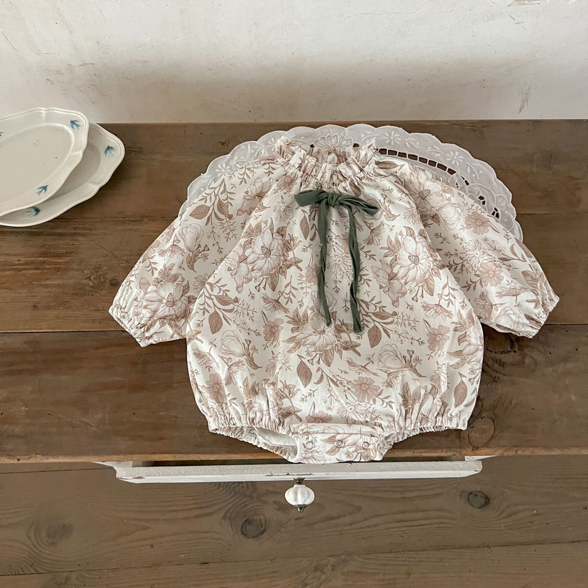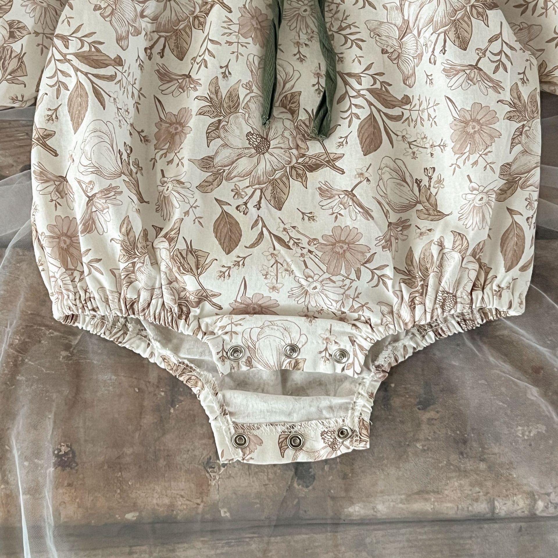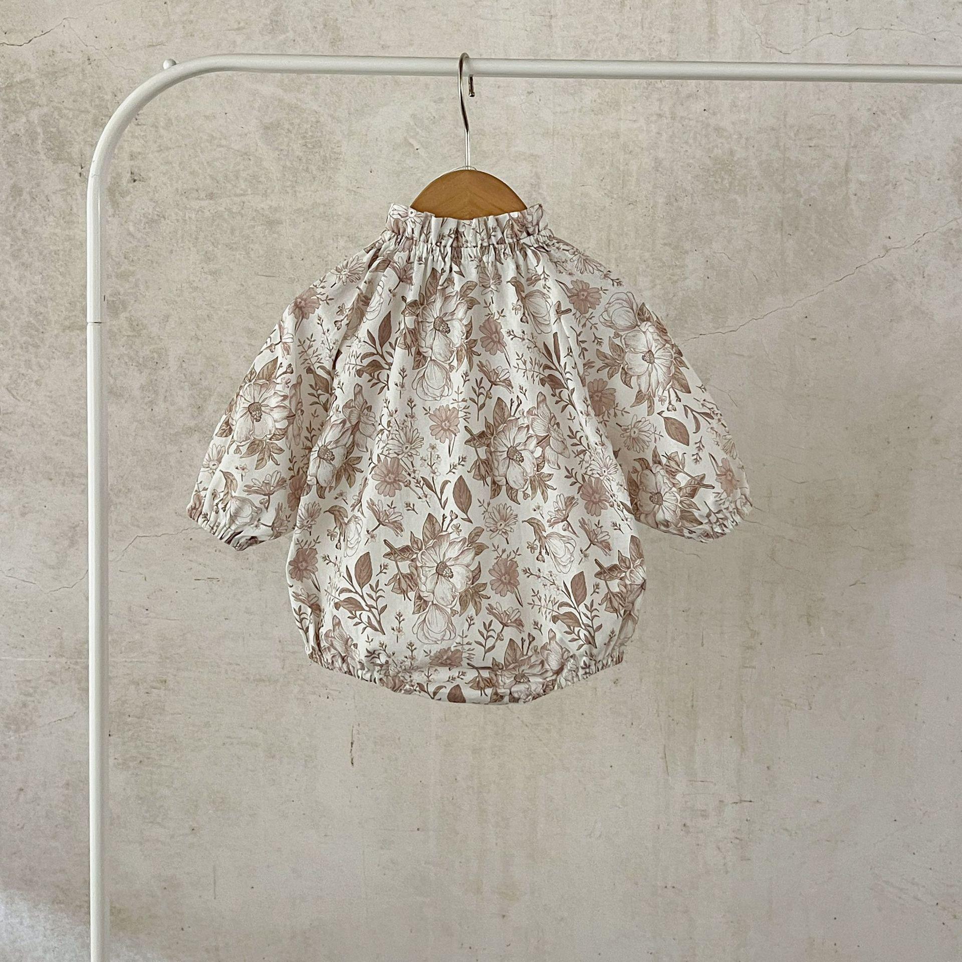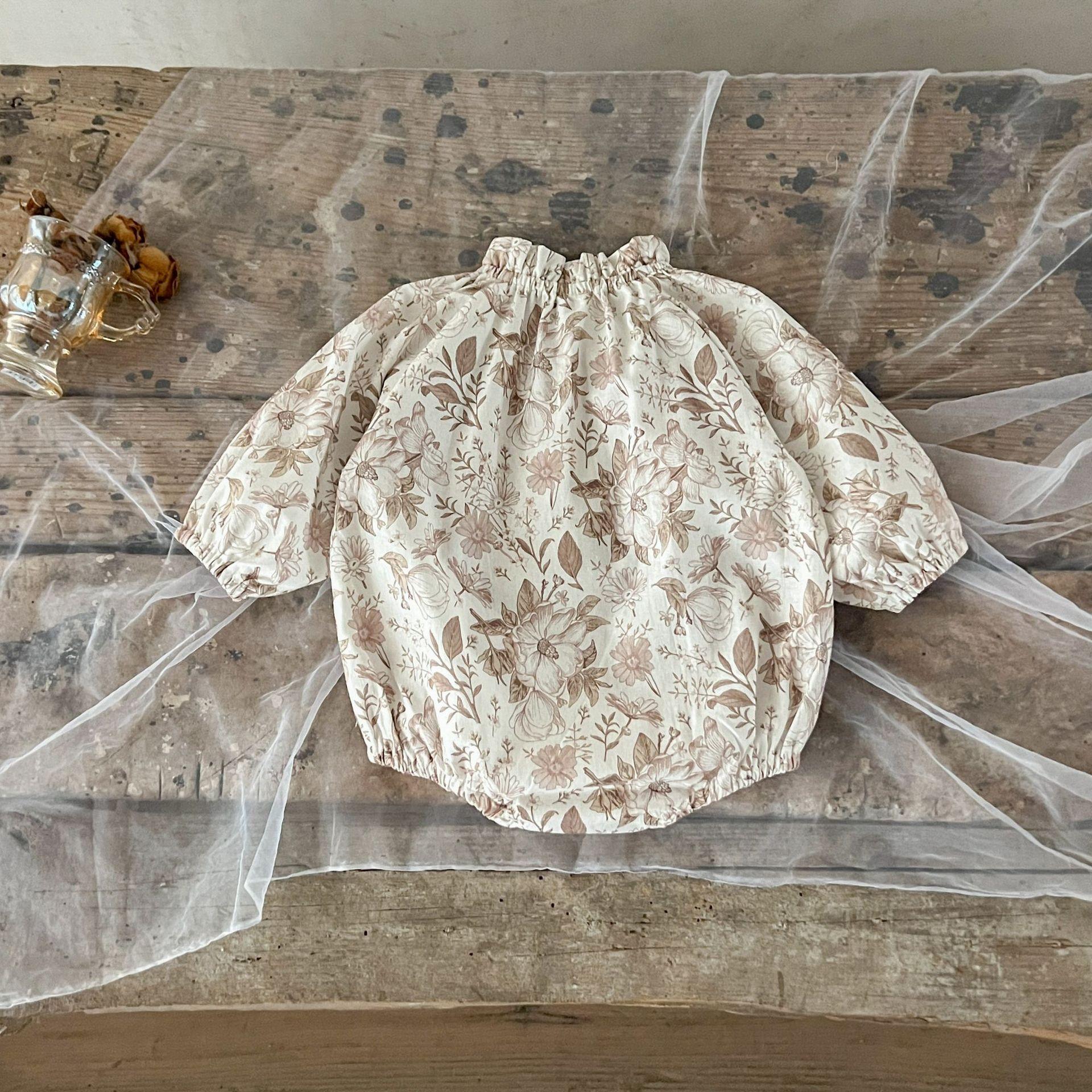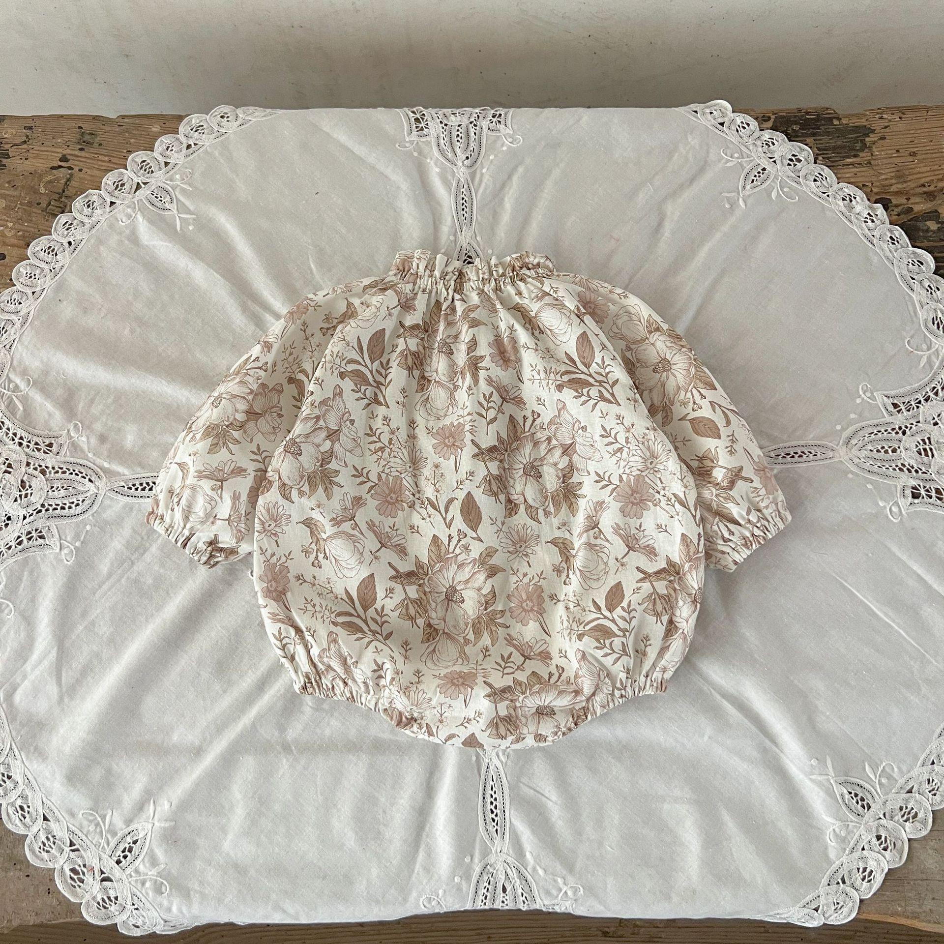 Ins Estilo Coreano Mono de Algodón para Bebé Niña con Lazo Estampado Traje para Trepar Recién Nacido Otoño Chaquetas de Algodón