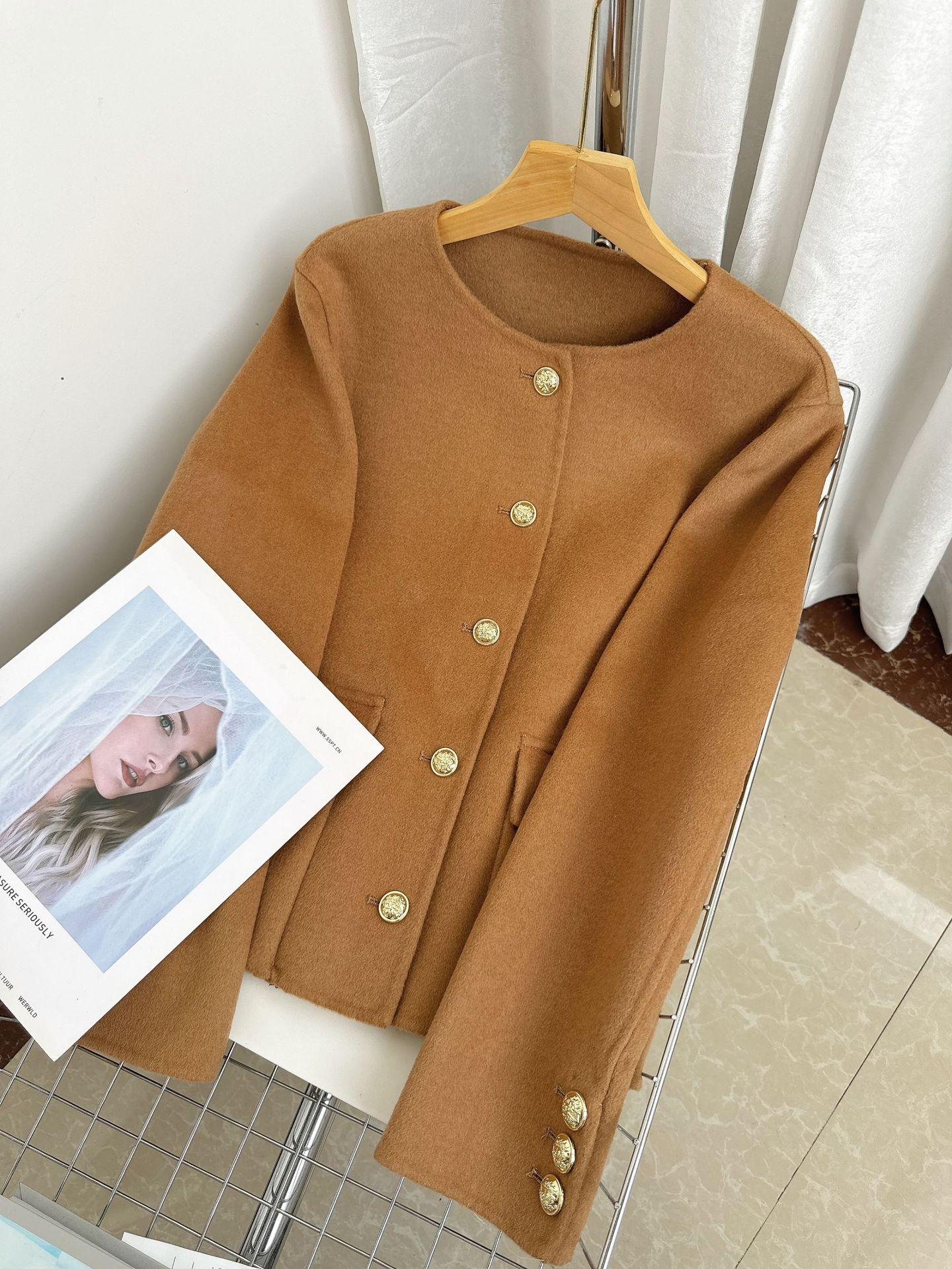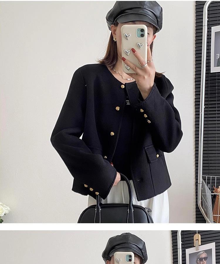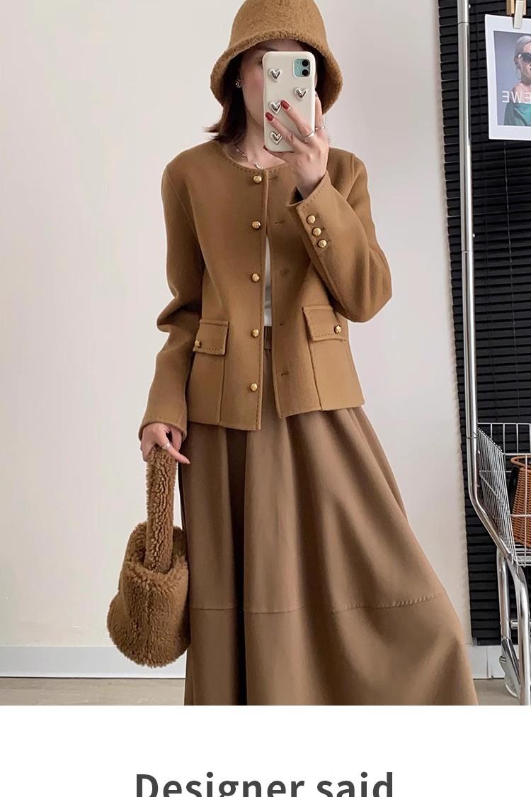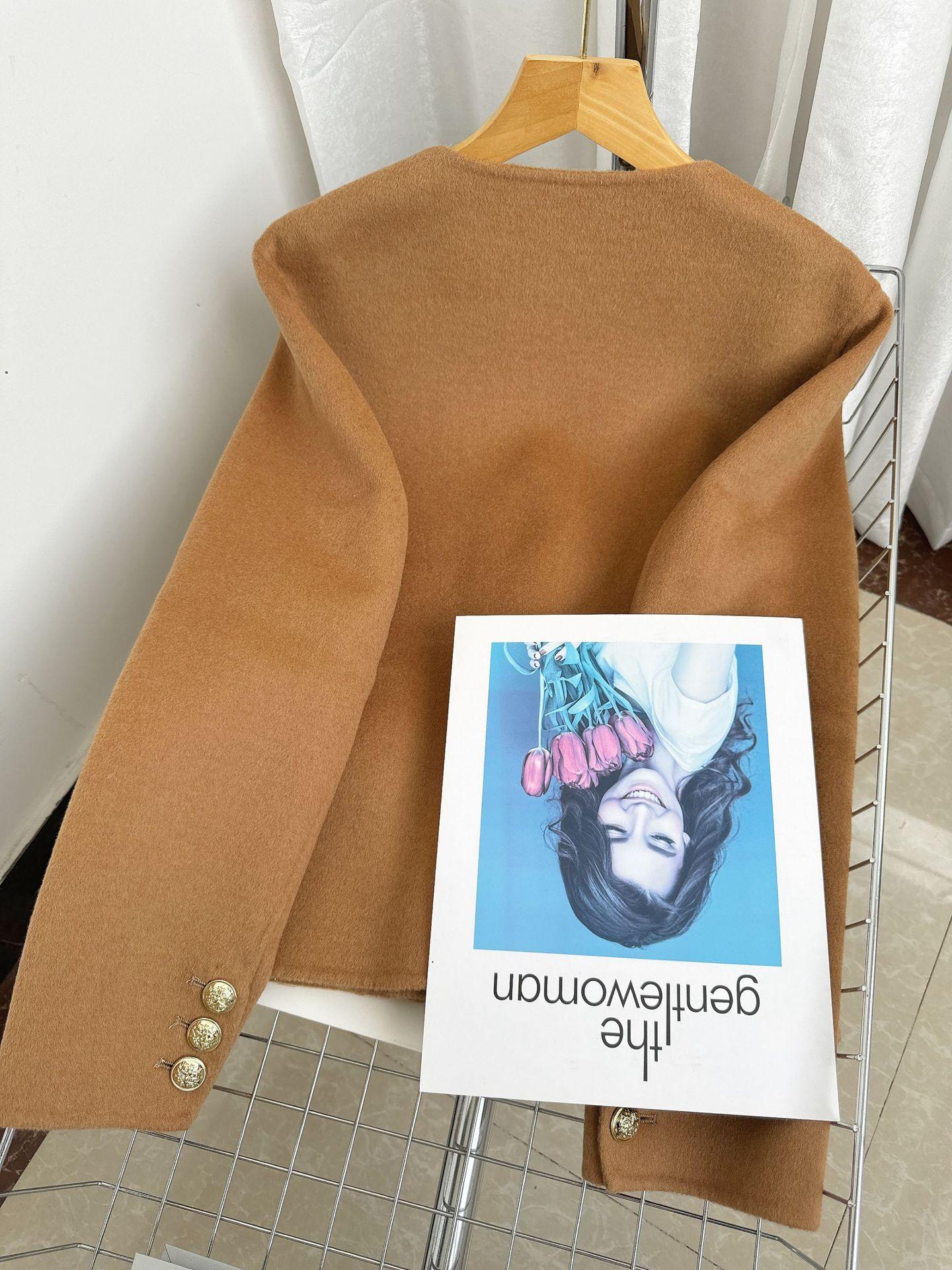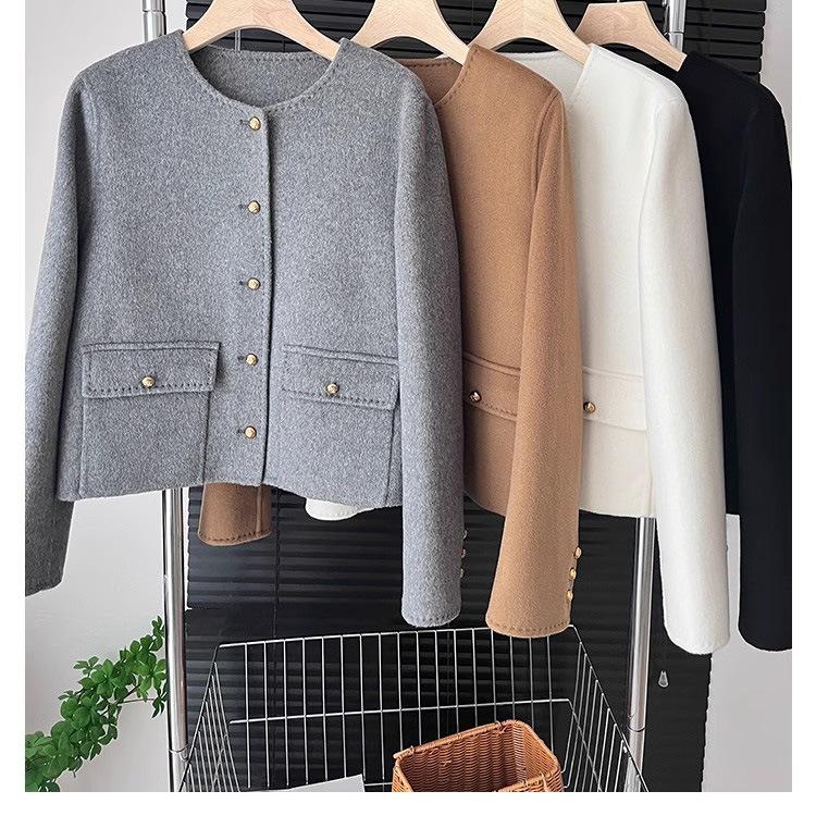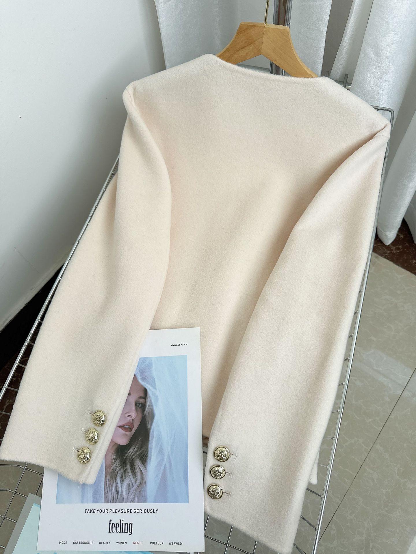 [Diseño de lujo ligero] Abrigo de cachemir de 100% lana de oveja para mujer, abrigo corto de tweed de doble cara nuevo para otoño e invierno.