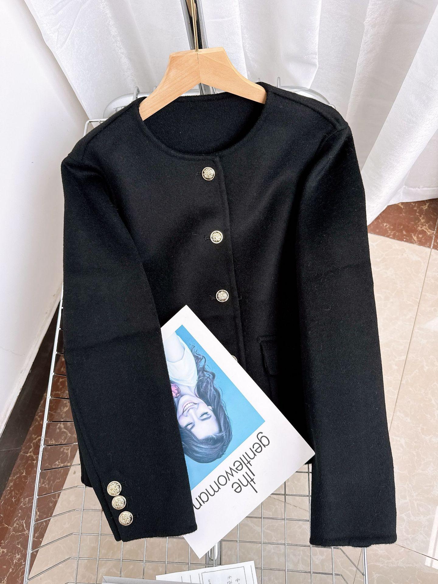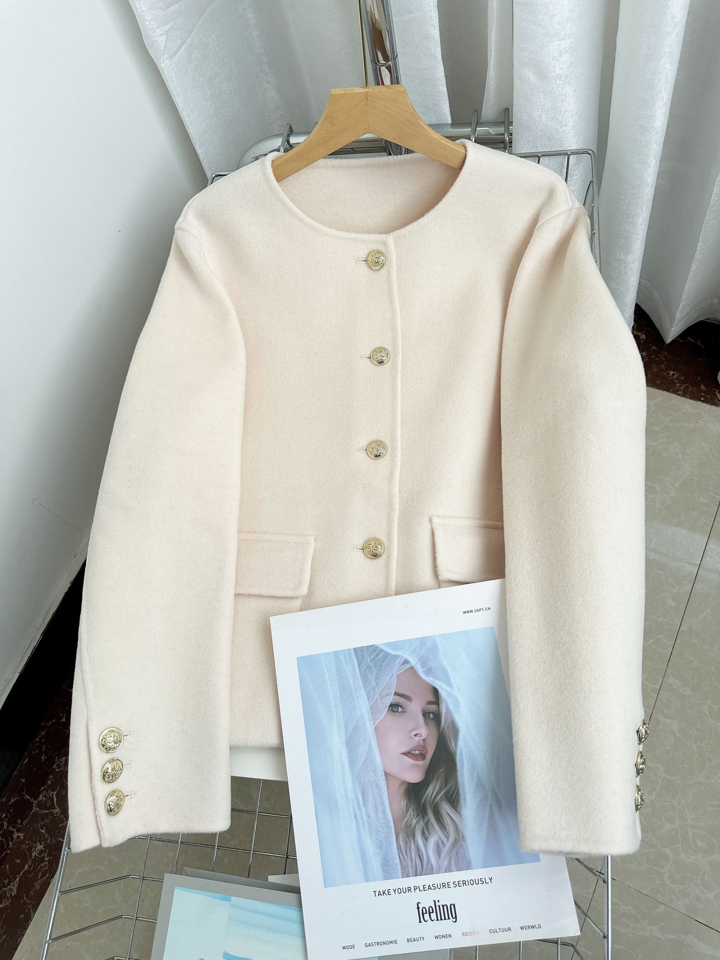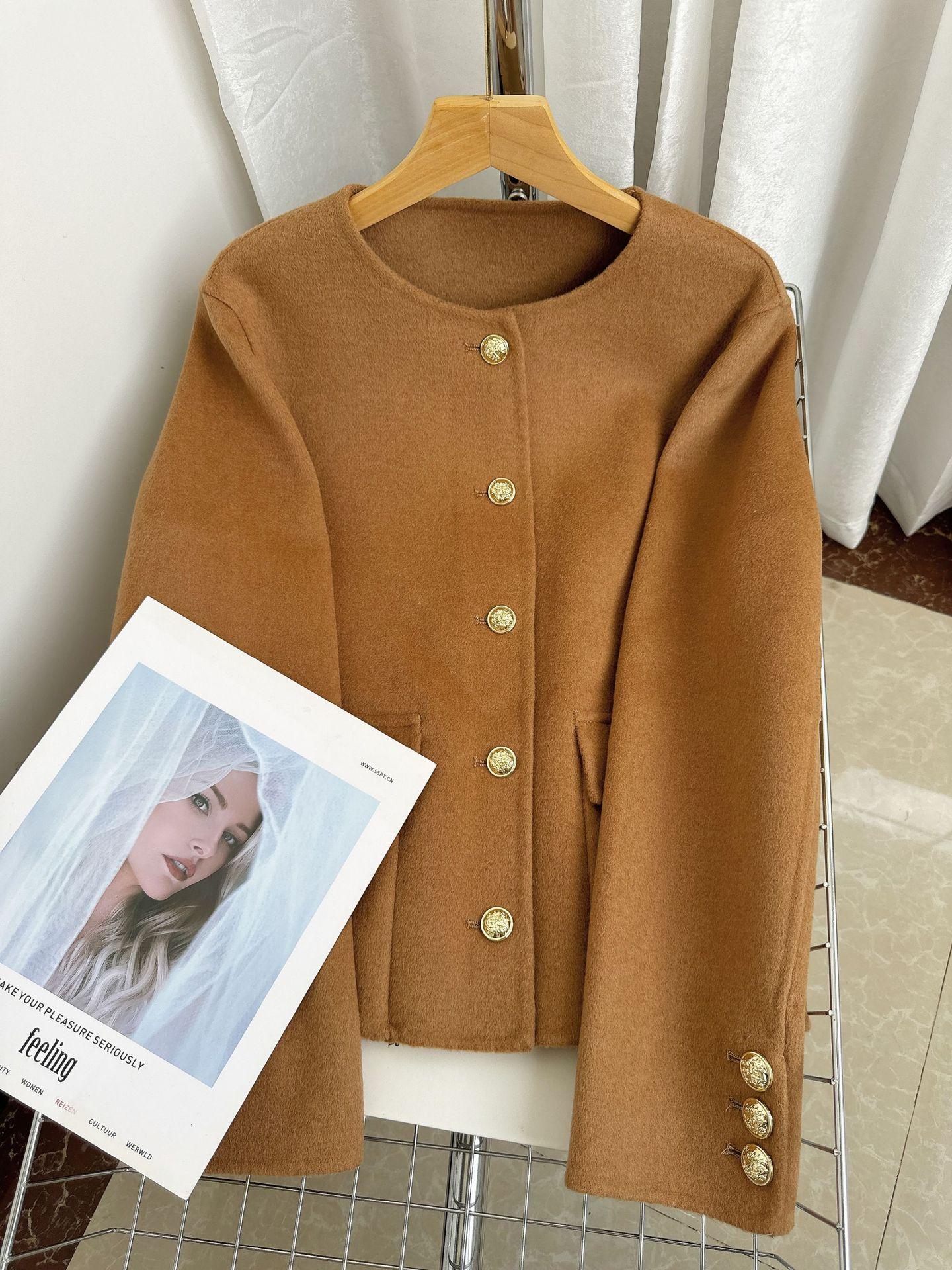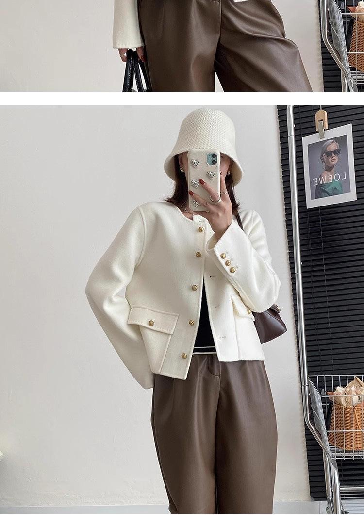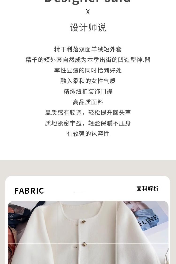 [Diseño de lujo ligero] Abrigo de cachemir de 100% lana de oveja para mujer, abrigo corto de tweed de doble cara nuevo para otoño e invierno.
