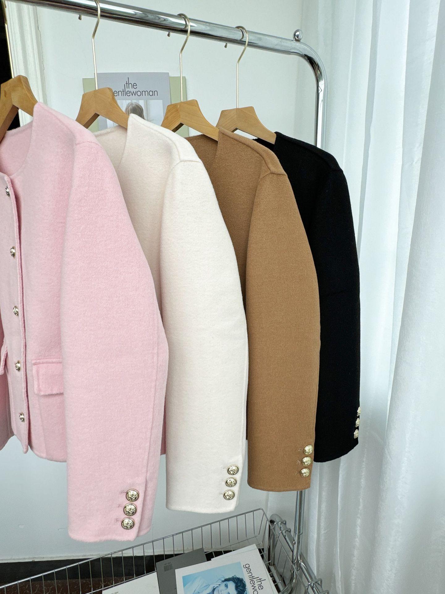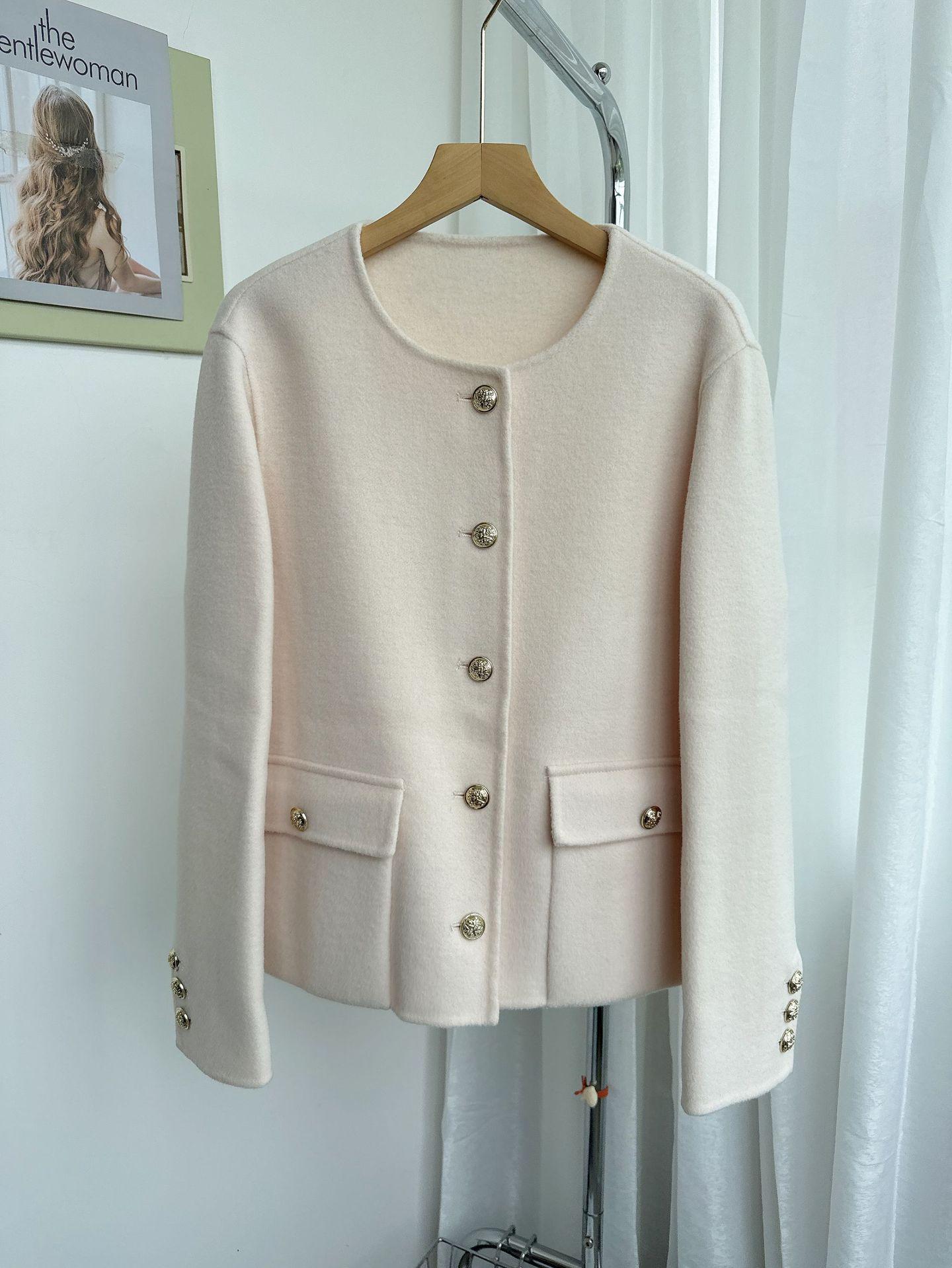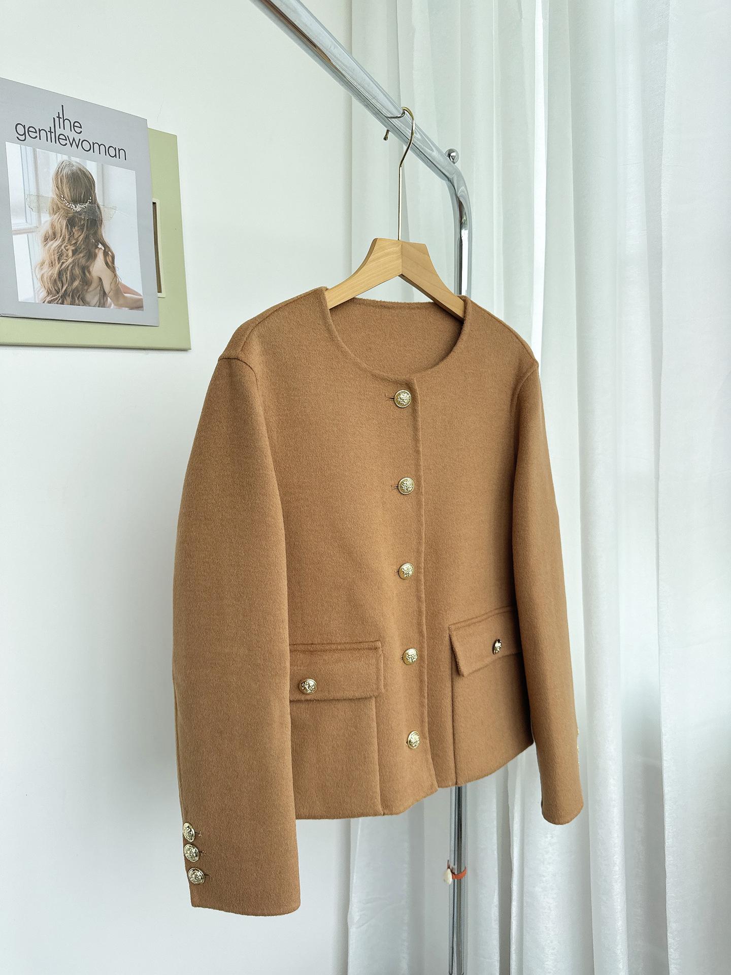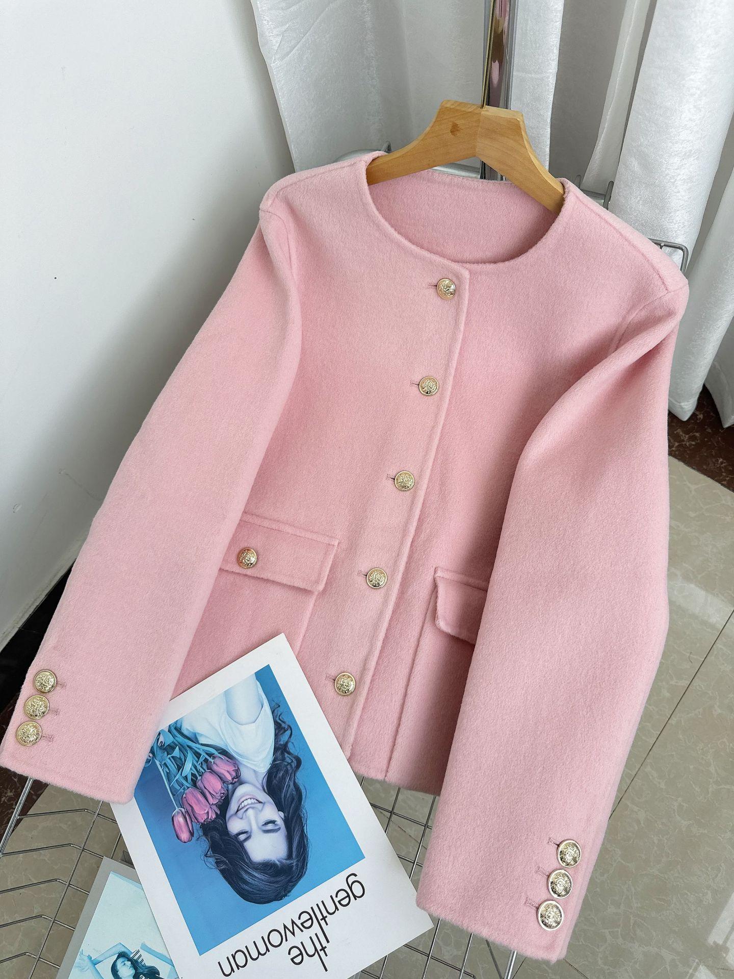 [Diseño de lujo ligero] Abrigo de cachemir de 100% lana de oveja para mujer, abrigo corto de tweed de doble cara nuevo para otoño e invierno.