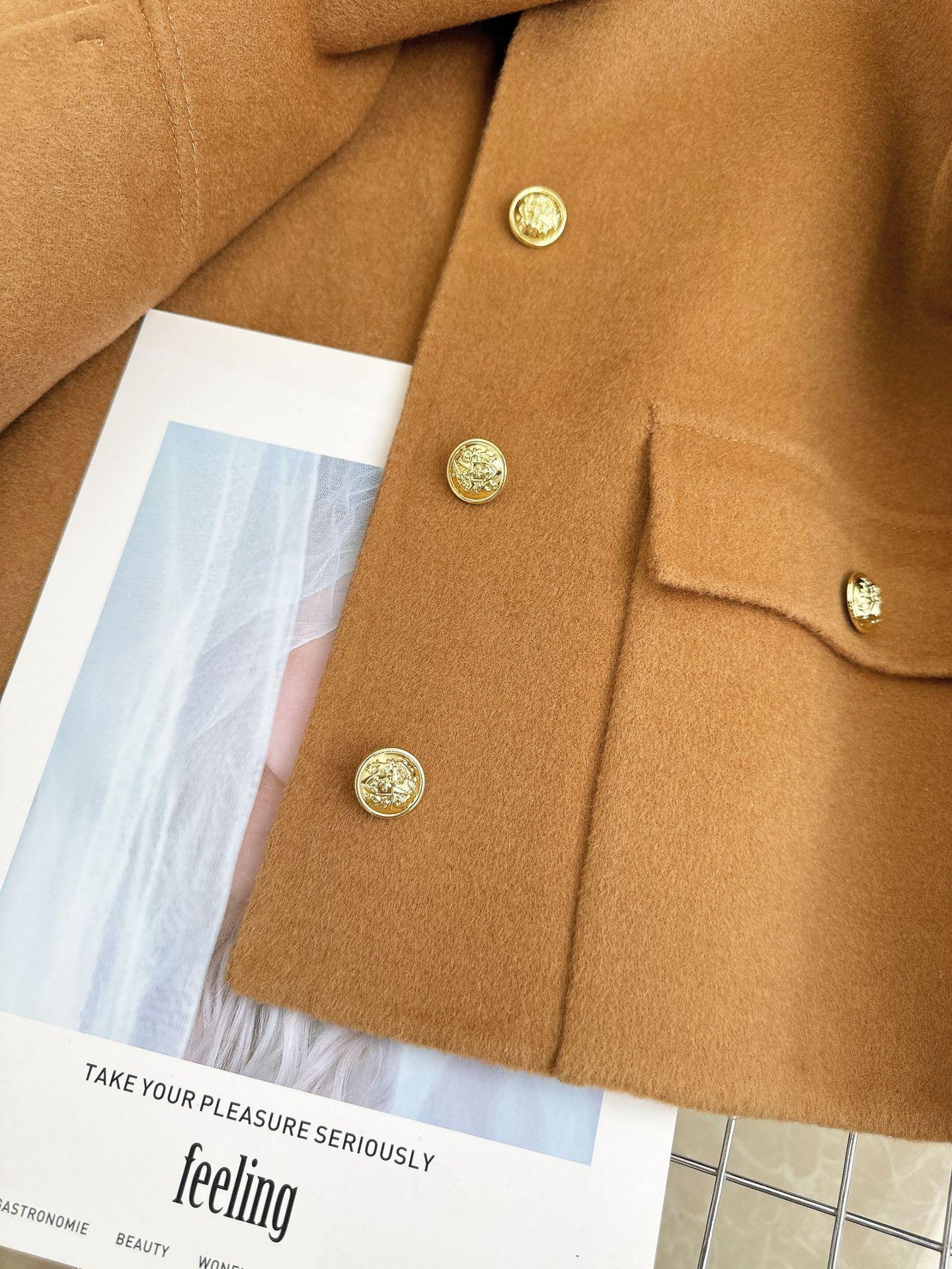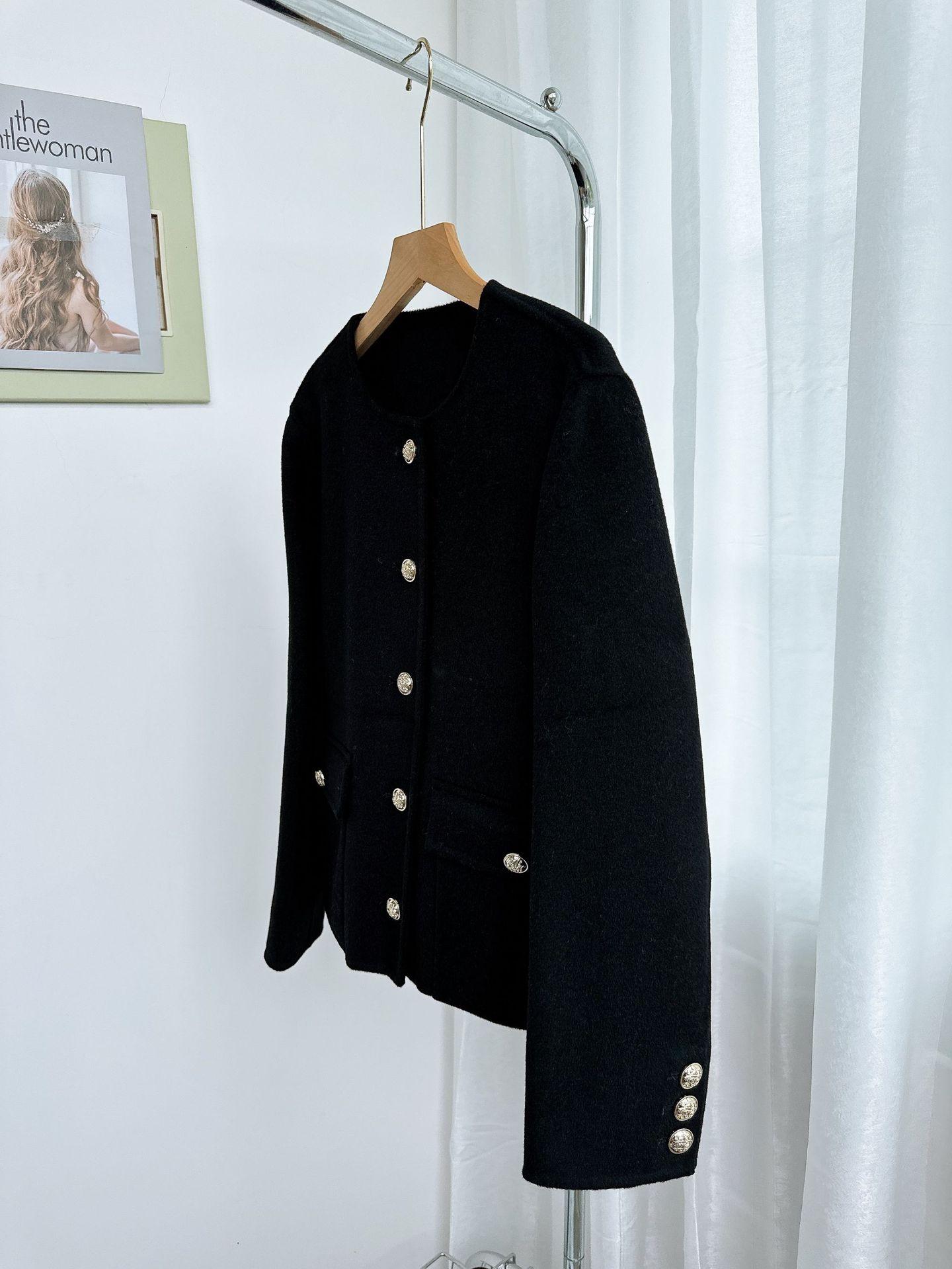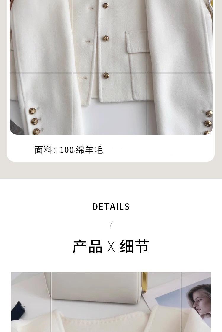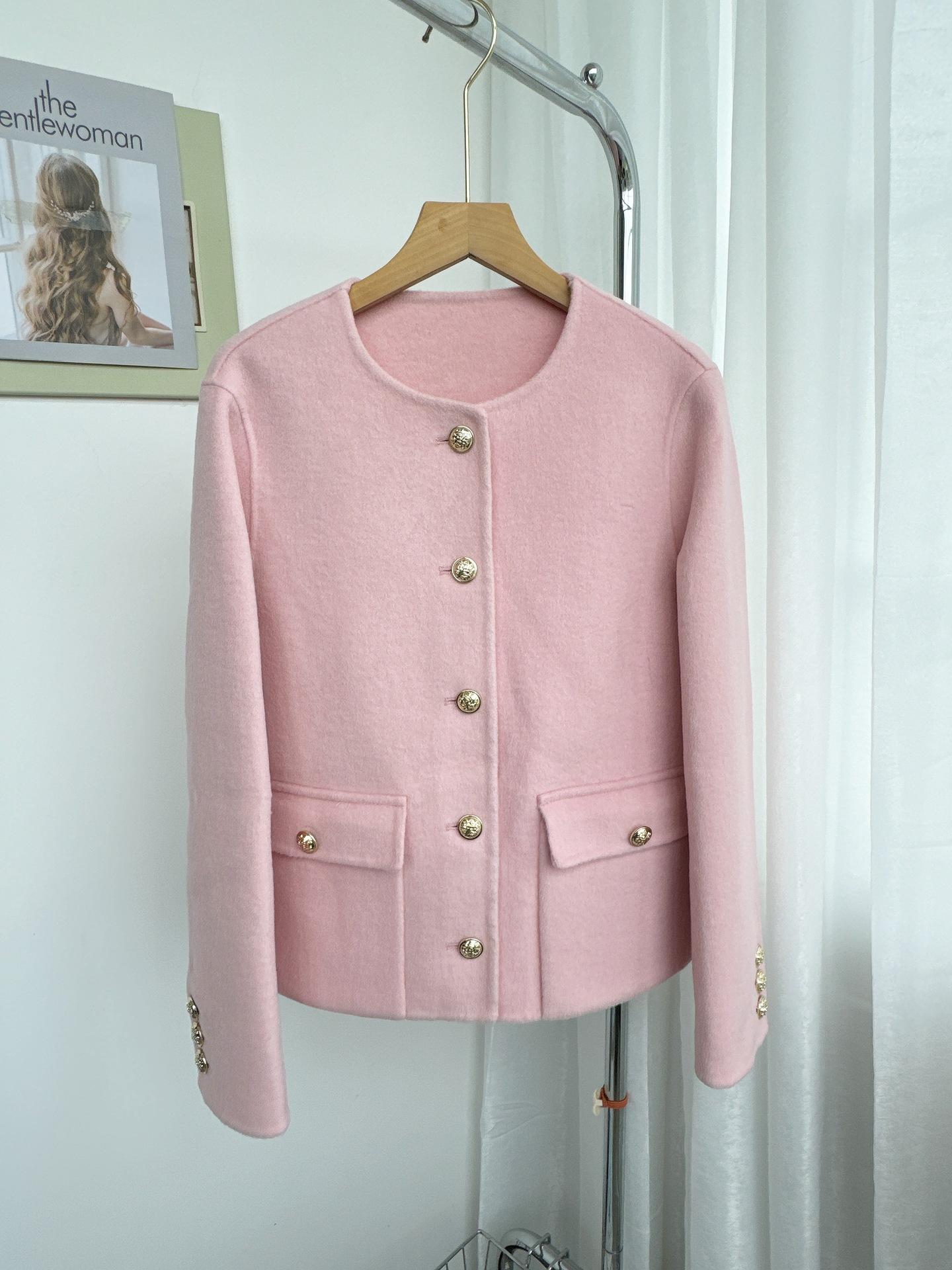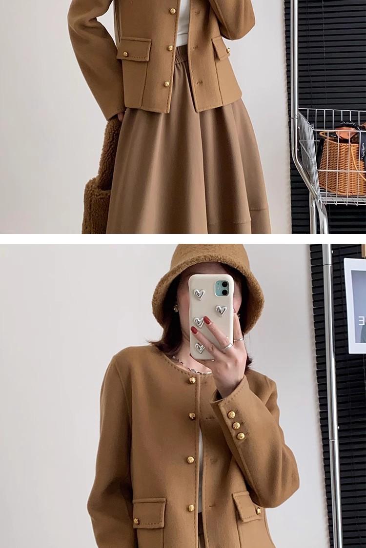[Diseño de lujo ligero] Abrigo de cachemir de 100% lana de oveja para mujer, abrigo corto de tweed de doble cara nuevo para otoño e invierno.