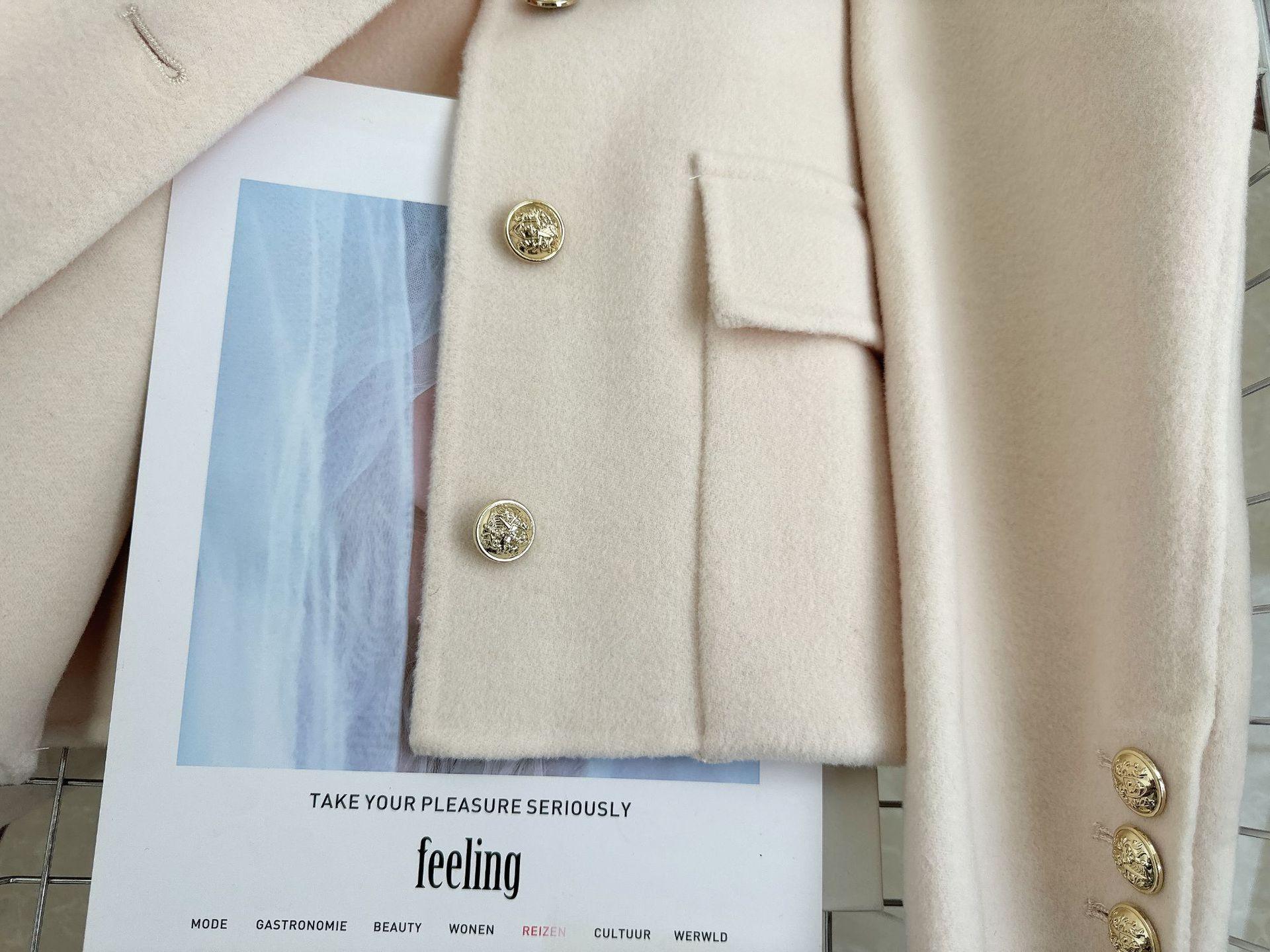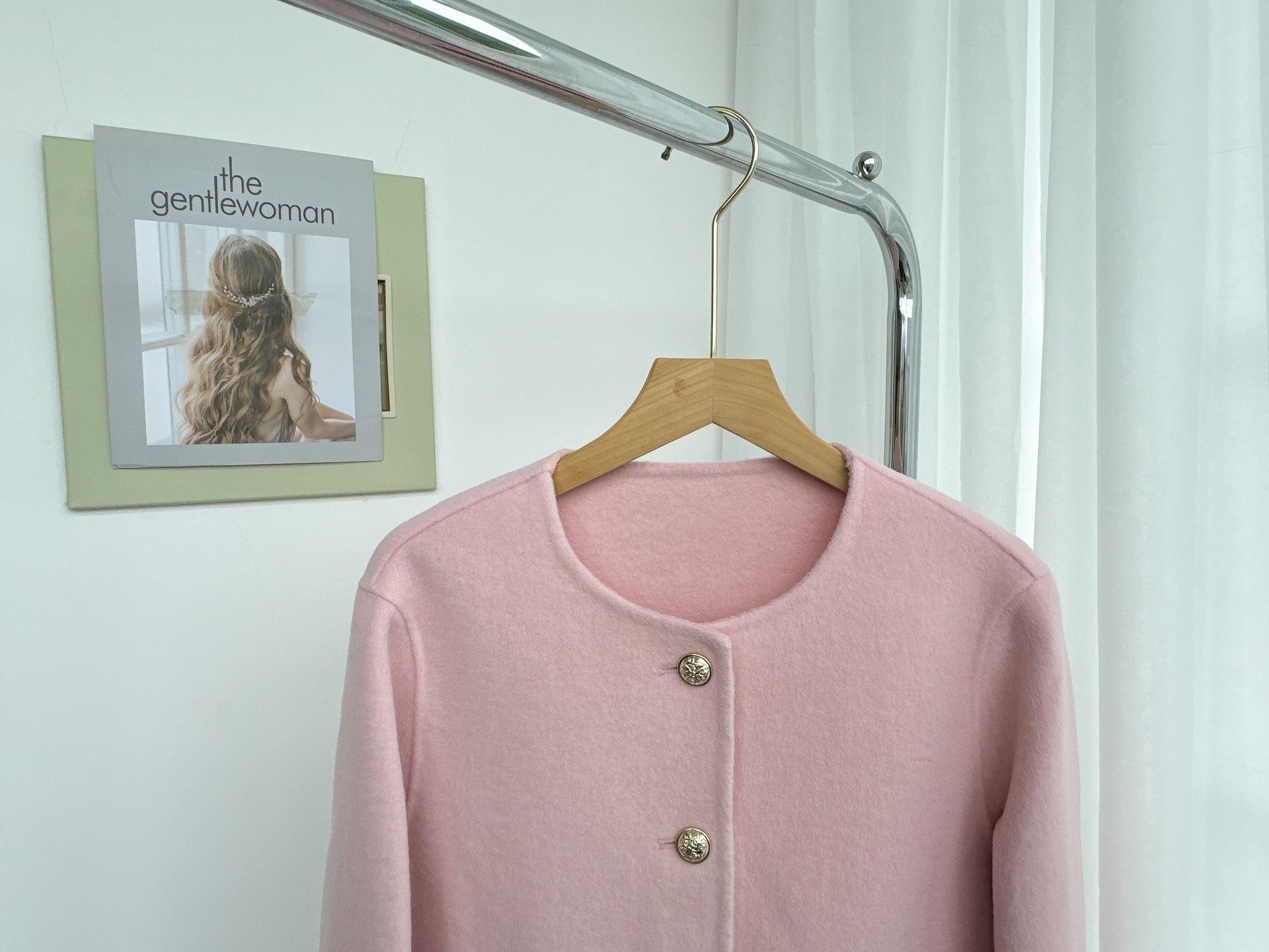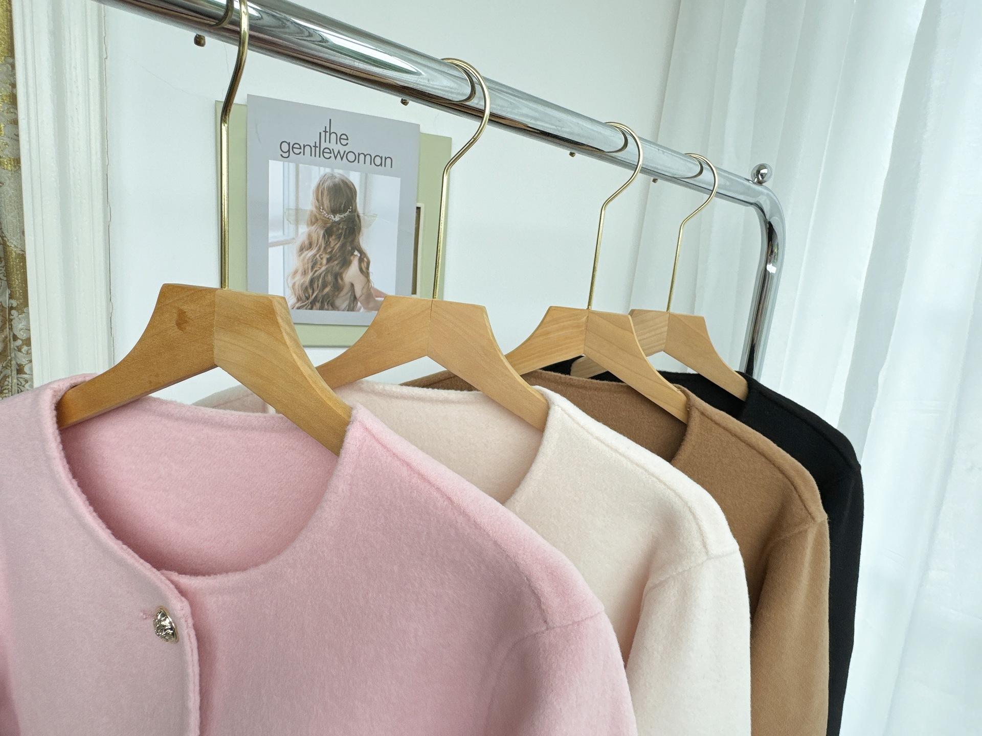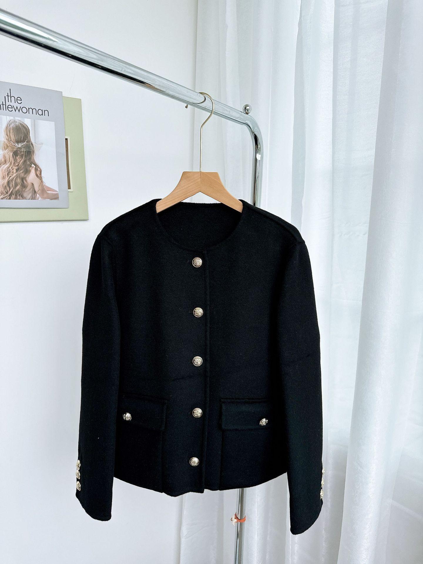 [Diseño de lujo ligero] Abrigo de cachemir de 100% lana de oveja para mujer, abrigo corto de tweed de doble cara nuevo para otoño e invierno.