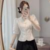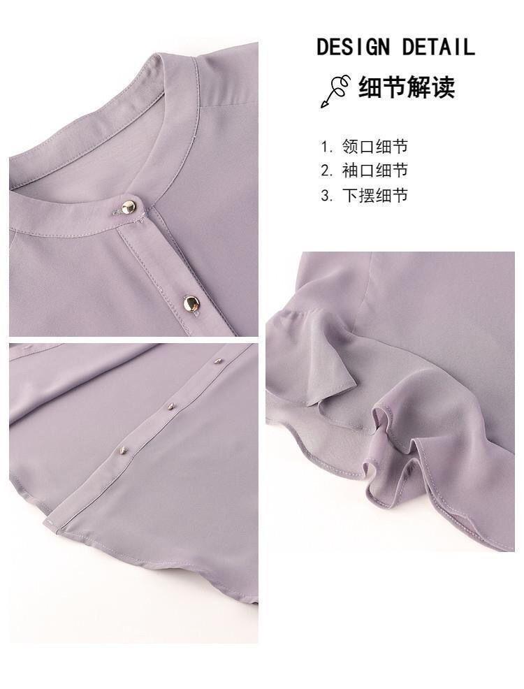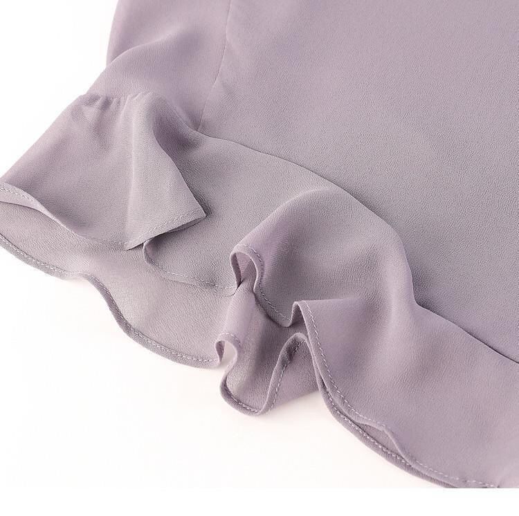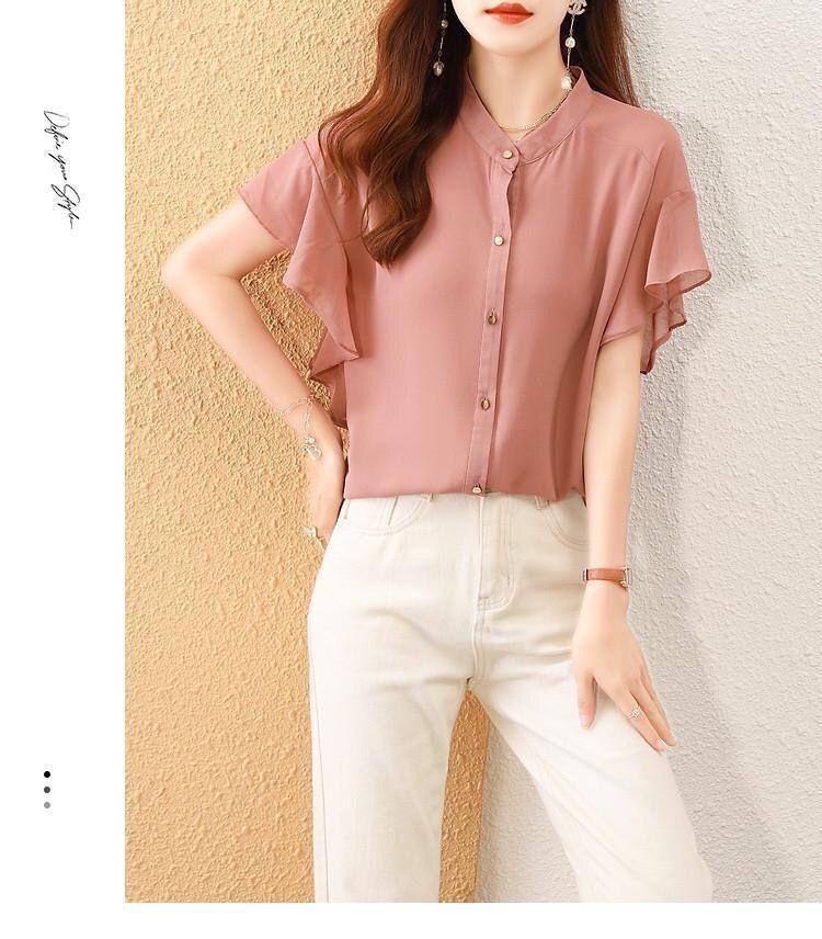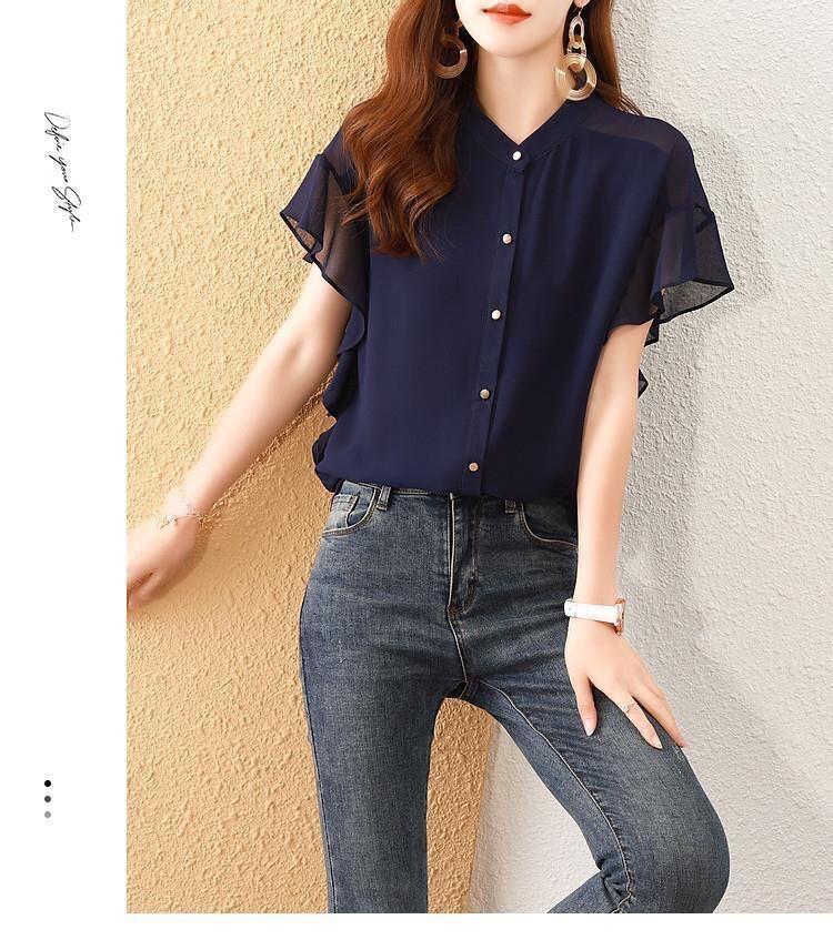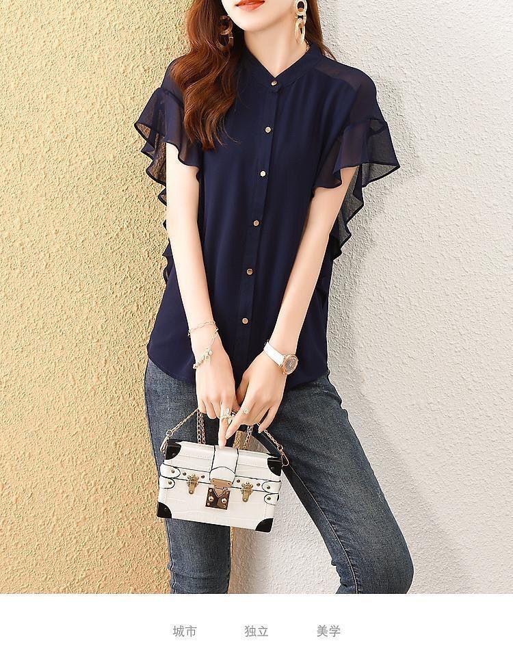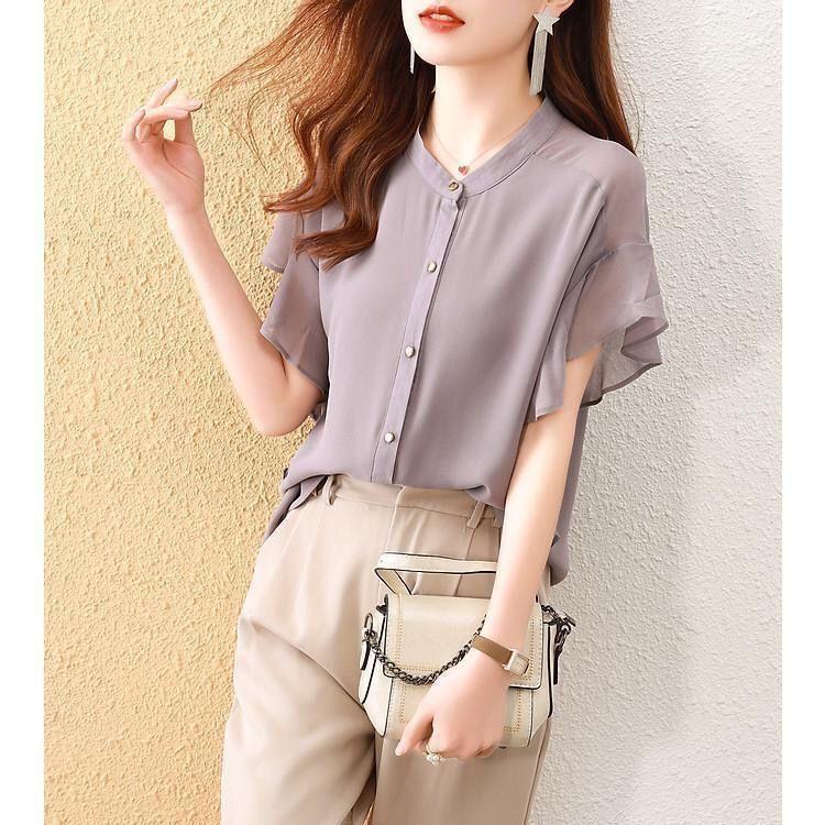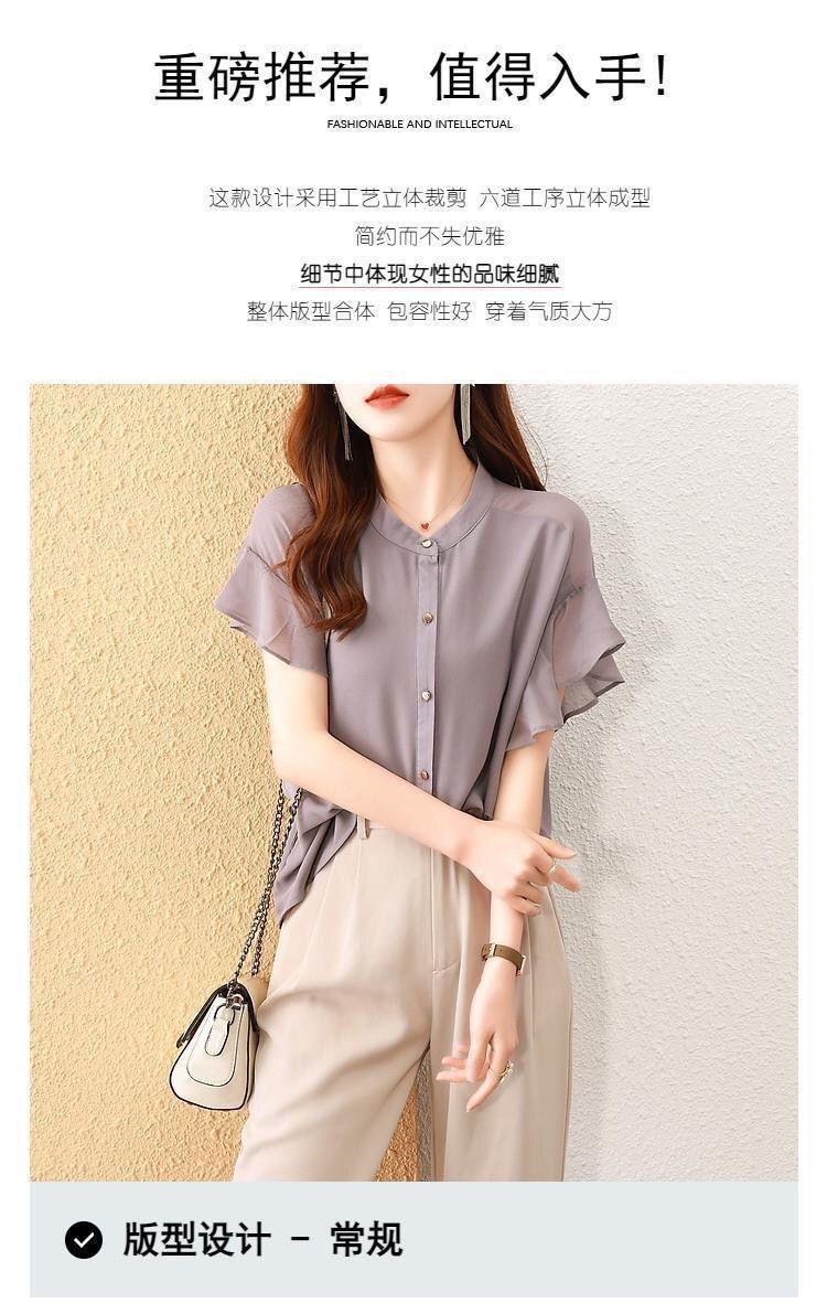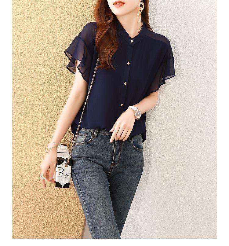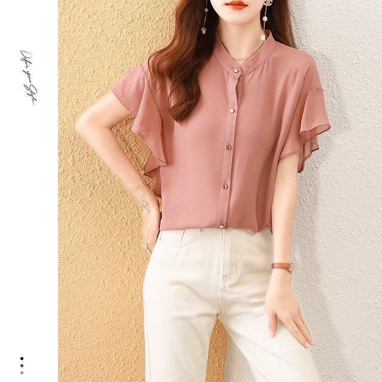 2025 Nuevo Estilo de Verano Versátil Camisa de Gasa con Mangas Volantes Camisa de Color Puro Hermosa Top Holgado Delgado