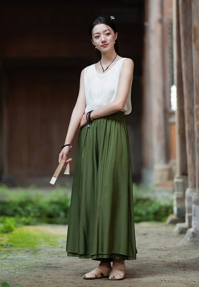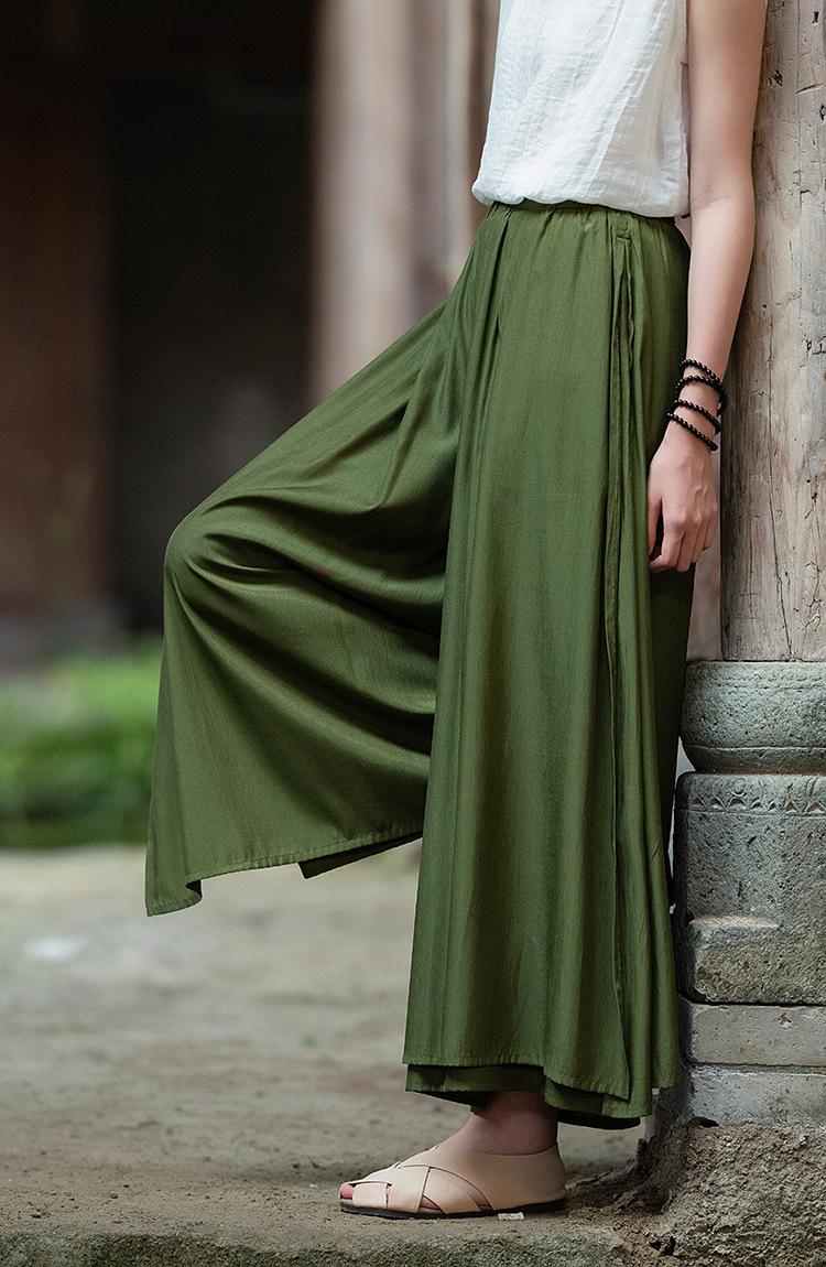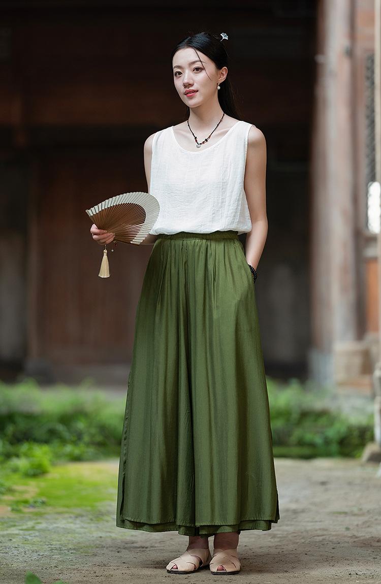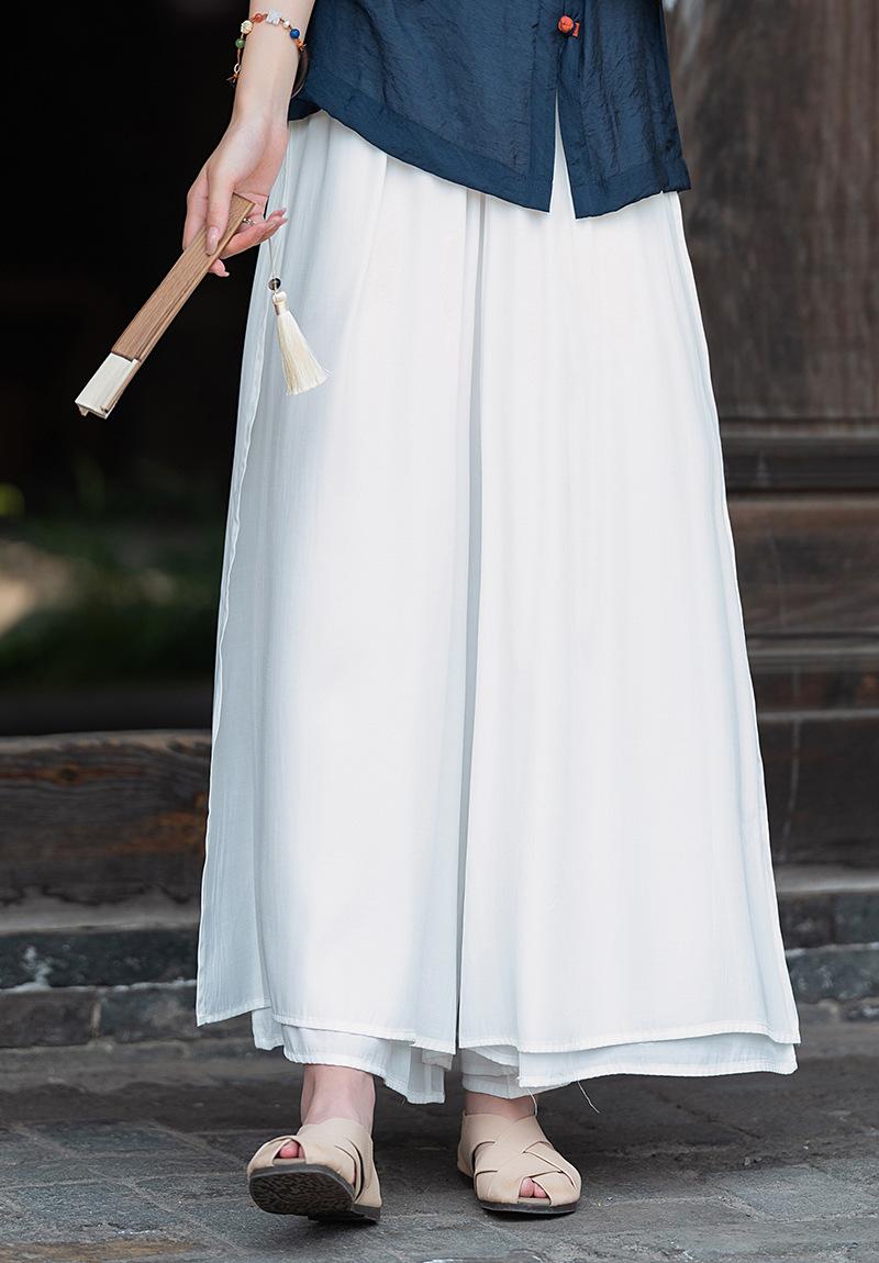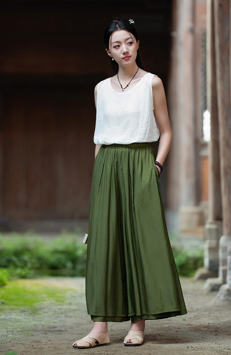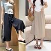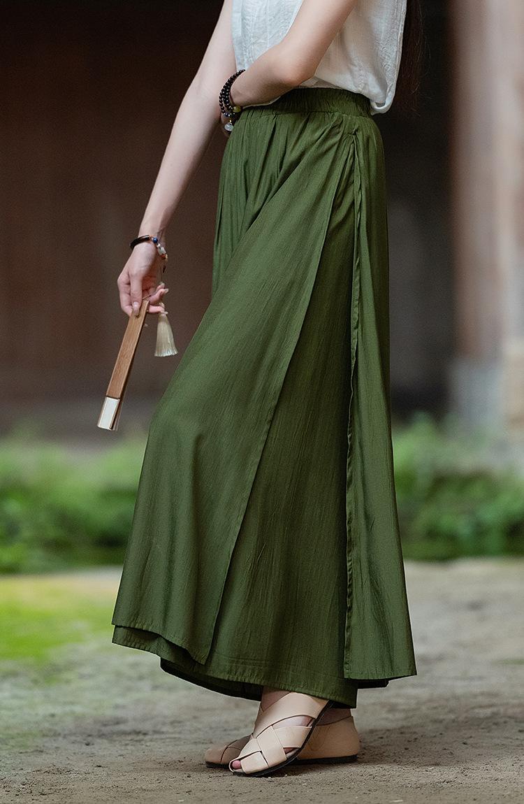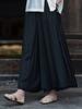 25 Otoño Algodón y Lino Mujer Nuevo Delgado Drapeado Pantalones de Pierna Ancha para Mujer Pantalones de Baile Ajustados para Mujer Falda Abertura Pantalones de Pierna Ancha Nueve Puntos