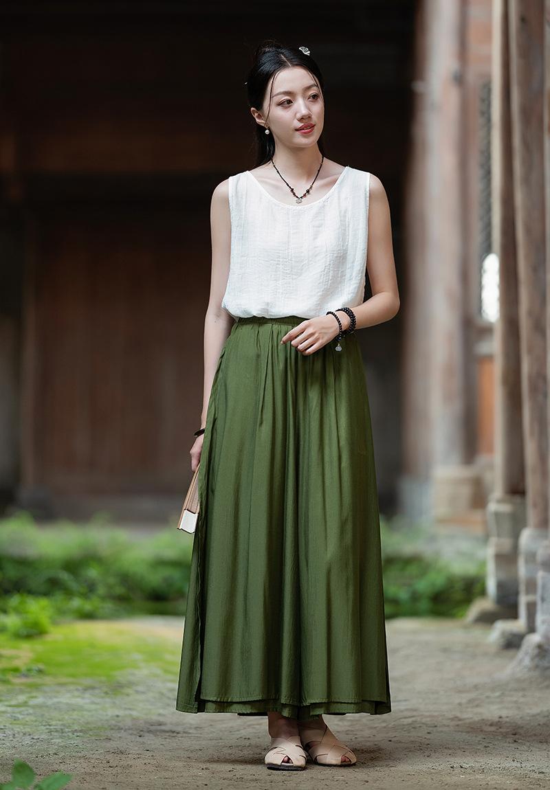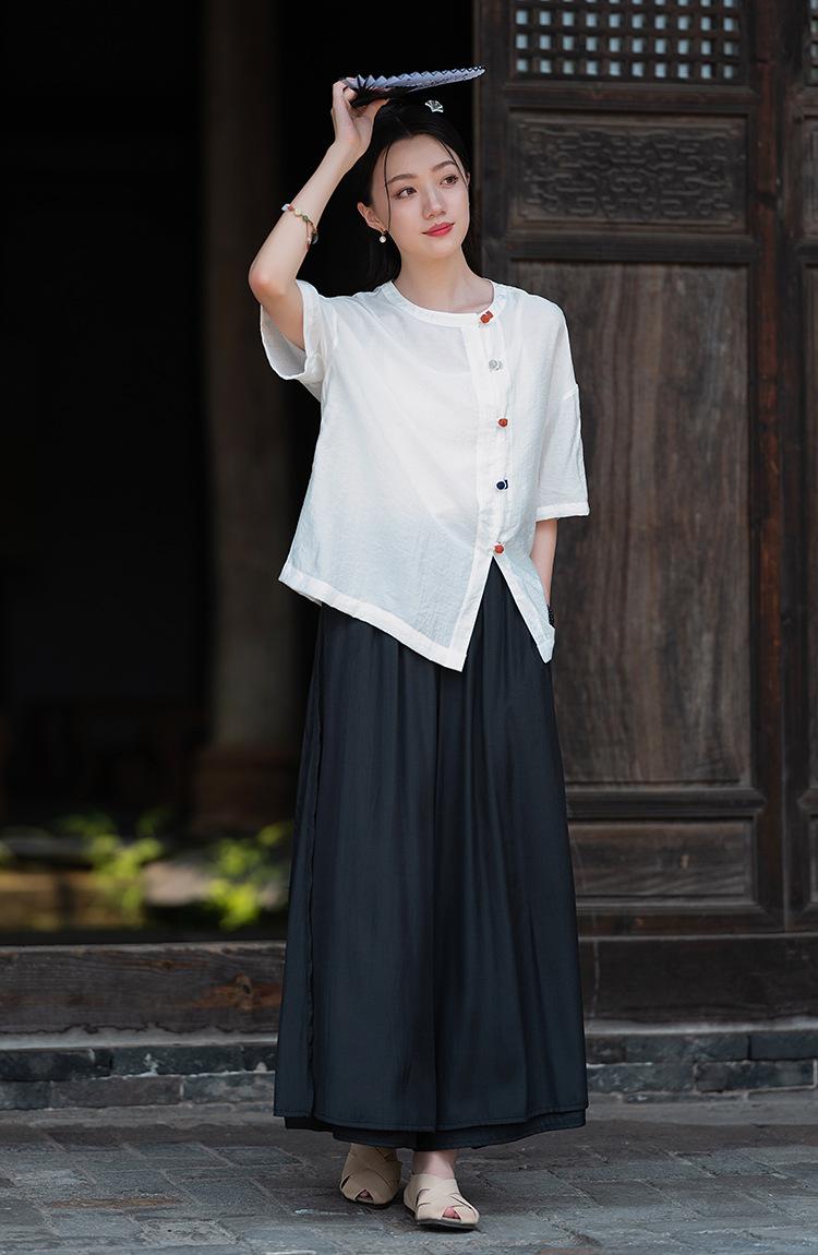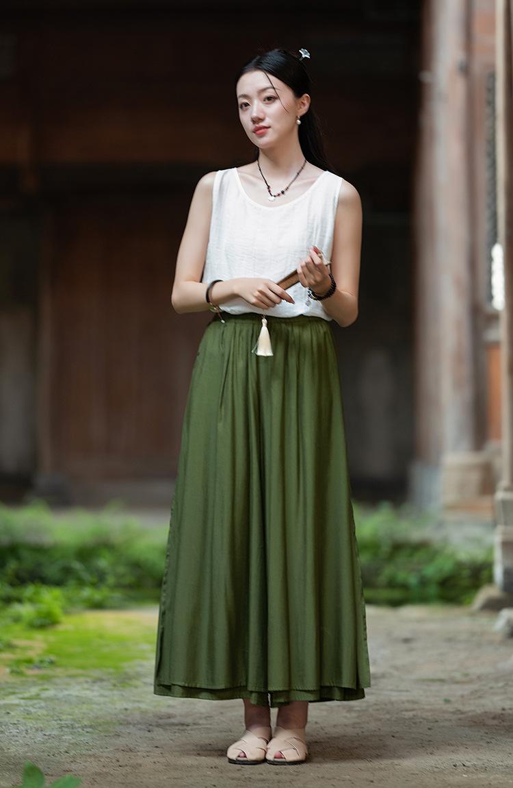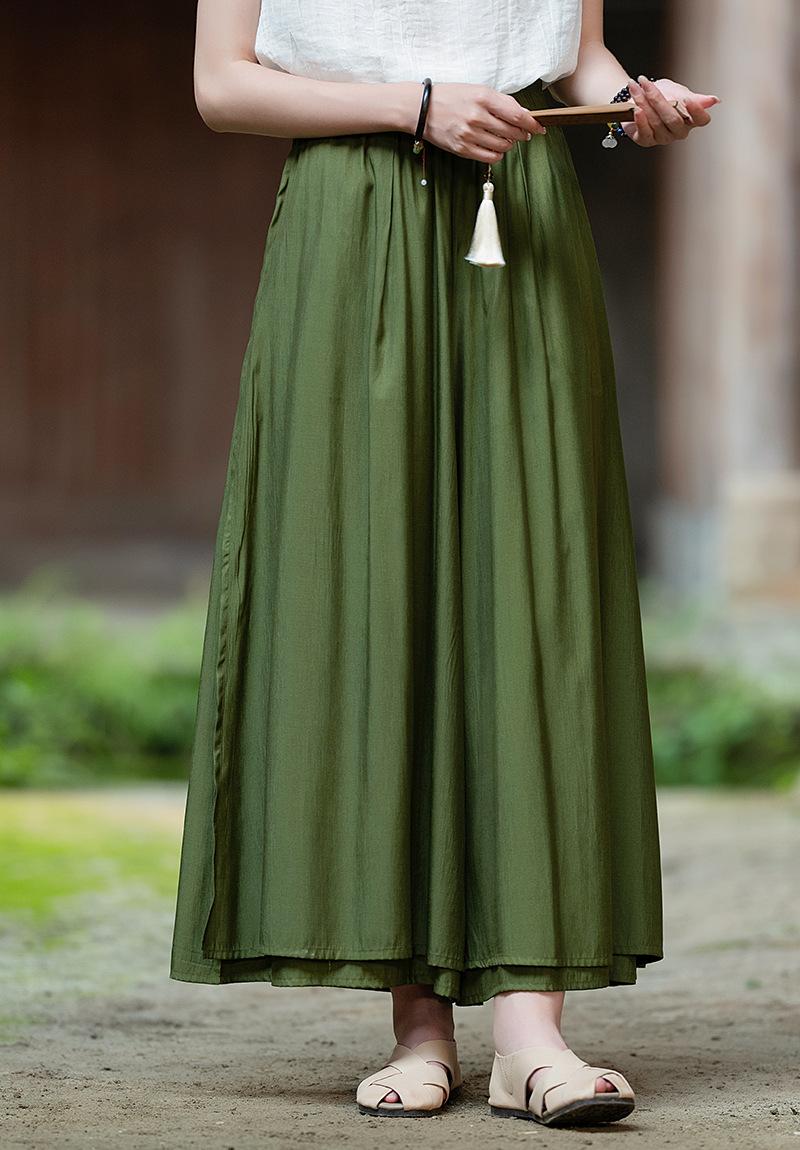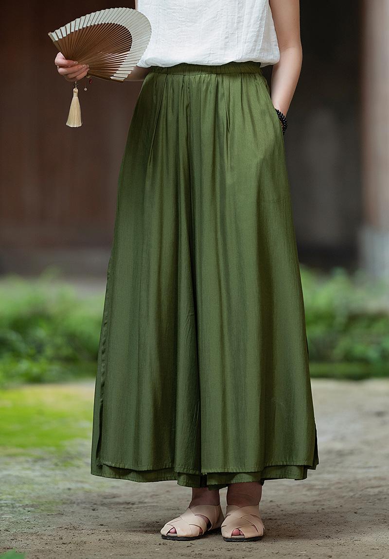 25 Otoño Algodón y Lino Mujer Nuevo Delgado Drapeado Pantalones de Pierna Ancha para Mujer Pantalones de Baile Ajustados para Mujer Falda Abertura Pantalones de Pierna Ancha Nueve Puntos