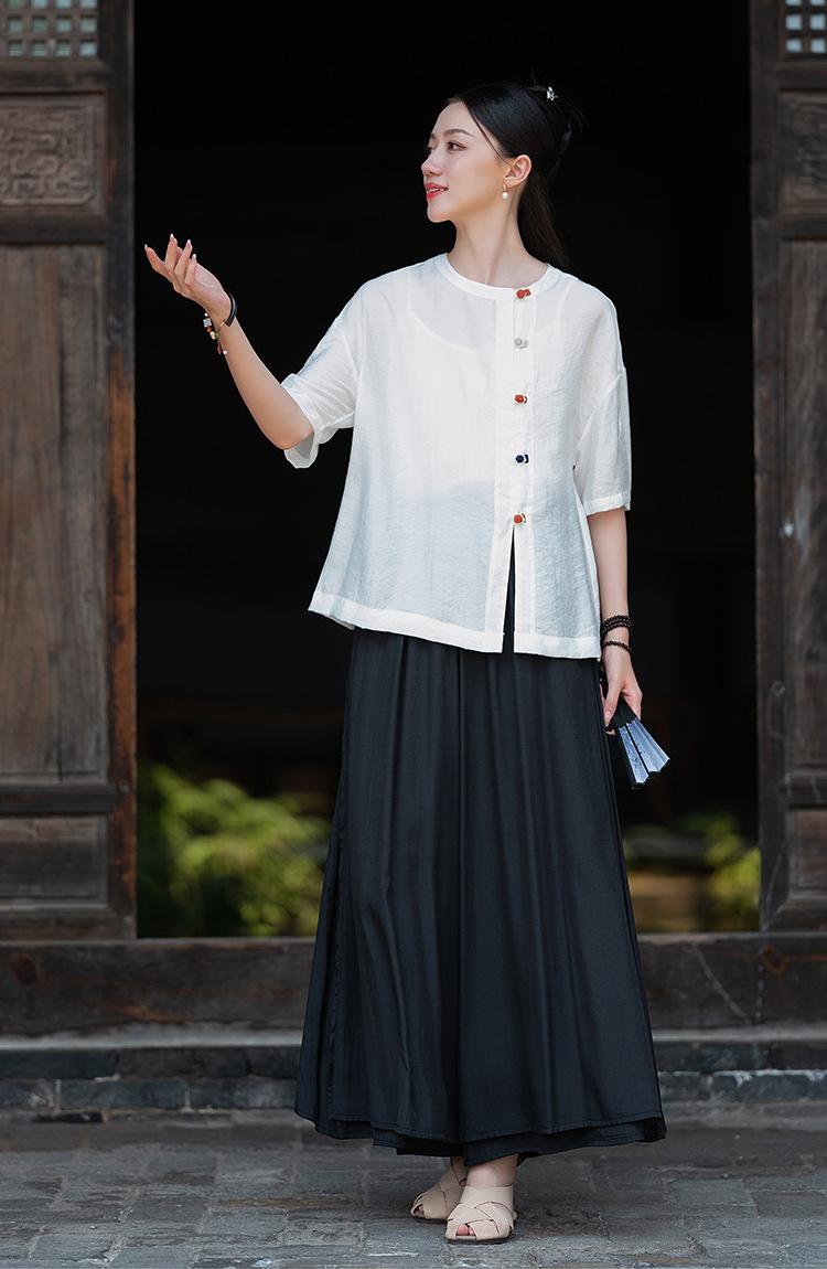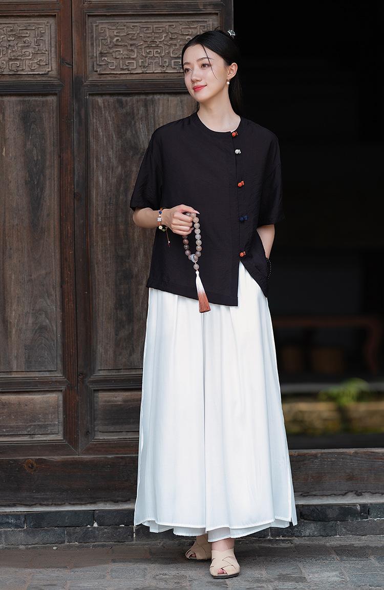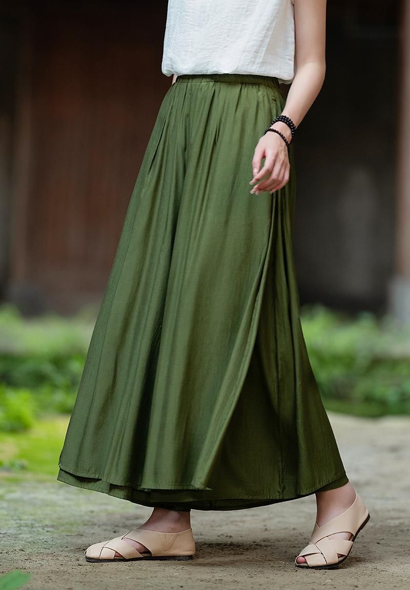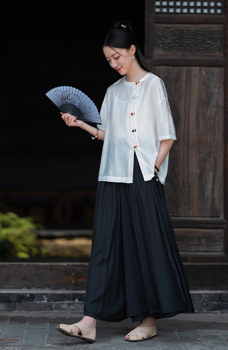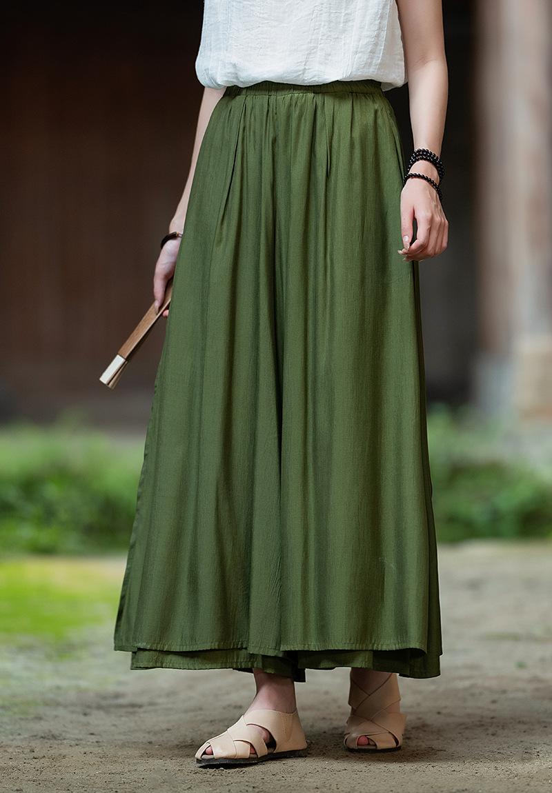 25 Otoño Algodón y Lino Mujer Nuevo Delgado Drapeado Pantalones de Pierna Ancha para Mujer Pantalones de Baile Ajustados para Mujer Falda Abertura Pantalones de Pierna Ancha Nueve Puntos