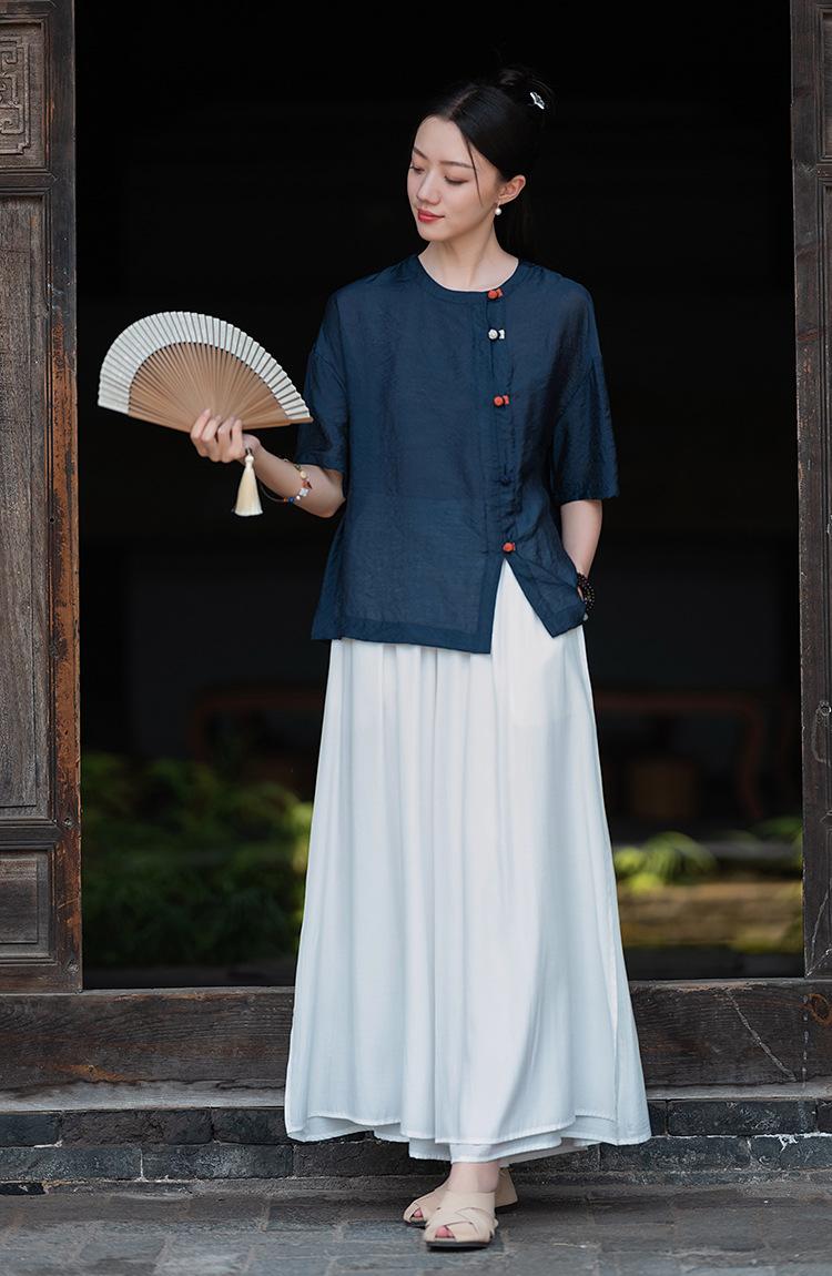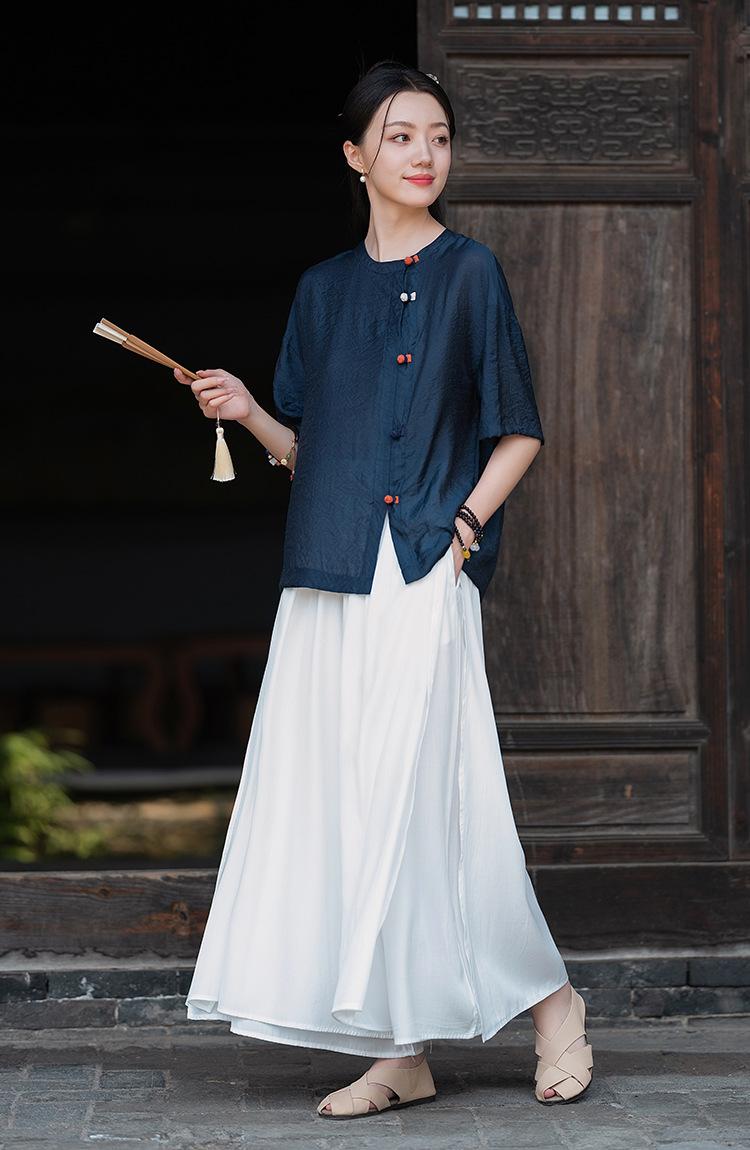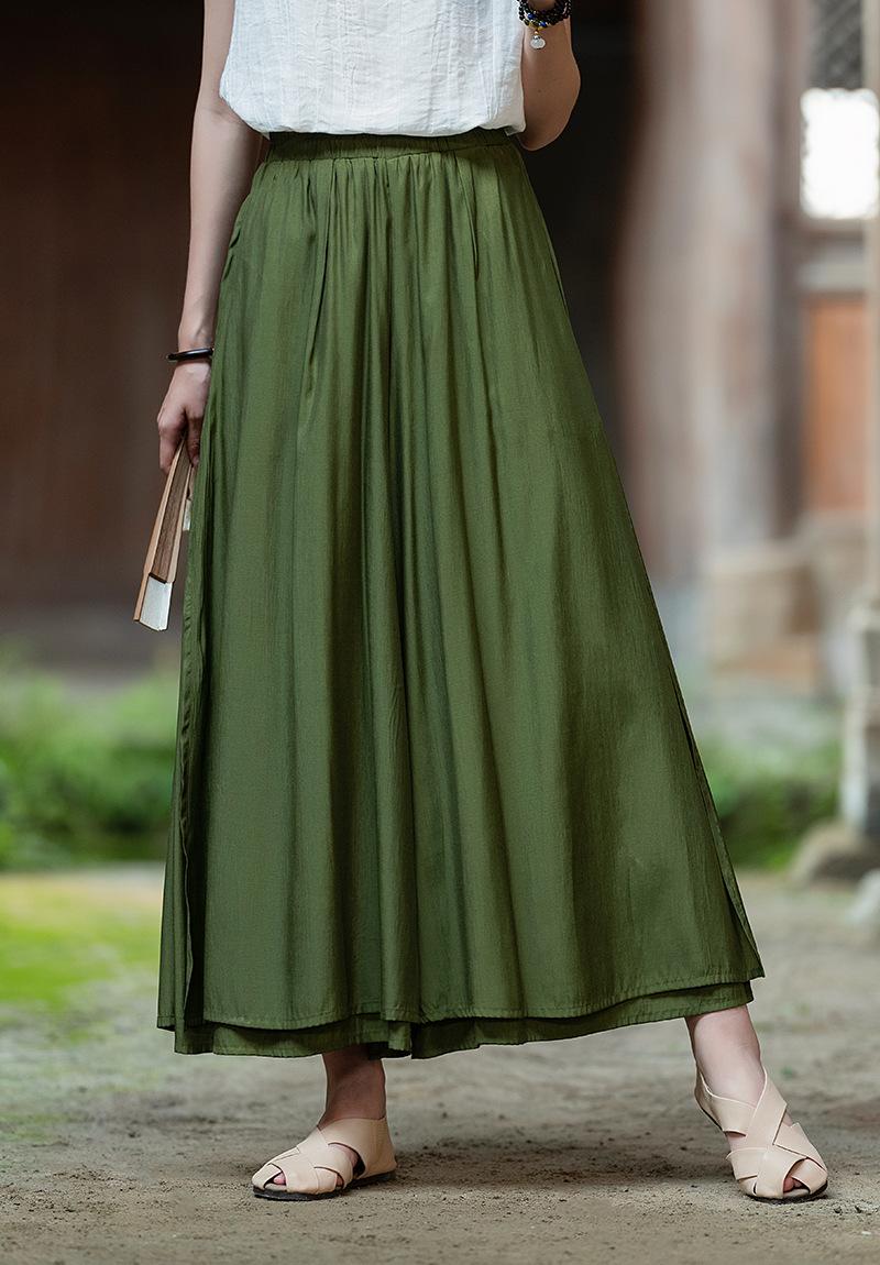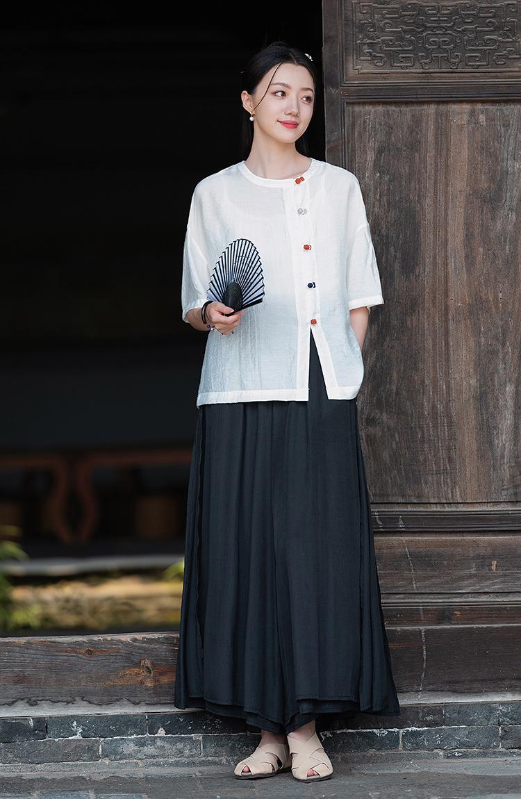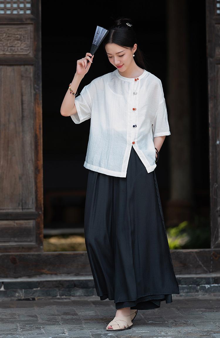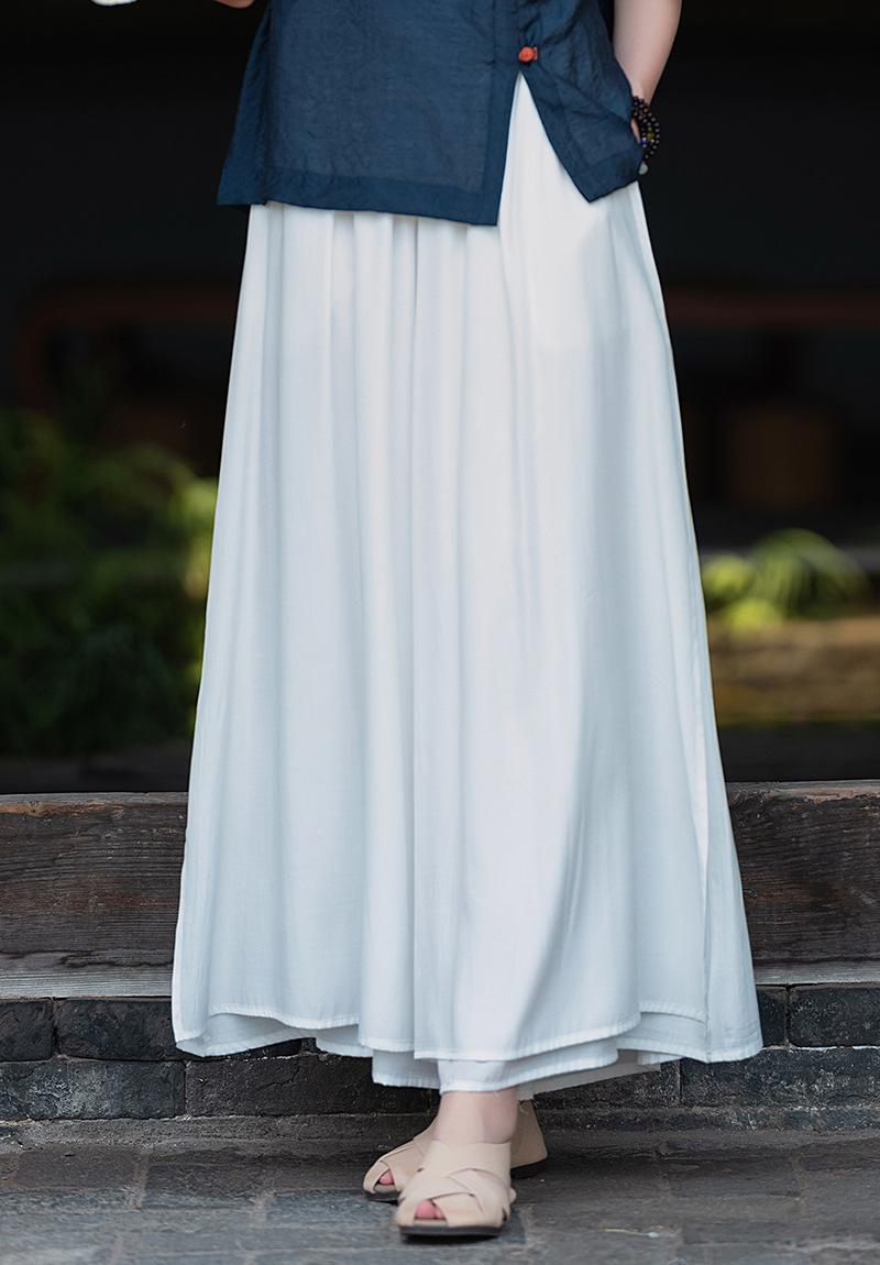 25 Otoño Algodón y Lino Mujer Nuevo Delgado Drapeado Pantalones de Pierna Ancha para Mujer Pantalones de Baile Ajustados para Mujer Falda Abertura Pantalones de Pierna Ancha Nueve Puntos