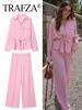 Conjunto de dos piezas con bolsillos sueltos informales para mujer, traje de manga murciélago con solapa para vacaciones de primavera y verano de Europa y América 2023