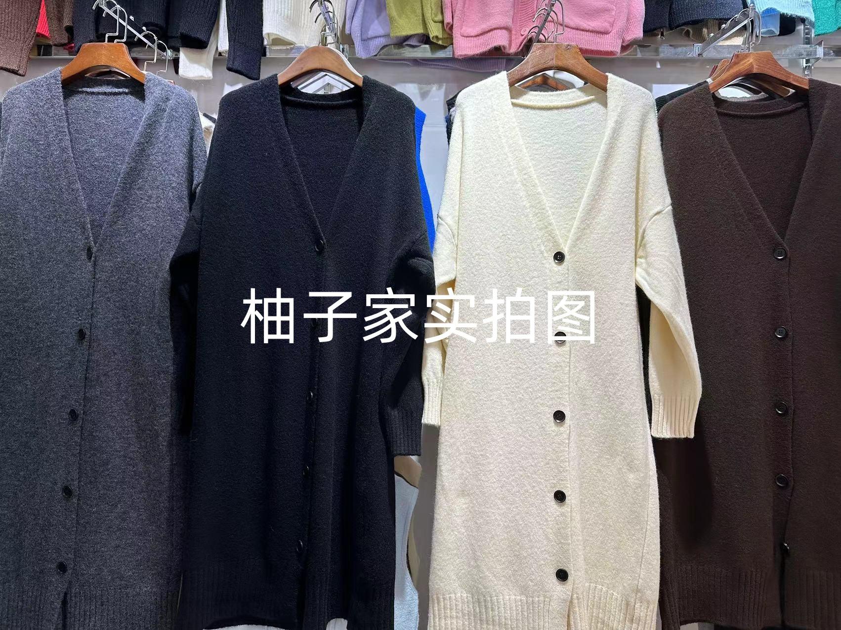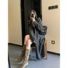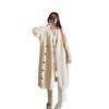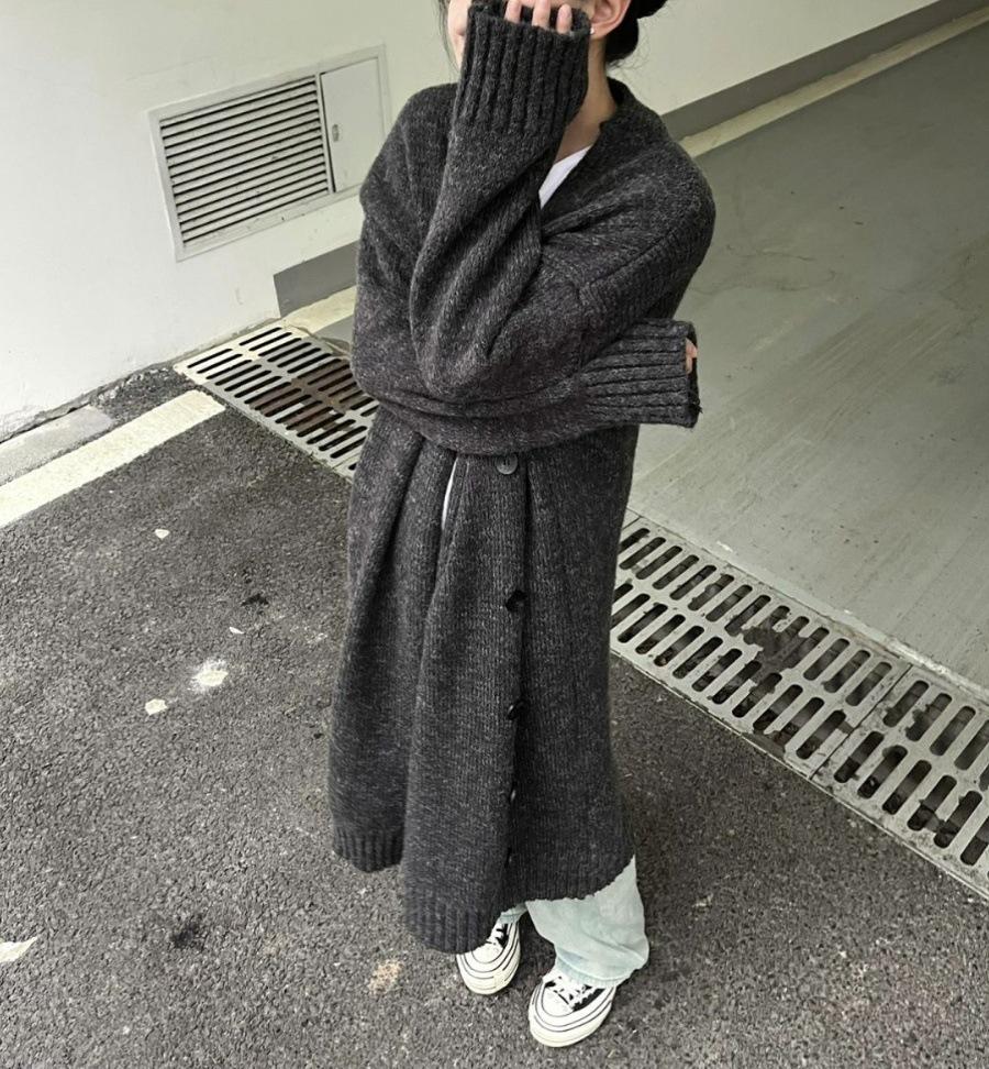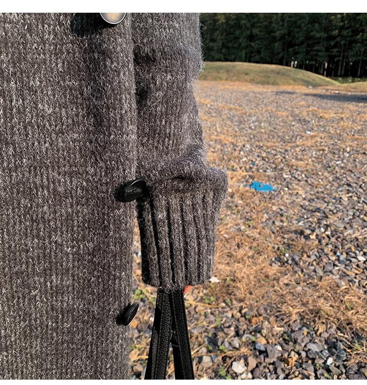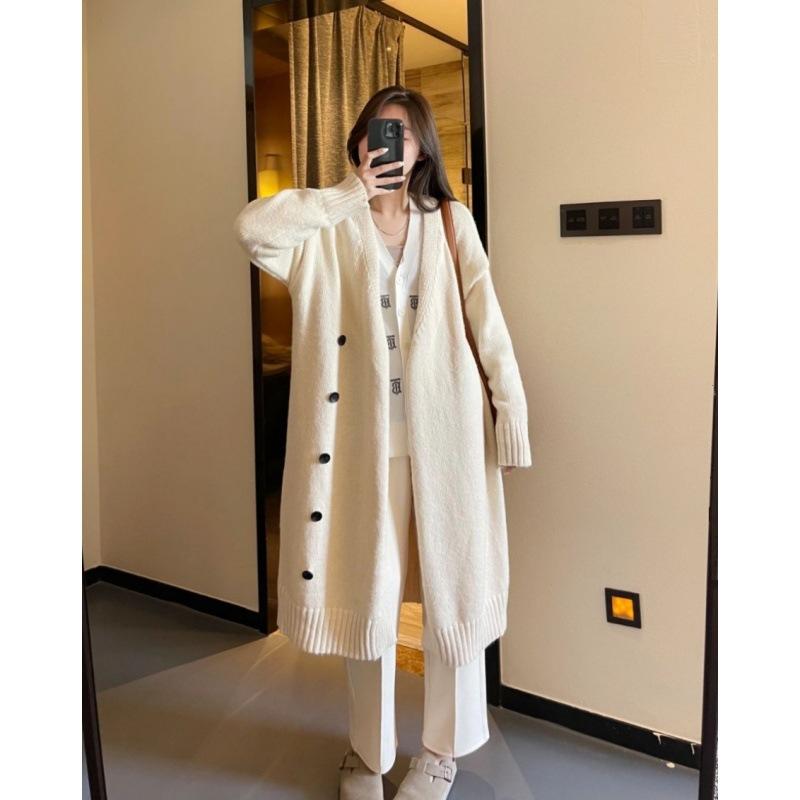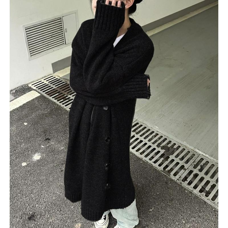 Suéter de otoño e invierno con cuello en V, largo medio coreano, por encima de la rodilla, holgado, estilo perezoso, cárdigan de punto para mujer