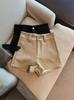¡Recomendar! ¡Bien delgado! Cintura alta corte vertical cubrecaderas espalda cintura elástica sarga Tencel pierna ancha pantalón corto B