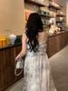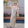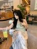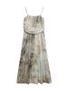 Vestido de verano de talla grande con estampado de tinta china para mujer, estilo francés, sin tirantes, de alta gama