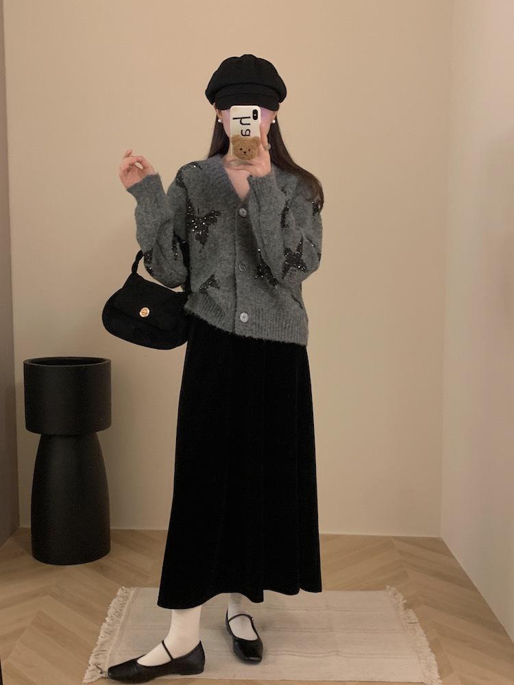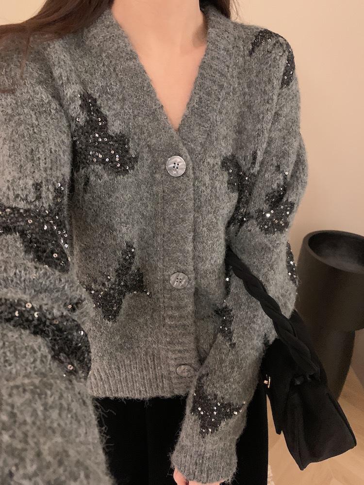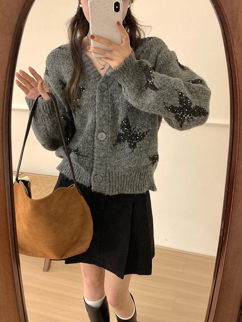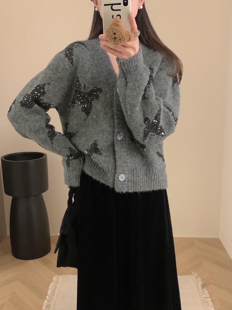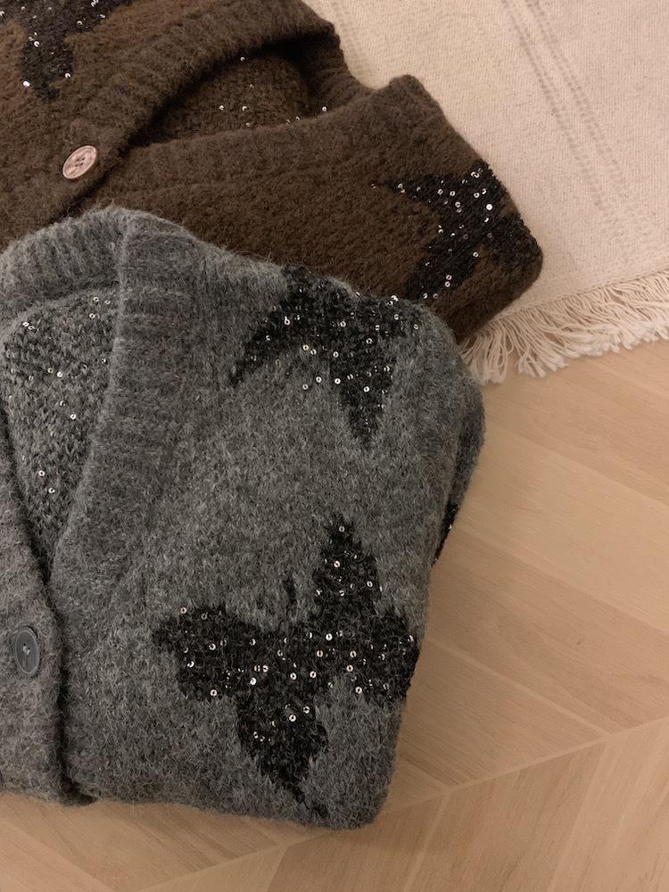 Otoño e invierno nuevo cárdigan de punto suave y suelto de cera para mujer, suéter de lentejuelas de mariposa de estilo occidental de alta gama para mujer