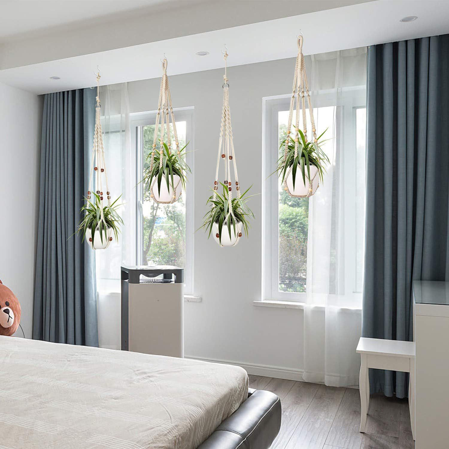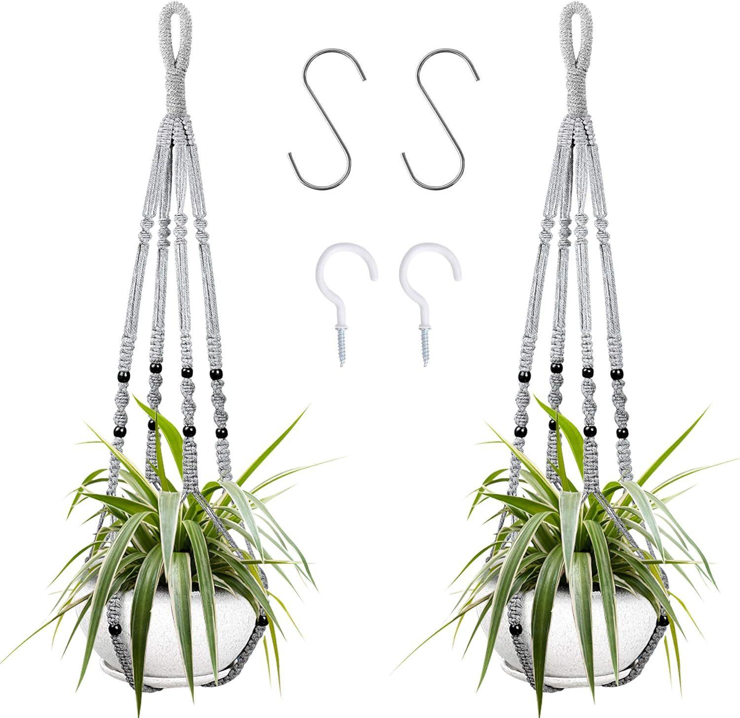 Maceta de red sin fondo con gancho para interior y exterior, ideal para colgar plantas.