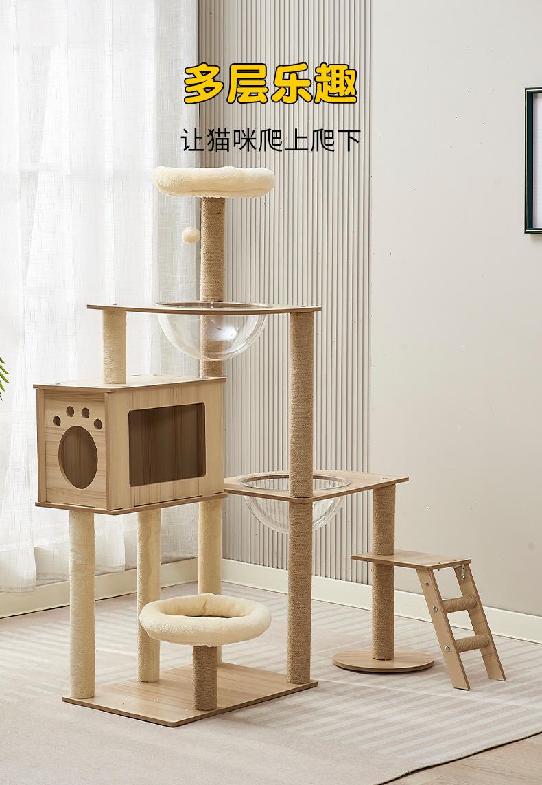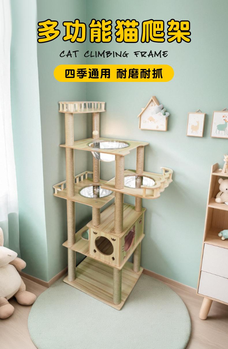 Marco de Escalada de Madera Grande al por Mayor Rascador para Gatos Casa para Gatos Poste Rascador Juguete Integrado para Gatos Bola de Juguete Marco de Escalada de Felpa para Gatos
