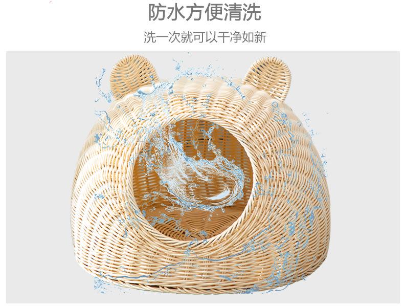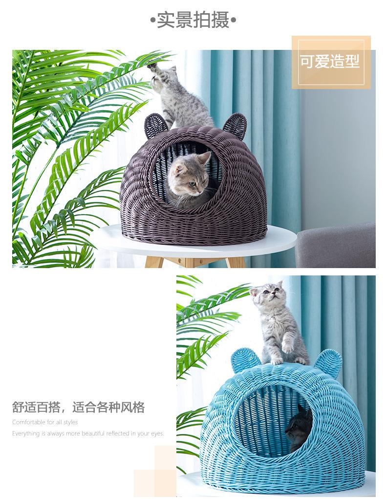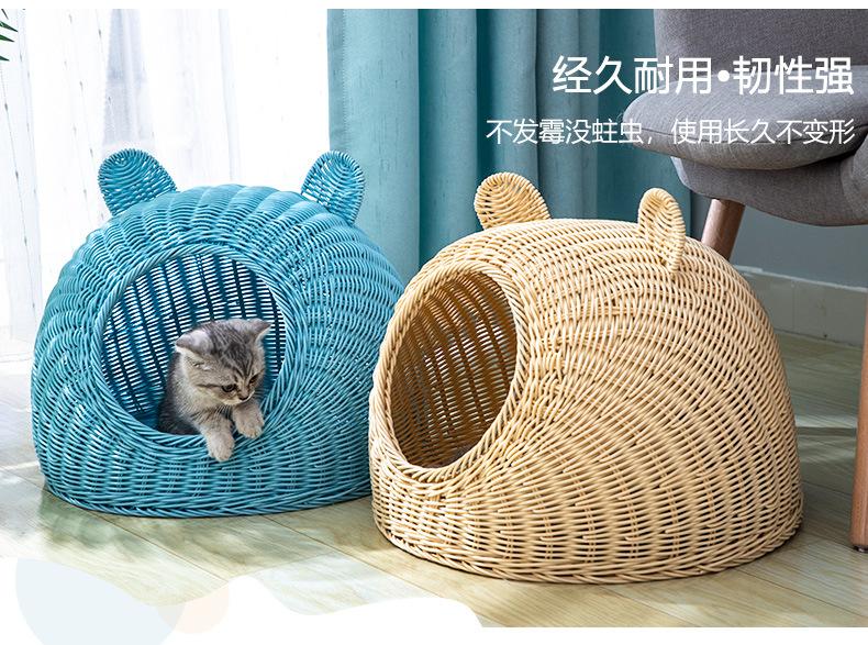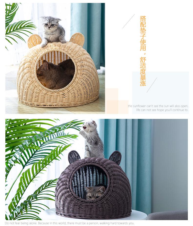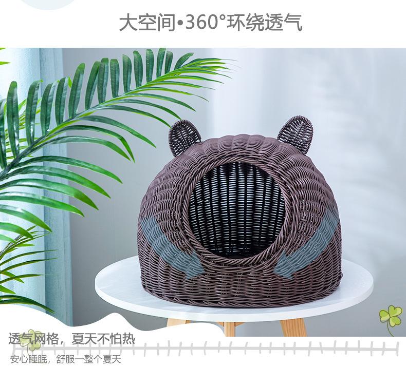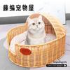 Nido Tejido Lavable para Gatos Universal para Cuatro Estaciones Nido Semicerrado para Gatos Nido de Verano para Mascotas Nido de Ratán Transpirable para Gatos