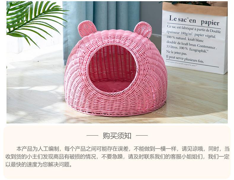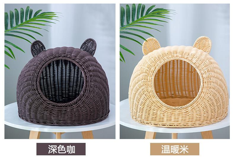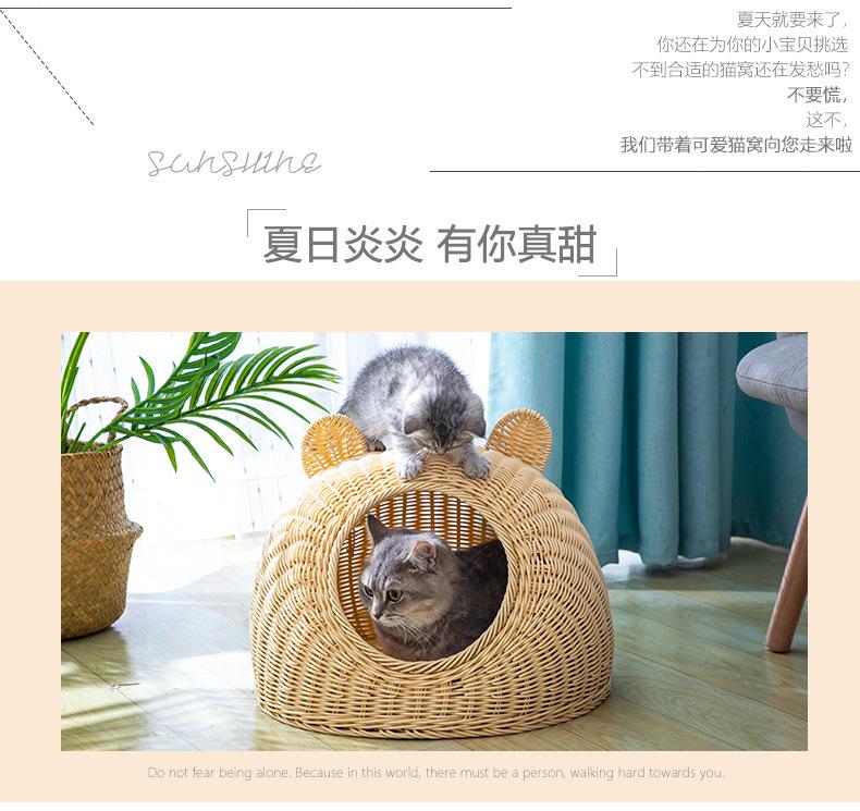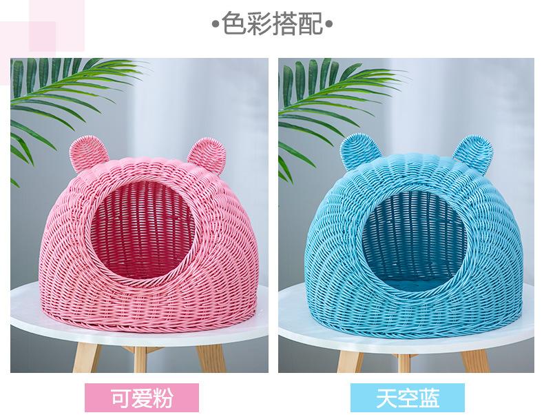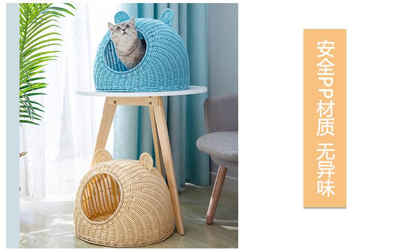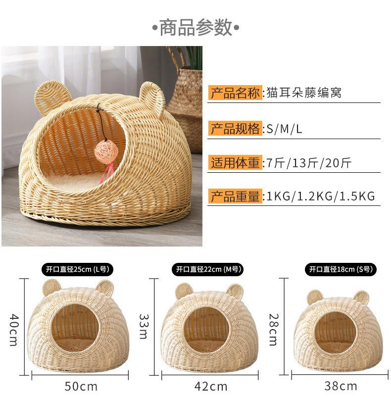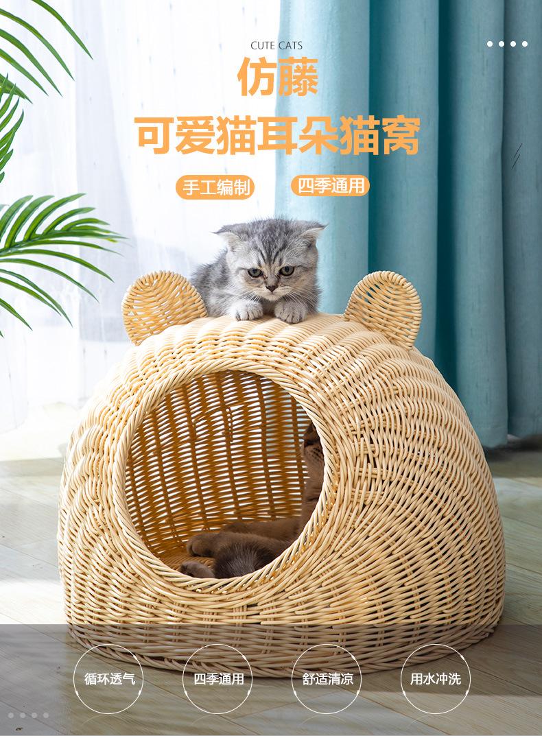 Nido Tejido Lavable para Gatos Universal para Cuatro Estaciones Nido Semicerrado para Gatos Nido de Verano para Mascotas Nido de Ratán Transpirable para Gatos
