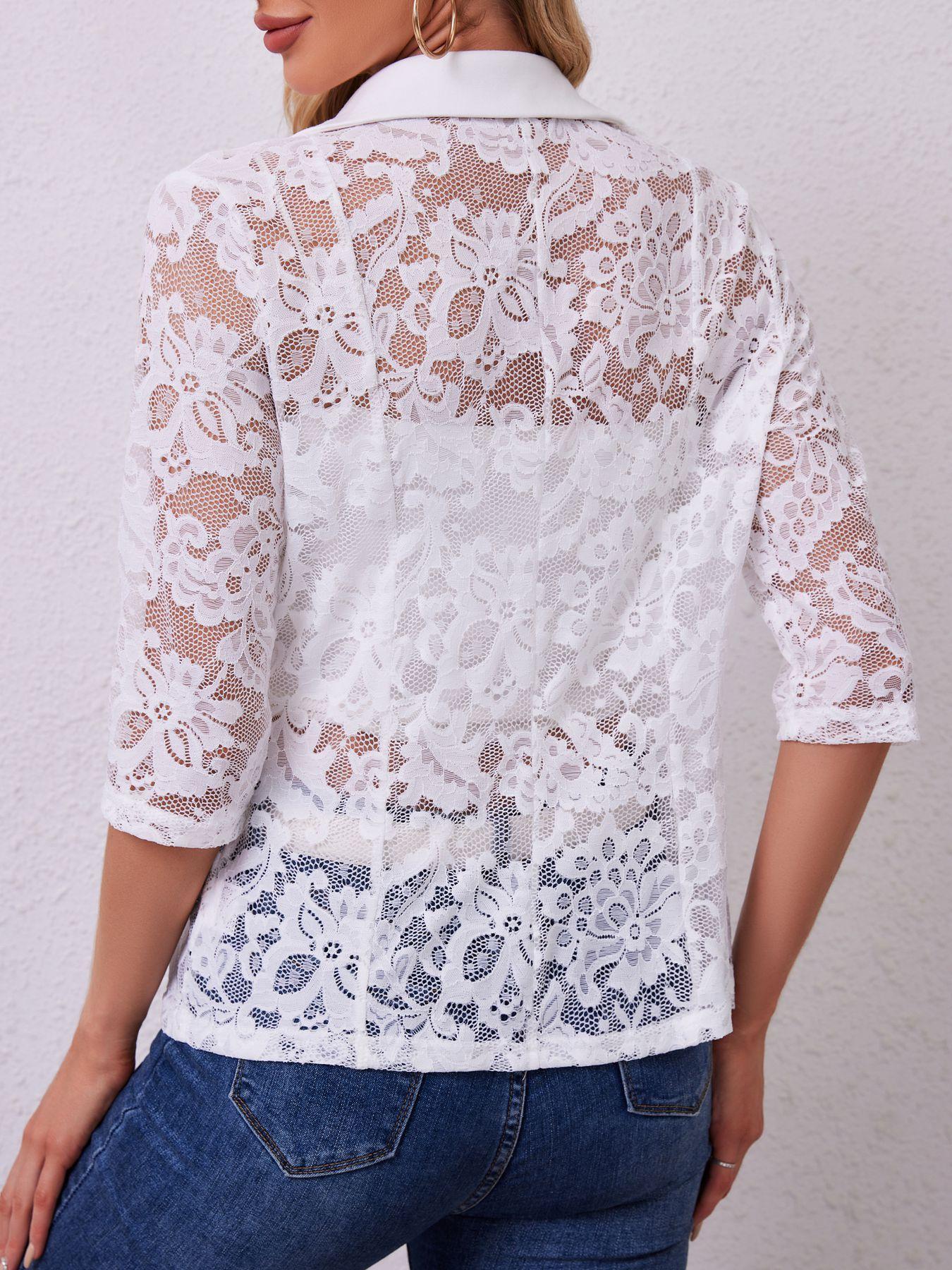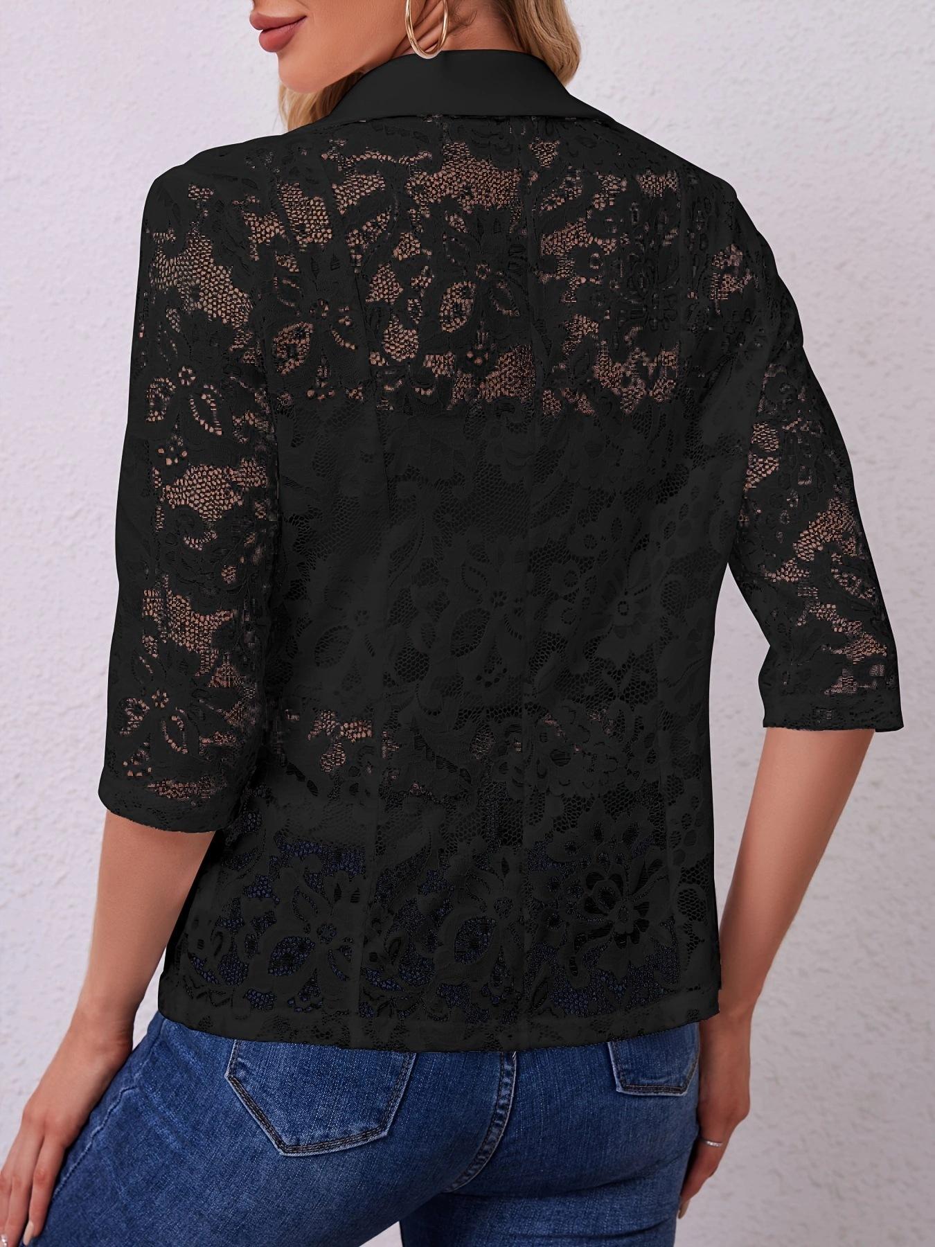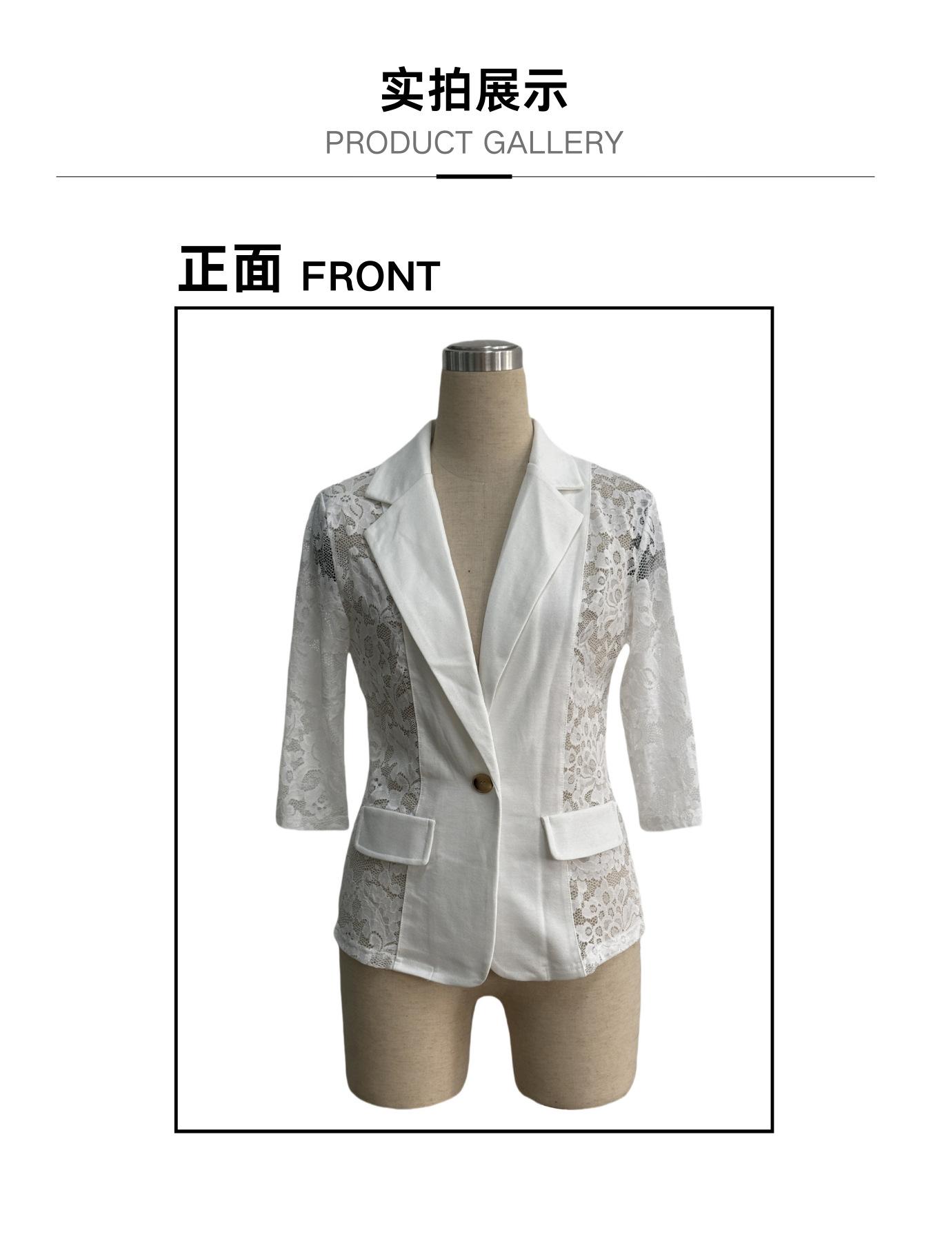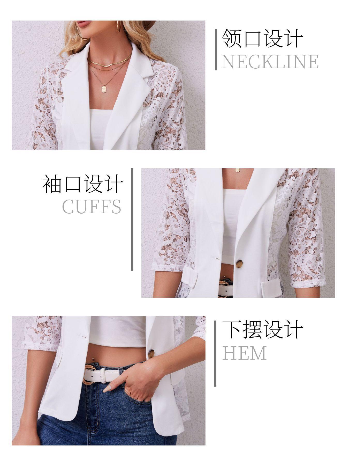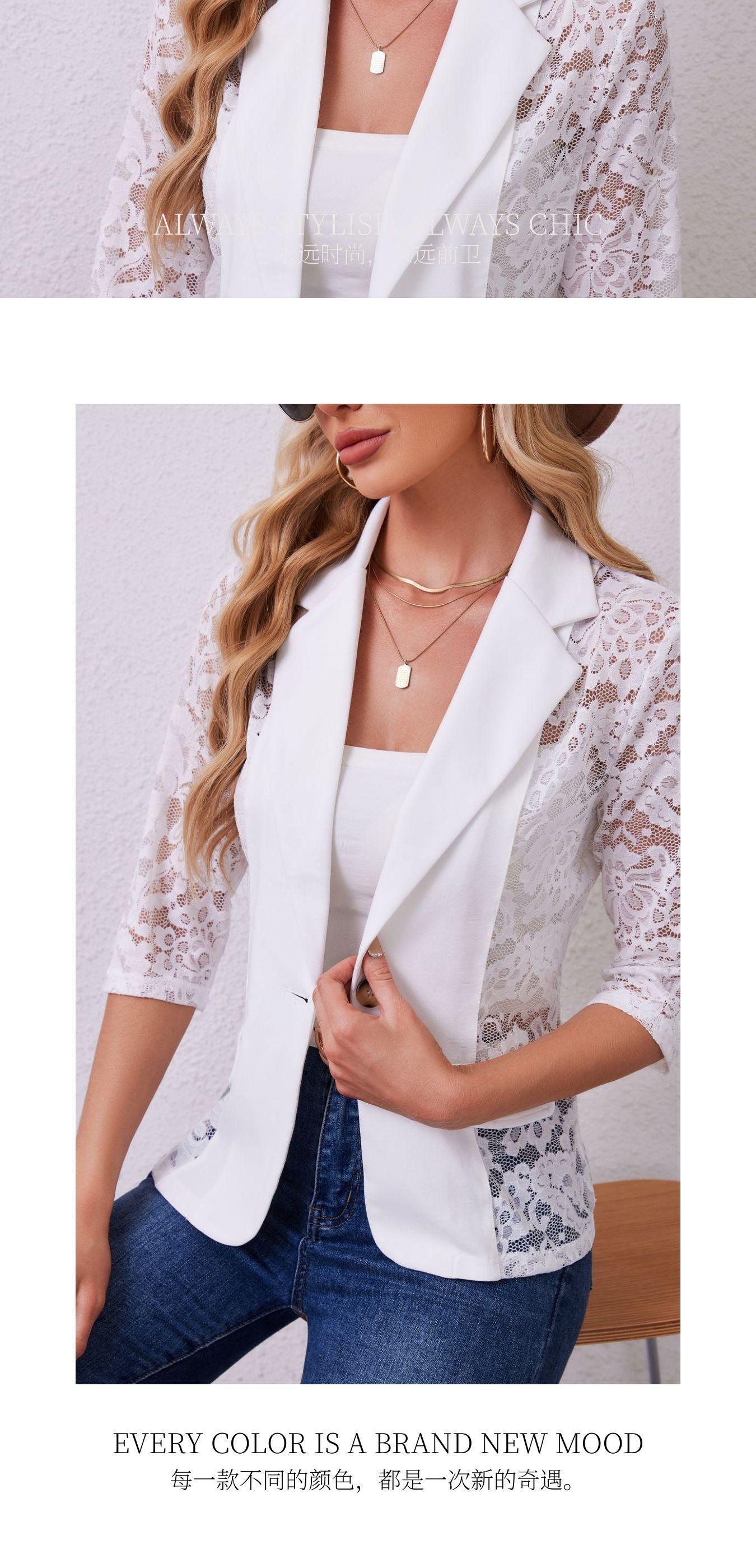 Europeo y Americano Transfronterizo 2025 Nuevo Otoño Elegante Color Puro Moda Encaje Empalmado Chaqueta de Traje Pequeño Tops de Mujer