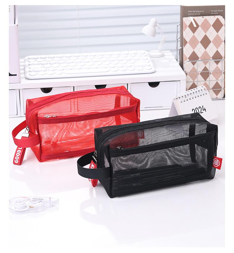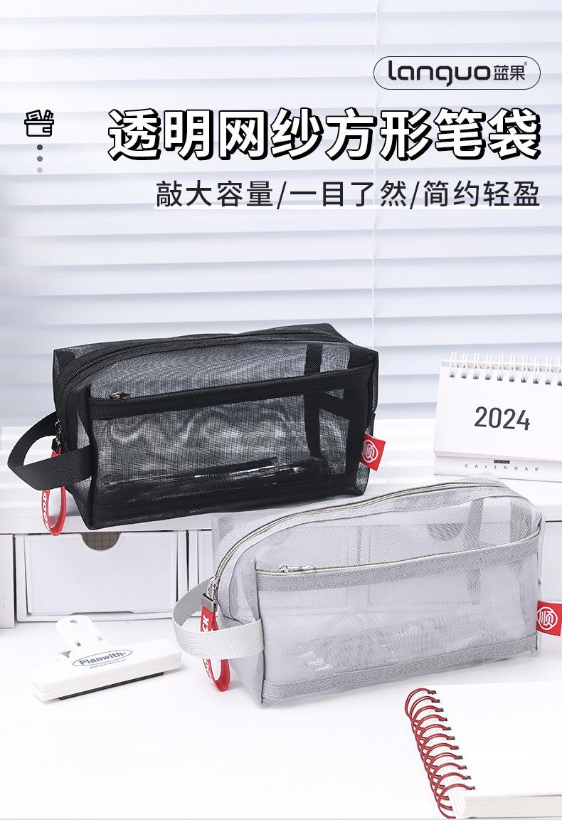 Bolsa de Lápices de Malla Transparente de Fruta Azul Bolsa de Lápices Cuadrada Especial de Gran Capacidad para Estudiantes Bolsa de Papelería para Examen de Ingreso a la Preparatoria