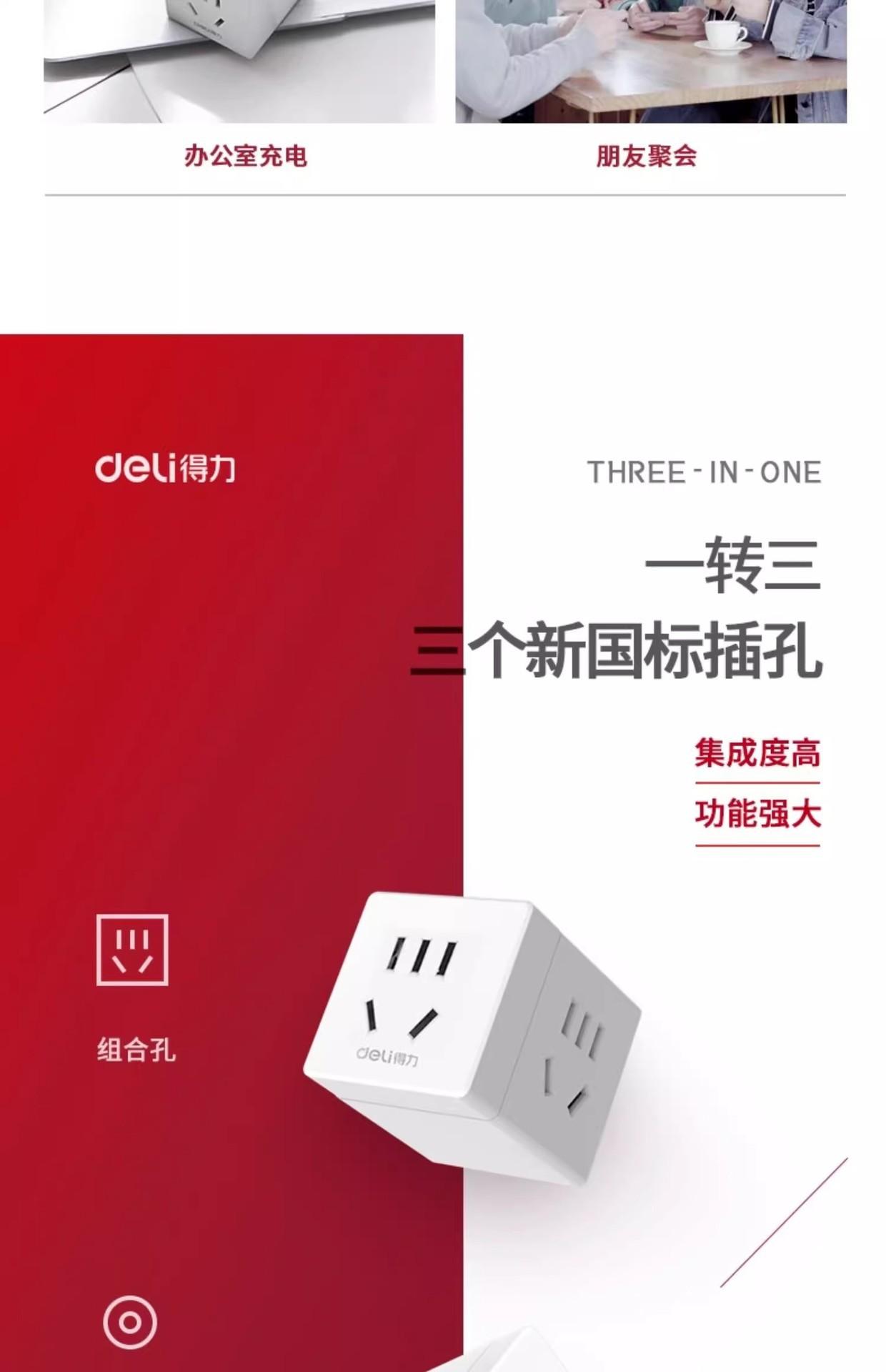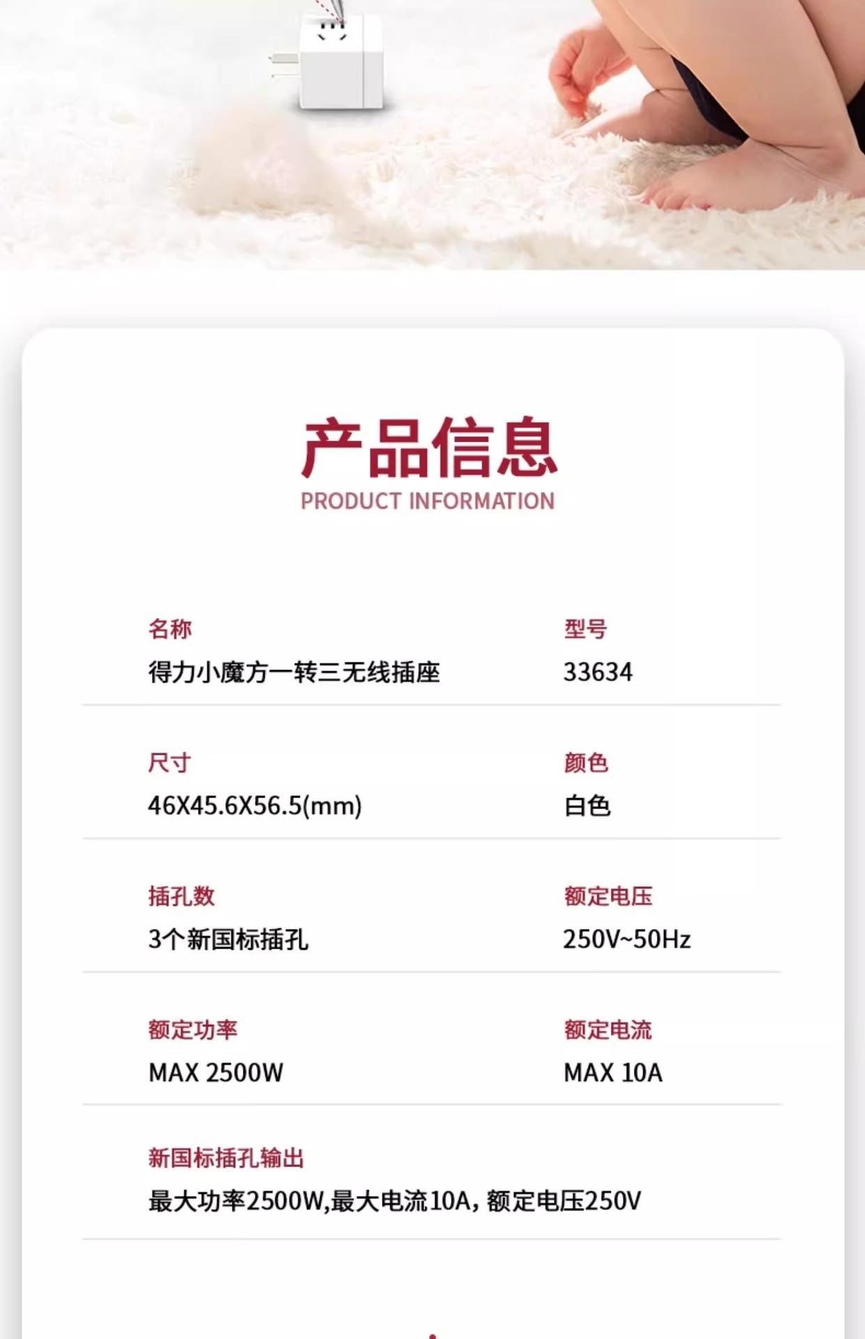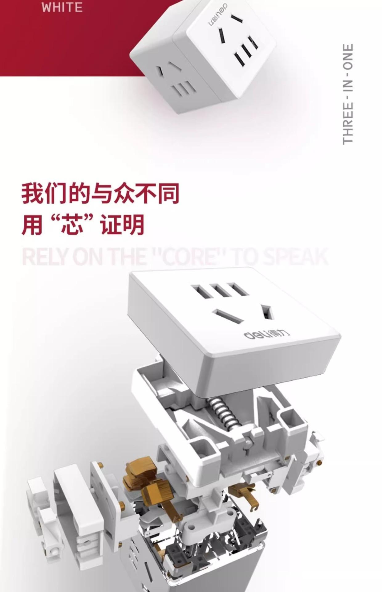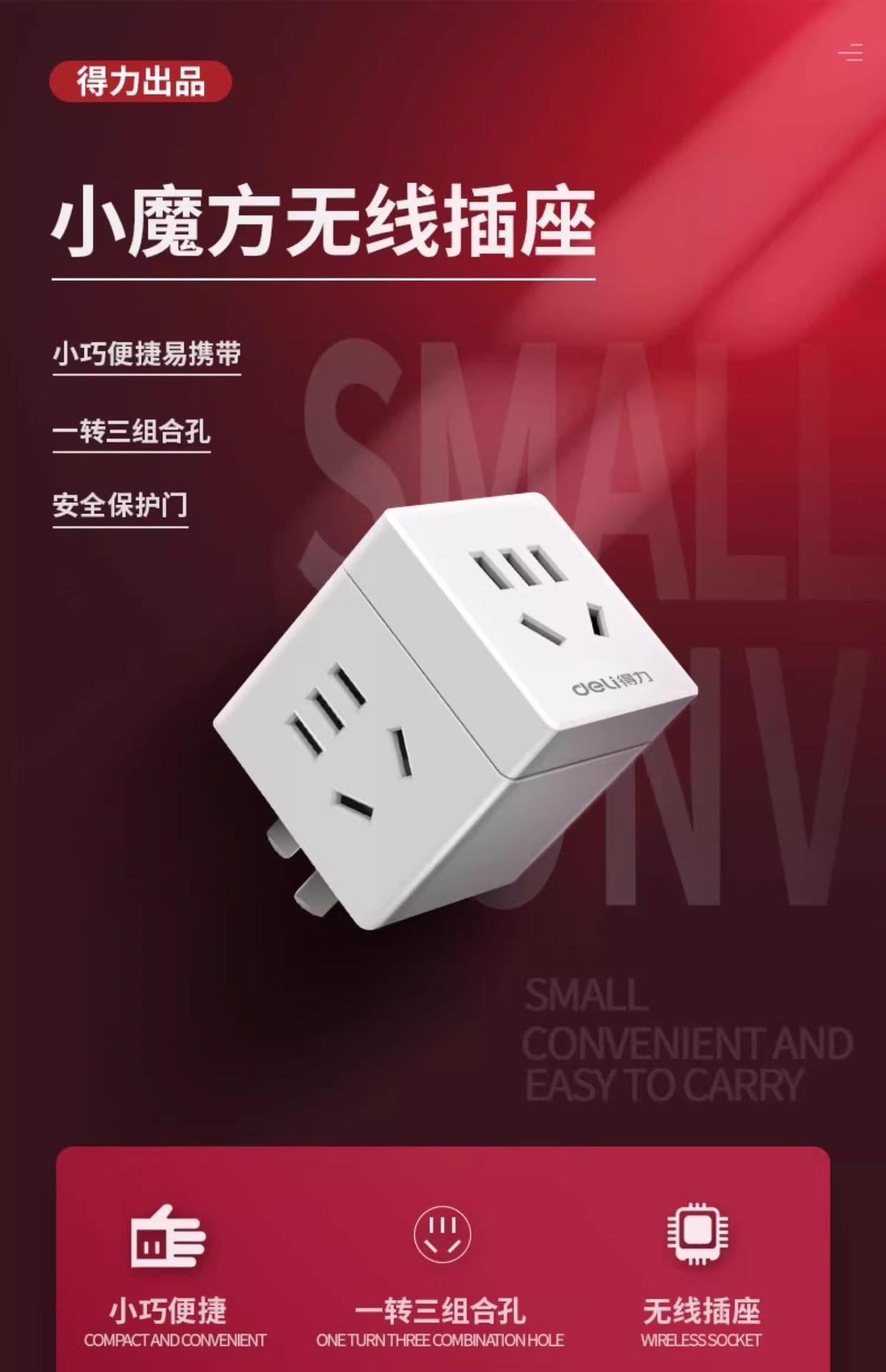 Enchufe inalámbrico Deli 33634, enchufe de conversión de viaje de 3 orificios, enchufe convertidor de potencia de 1 a 3, convertidor de cubo de Rubik