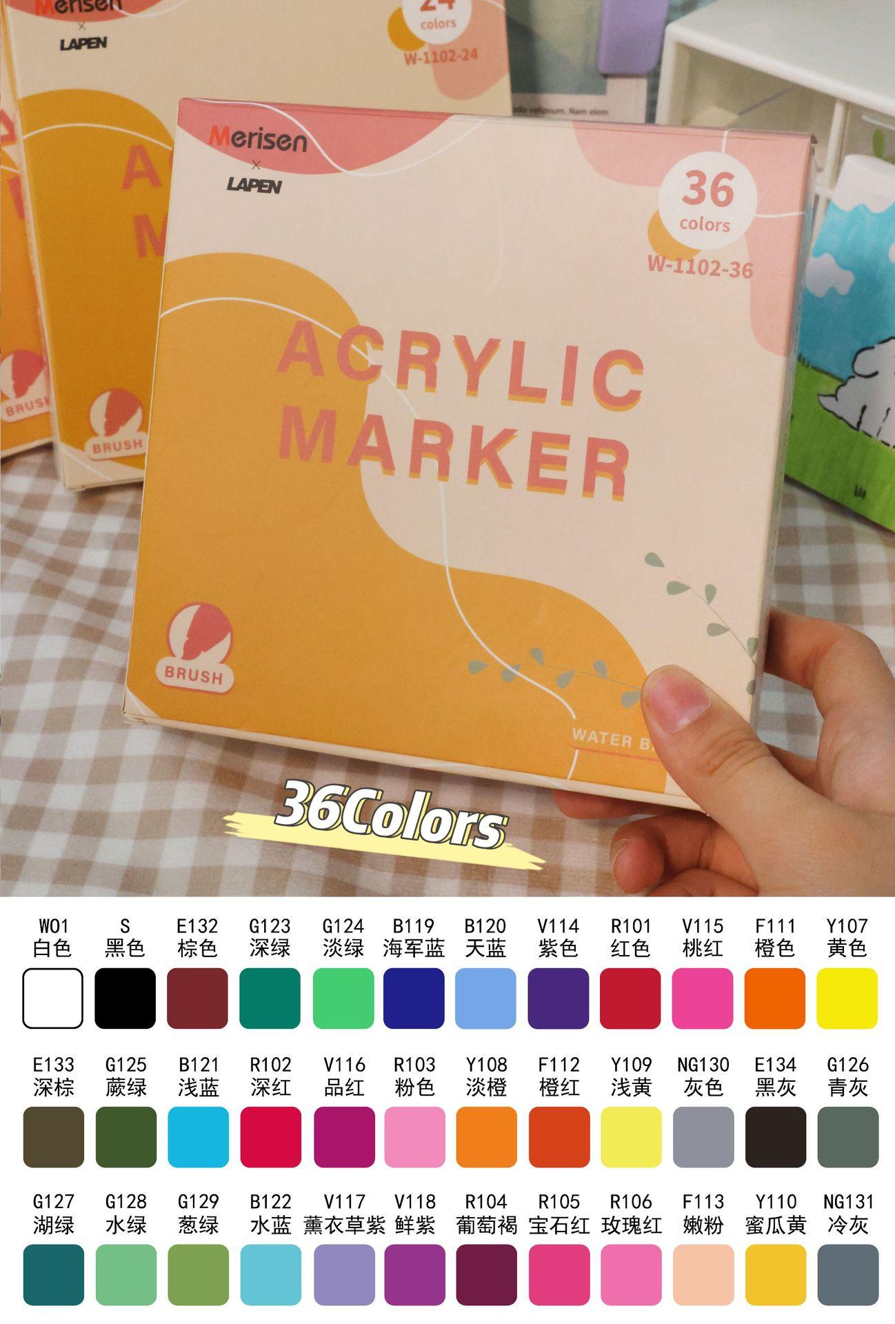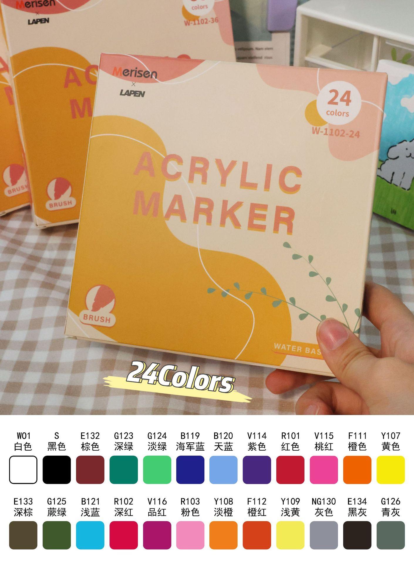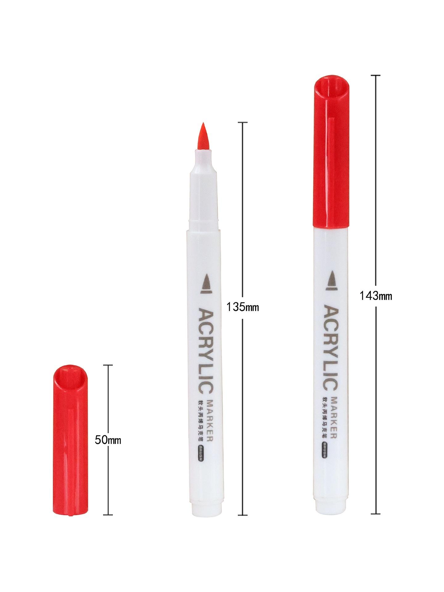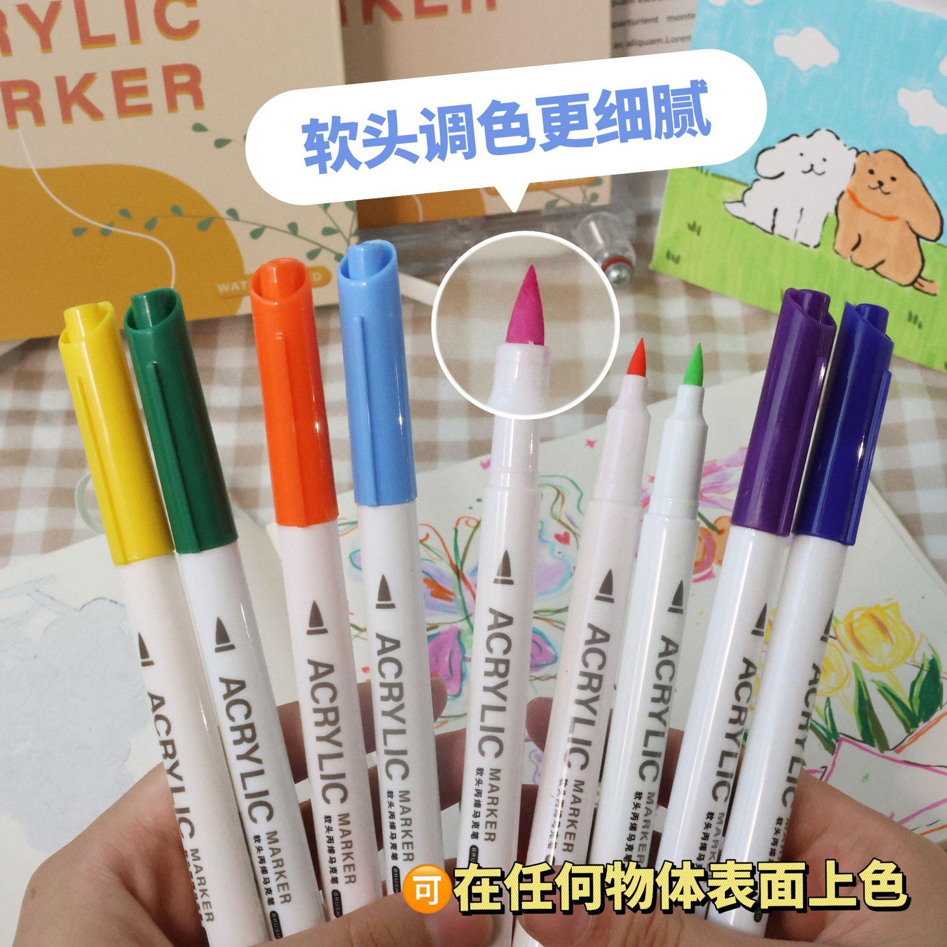 Plumón acrílico de punta suave, juego de 36 colores, pluma acrílica para estudiantes, no tóxica, lavable, con pincel, resistente al agua, pluma resaltadora
