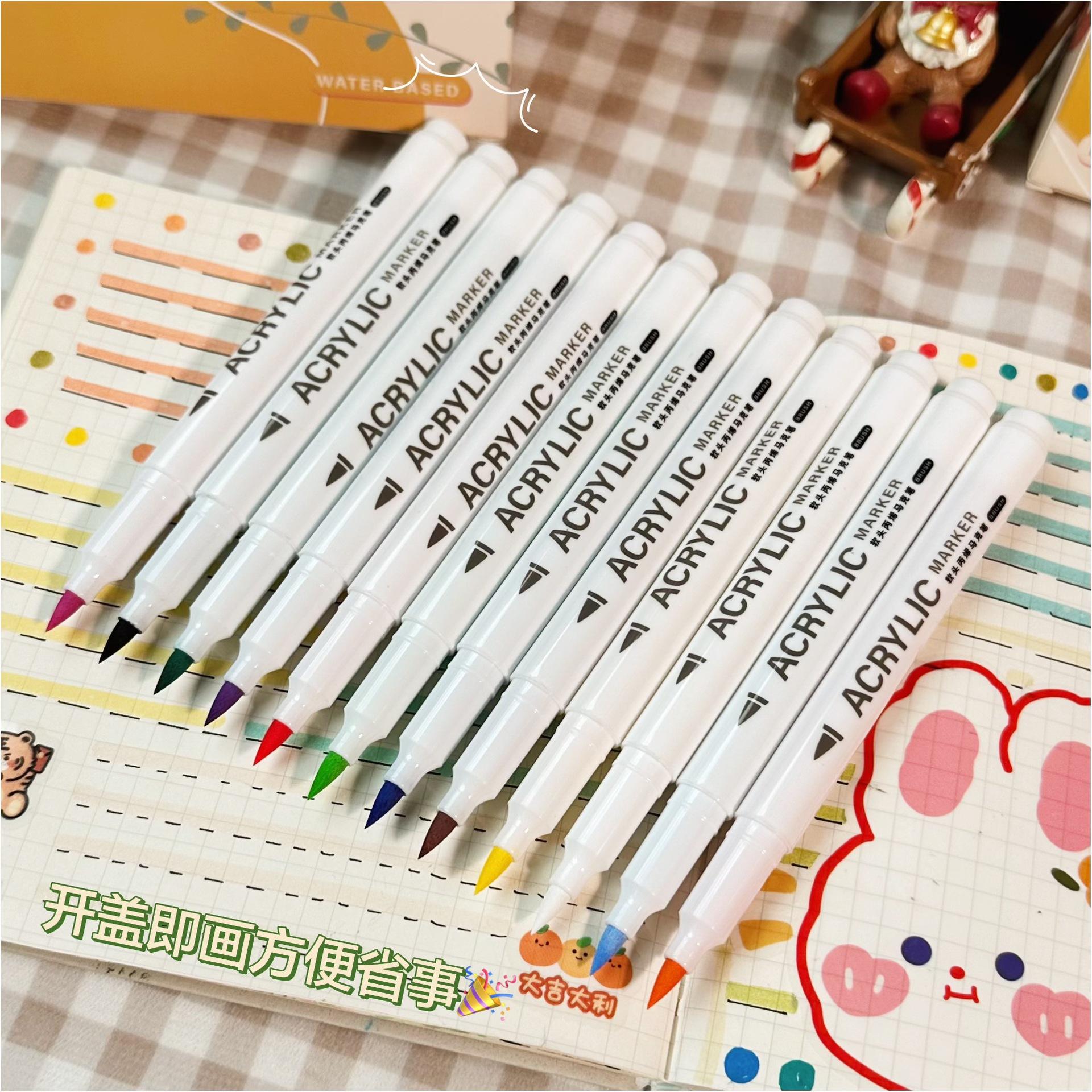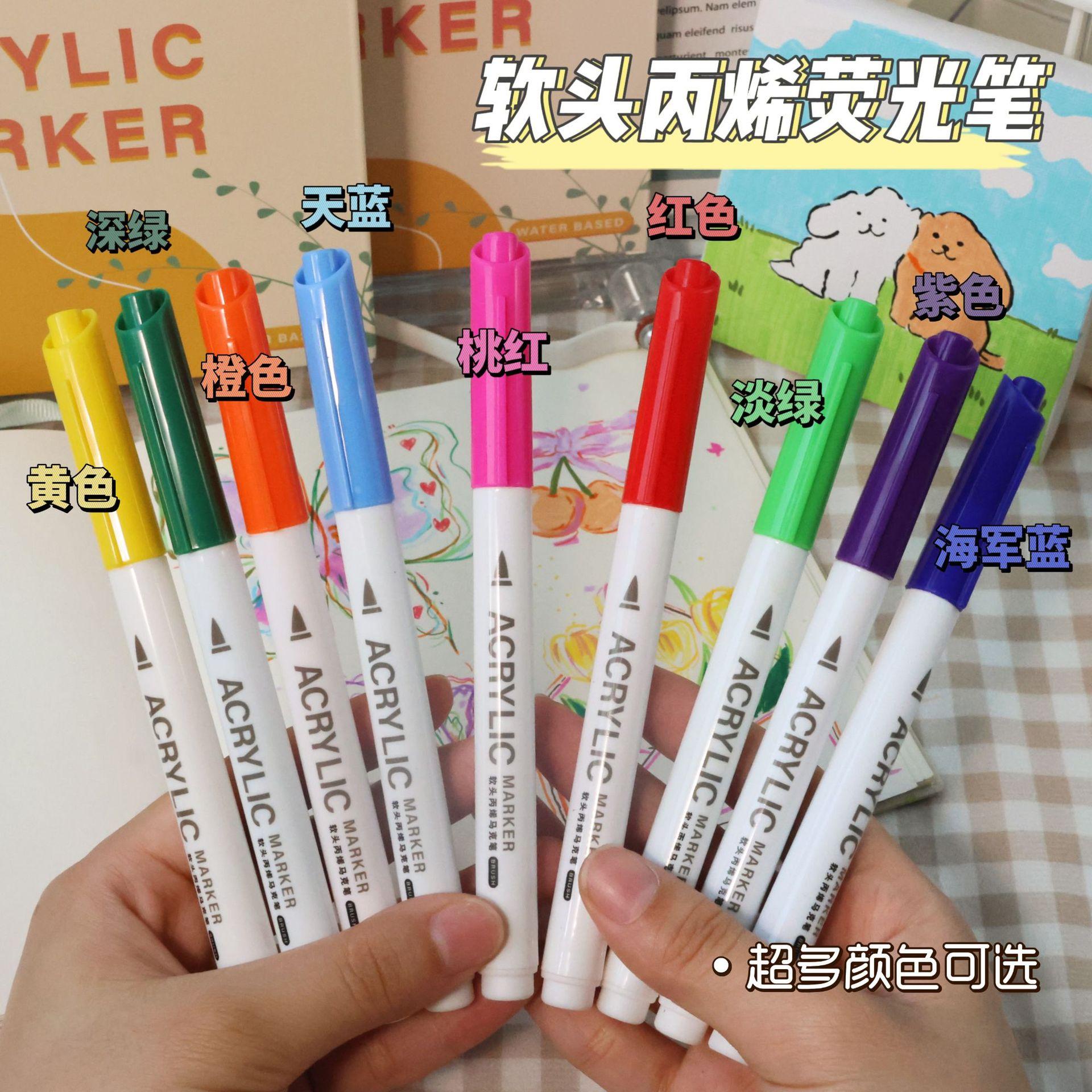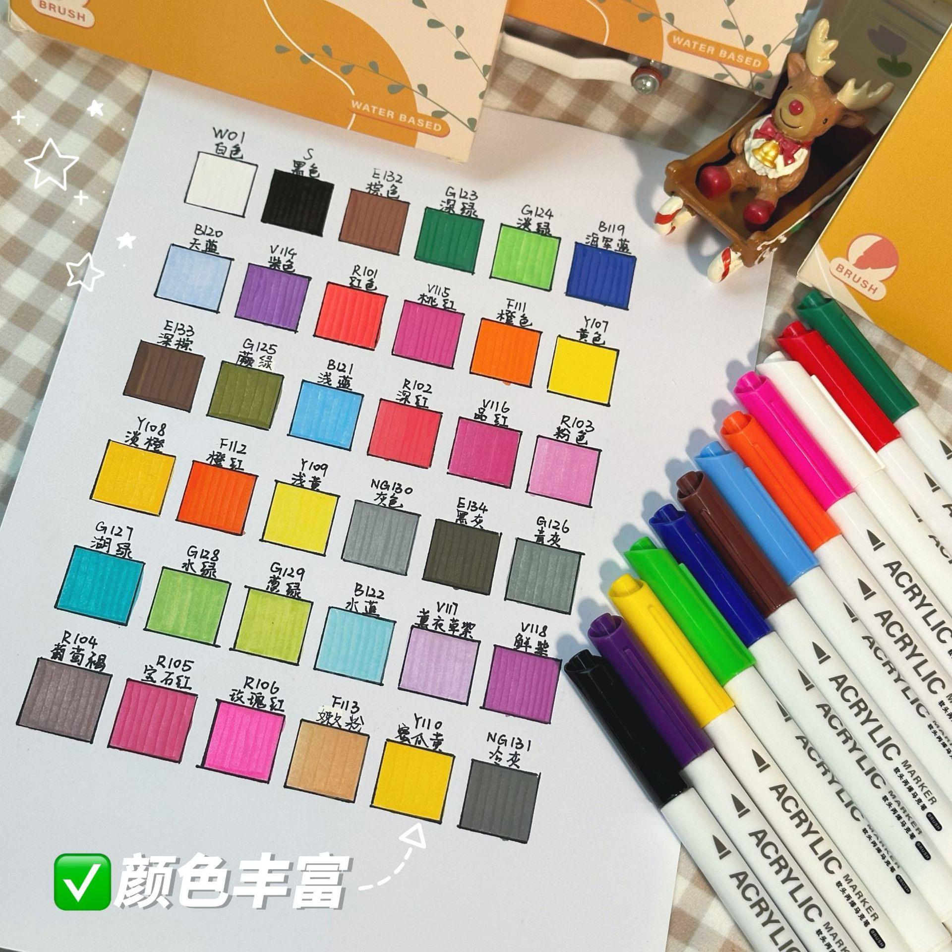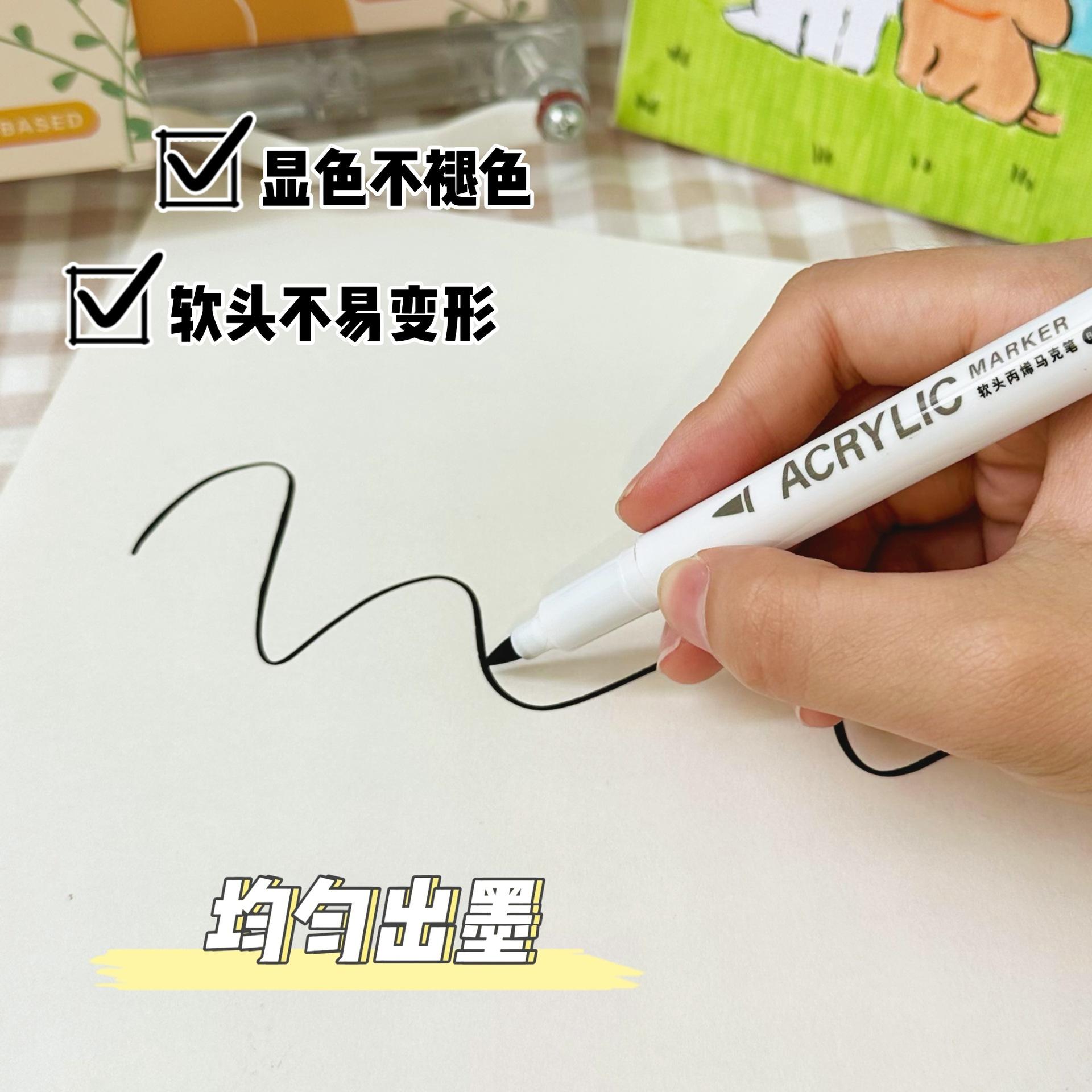 Plumón acrílico de punta suave, juego de 36 colores, pluma acrílica para estudiantes, no tóxica, lavable, con pincel, resistente al agua, pluma resaltadora