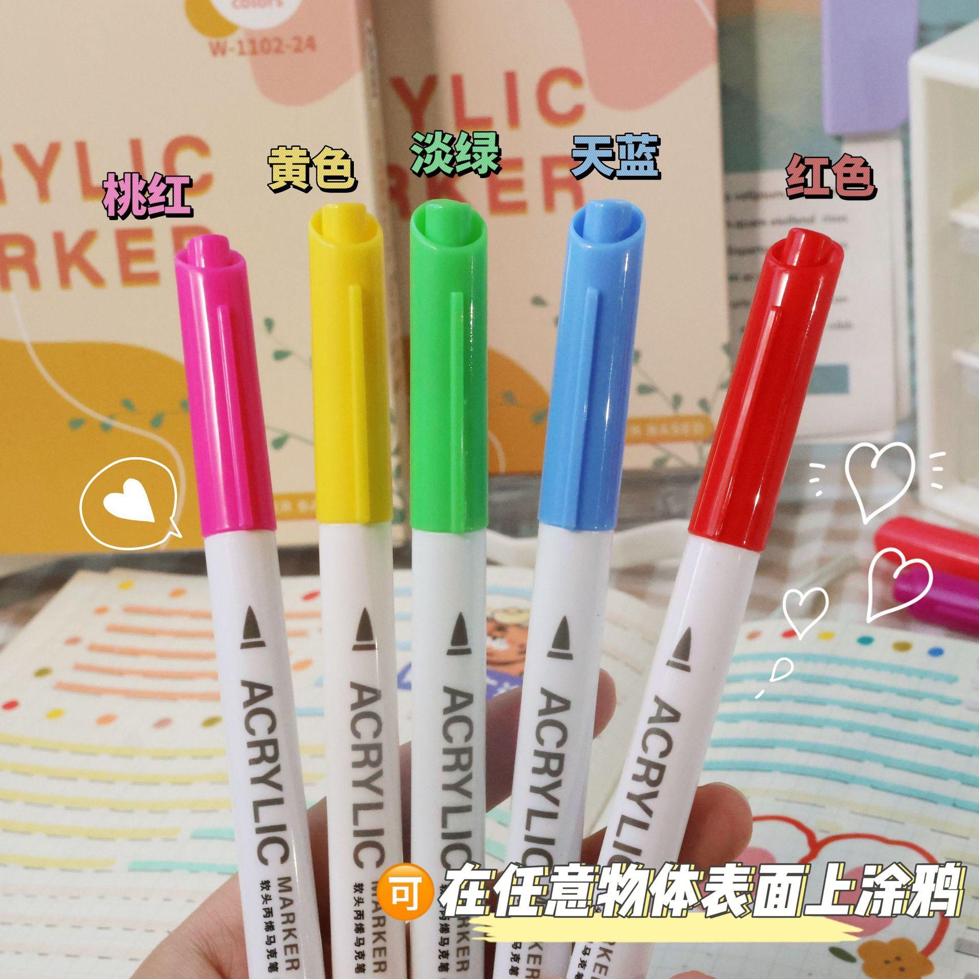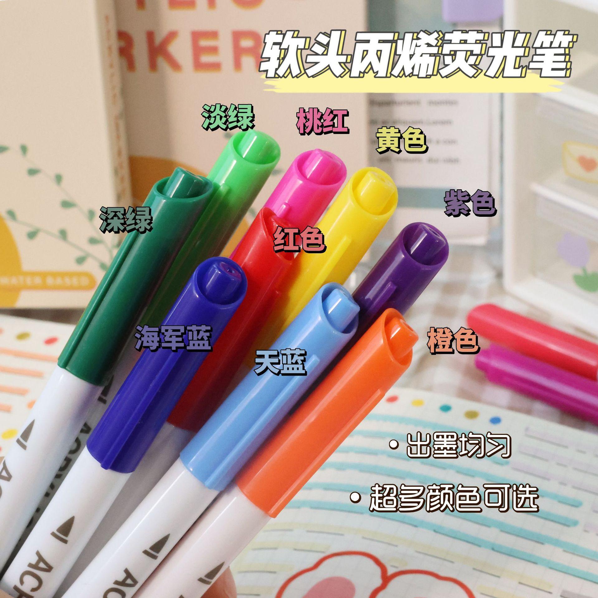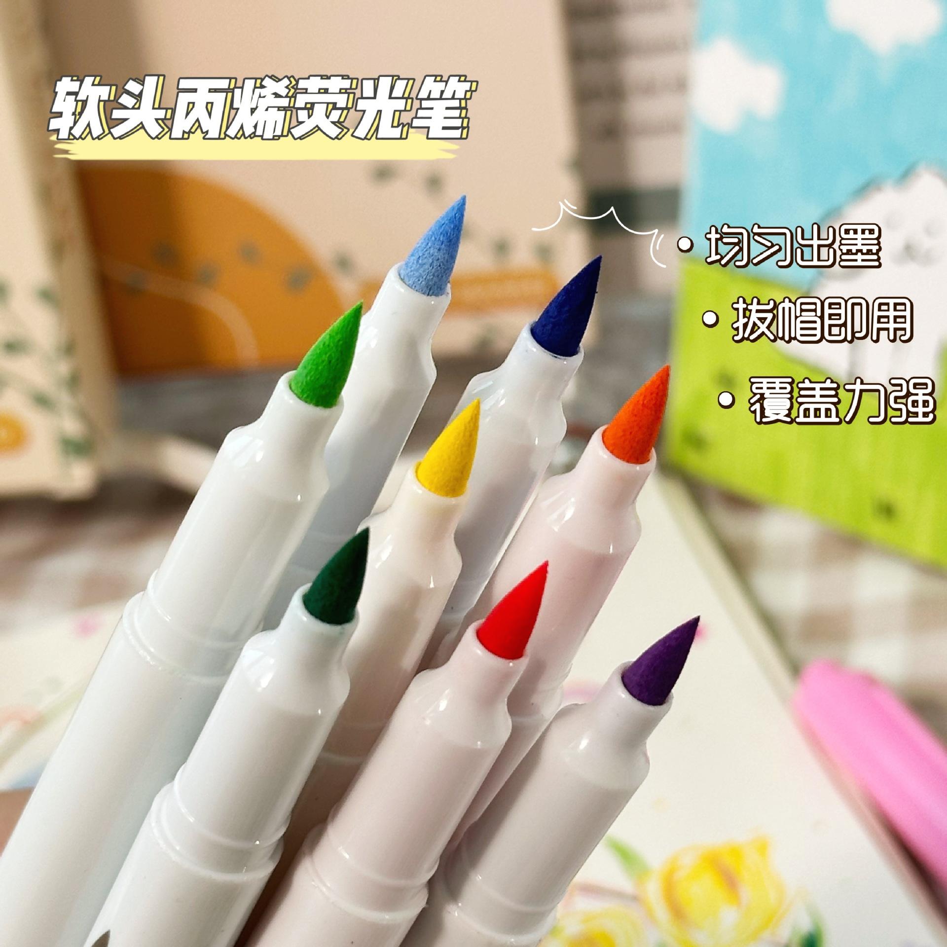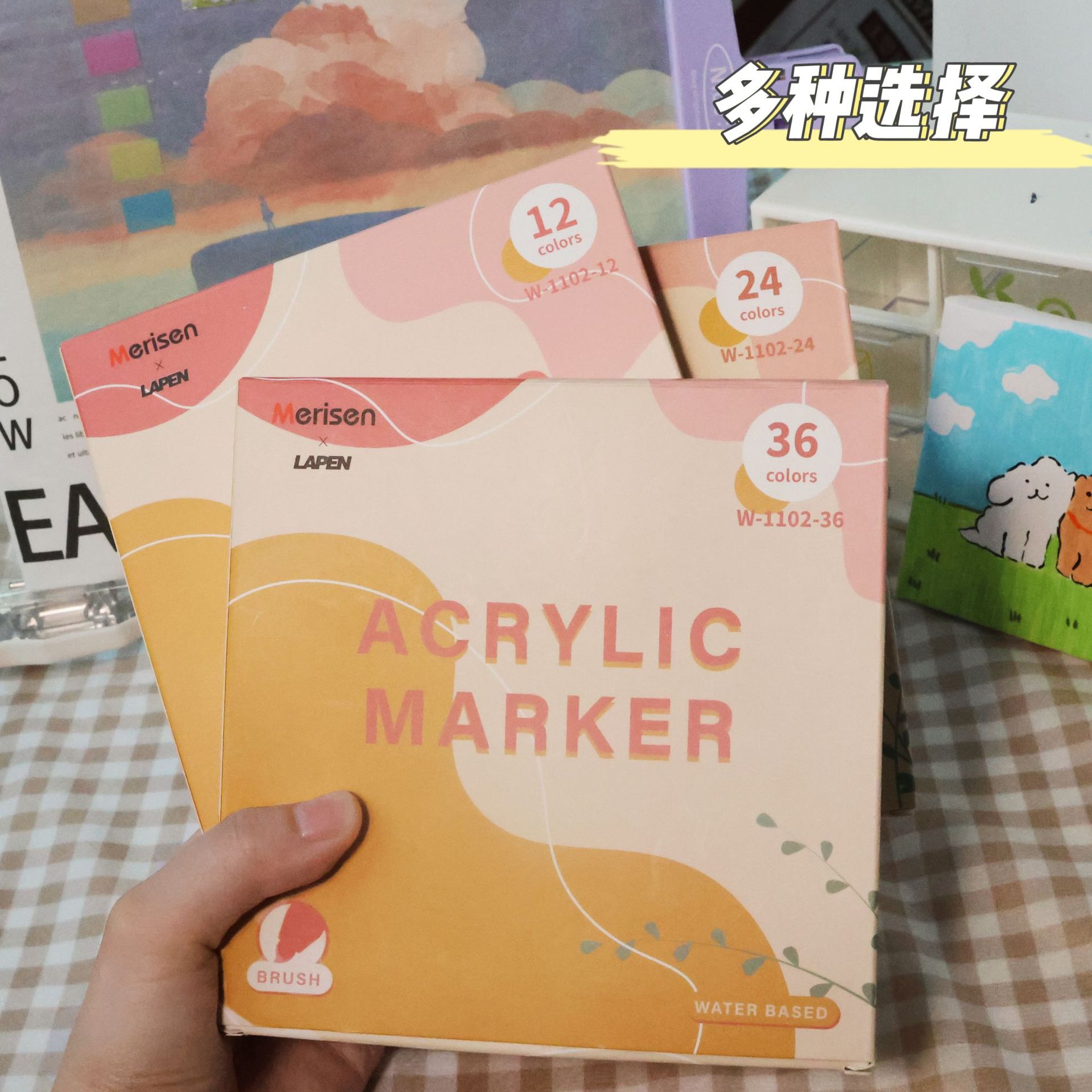 Plumón acrílico de punta suave, juego de 36 colores, pluma acrílica para estudiantes, no tóxica, lavable, con pincel, resistente al agua, pluma resaltadora