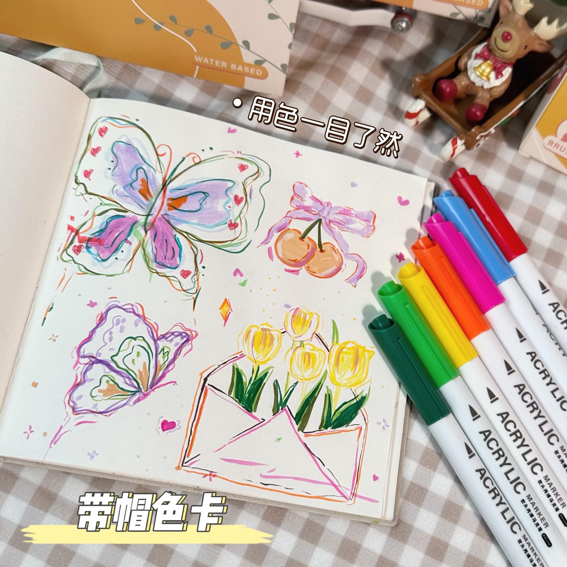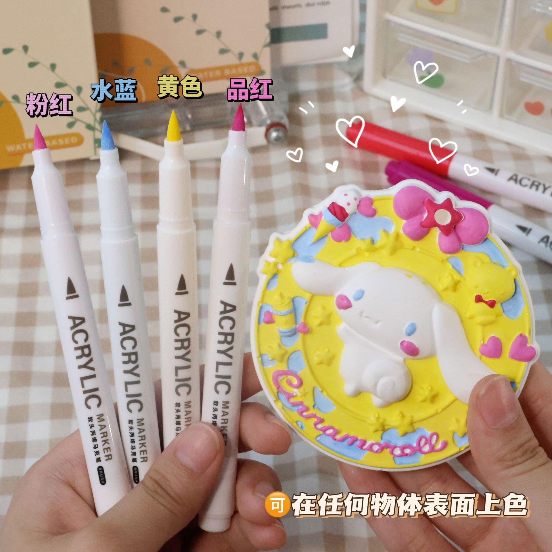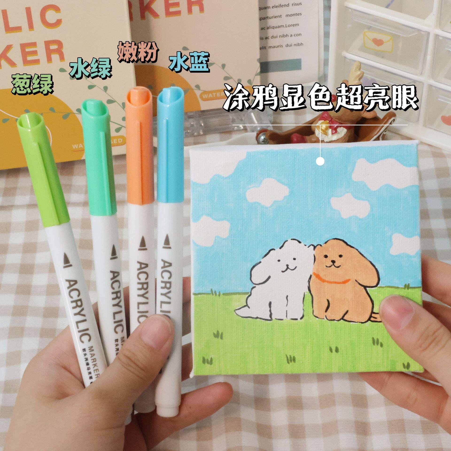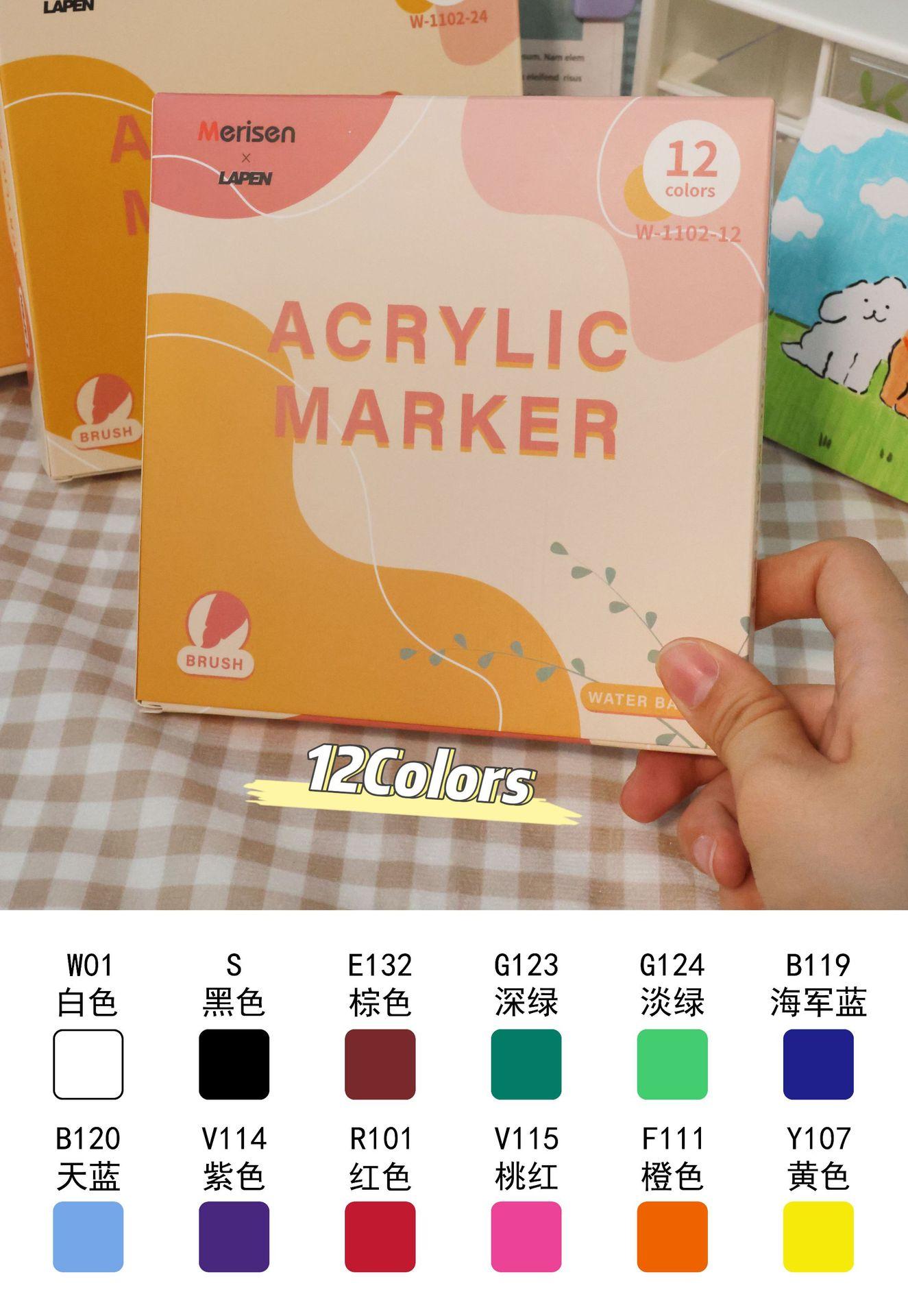 Plumón acrílico de punta suave, juego de 36 colores, pluma acrílica para estudiantes, no tóxica, lavable, con pincel, resistente al agua, pluma resaltadora