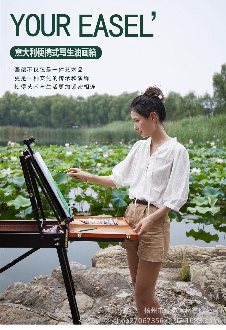 Caballete de pintura al óleo multifuncional italiano vintage, portátil, plegable, para exteriores, para estudiantes de arte.