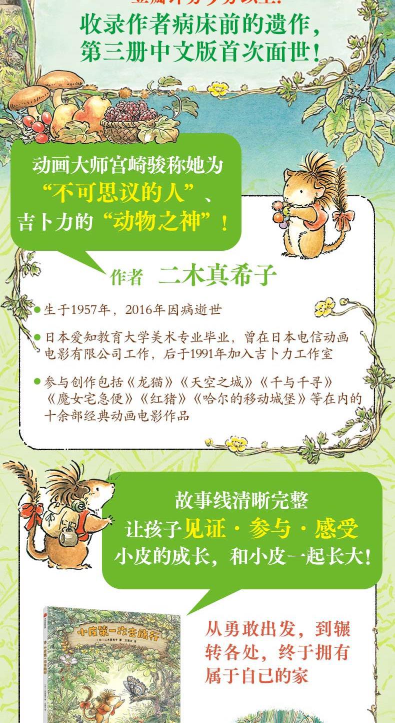 ★¡La obra de la artista original oficial de Studio Ghibli y Hayao Miyazaki, Makiko Futaki! ¡El maestro de la animación Hayao Miyazaki la llamó "una persona increíble"! La autora Makiko Futaki se unió a Studio Ghibli en 1991 y ha participado en la creación de muchas películas animadas clásicas incluyendo "Mi Vecino Totoro", "El Castillo en el Cielo", "El Viaje de Chihiro", "Ponyo en la Orilla", "Kiki: Entregas a Domicilio", "La Princesa Mononoke", etc. Debido a que es extremadamente buena para representar animales y plantas, la llaman el "Dios Animal" de Ghibli. ★¡La puntuación de Douban está por encima de 9 puntos, y es el recuerdo de infancia de muchos amantes de los libros y fans en China! ¡La versión china de la obra póstuma del autor recopilada en el lecho de enfermo se publica por primera vez! ★¡La línea argumental es clara y completa! Desde poder vivir de forma independiente hasta poder brillar y cuidar de los demás, ¡deja que los niños crezcan con Xiaopi! Los 3 volúmenes de historias están conectados, etc.