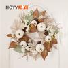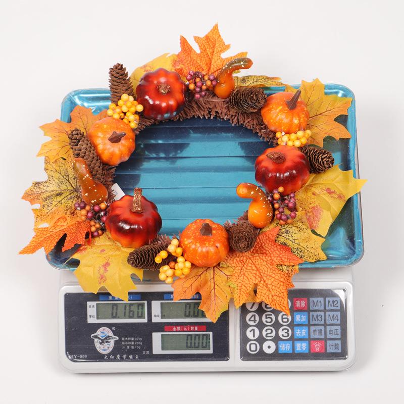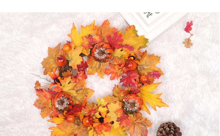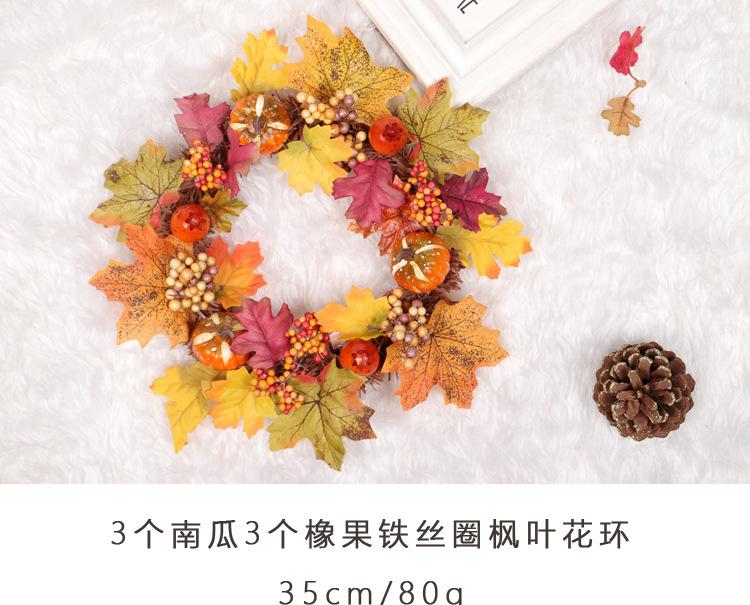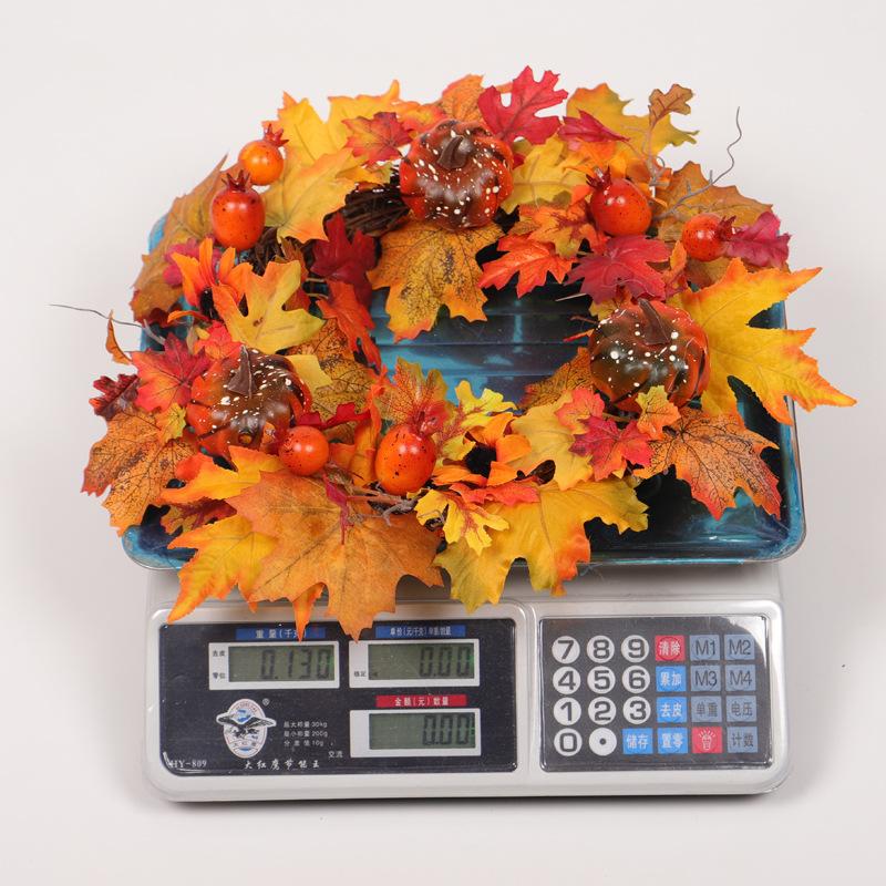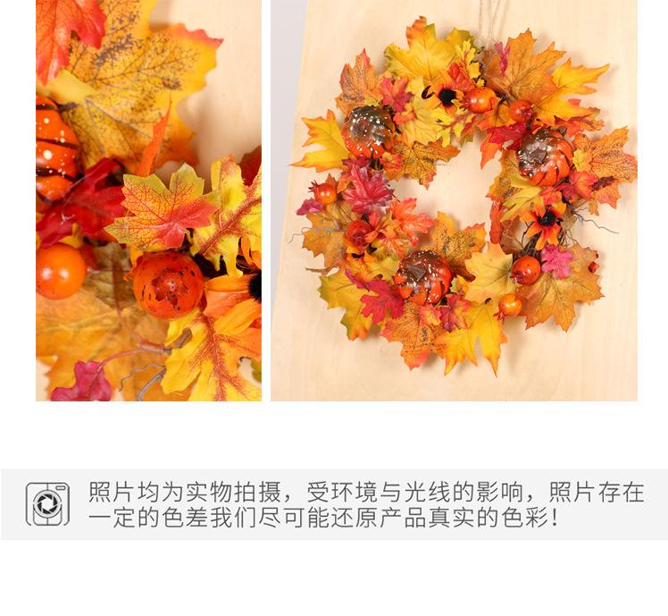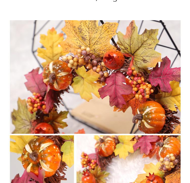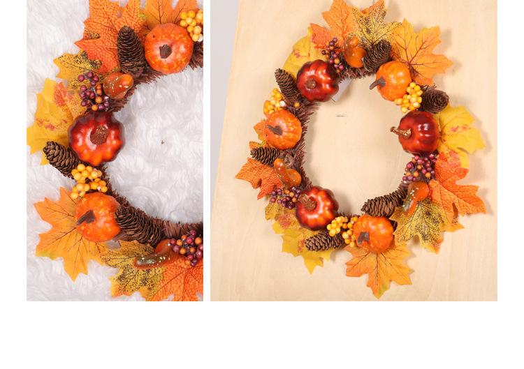 Corona de hojas de arce de Halloween Hongyu, corona de calabaza de otoño, colgante de pared para puerta, decoración navideña de cosecha, adornos al por mayor