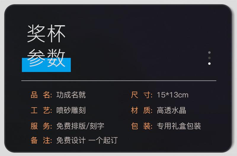 2. El logotipo y el texto tendrán un coste de 10 yuanes por unidad al comprar menos de 5 trofeos. Se requieren imágenes vectoriales como .AI, .CDR o .PSD. La resolución de píxeles de JPG, BMP y otros formatos de imagen no debe ser inferior a 500*500. Si necesita firmar a mano, utilice pluma estilográfica, rotulador u otro bolígrafo de mayor grosor.