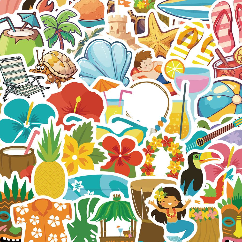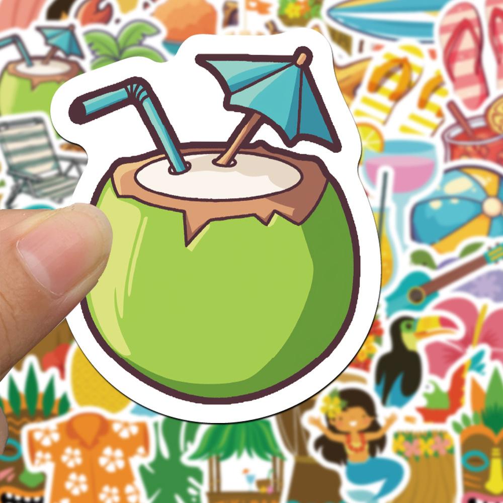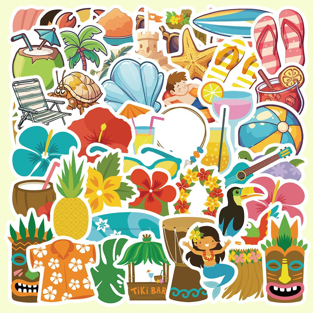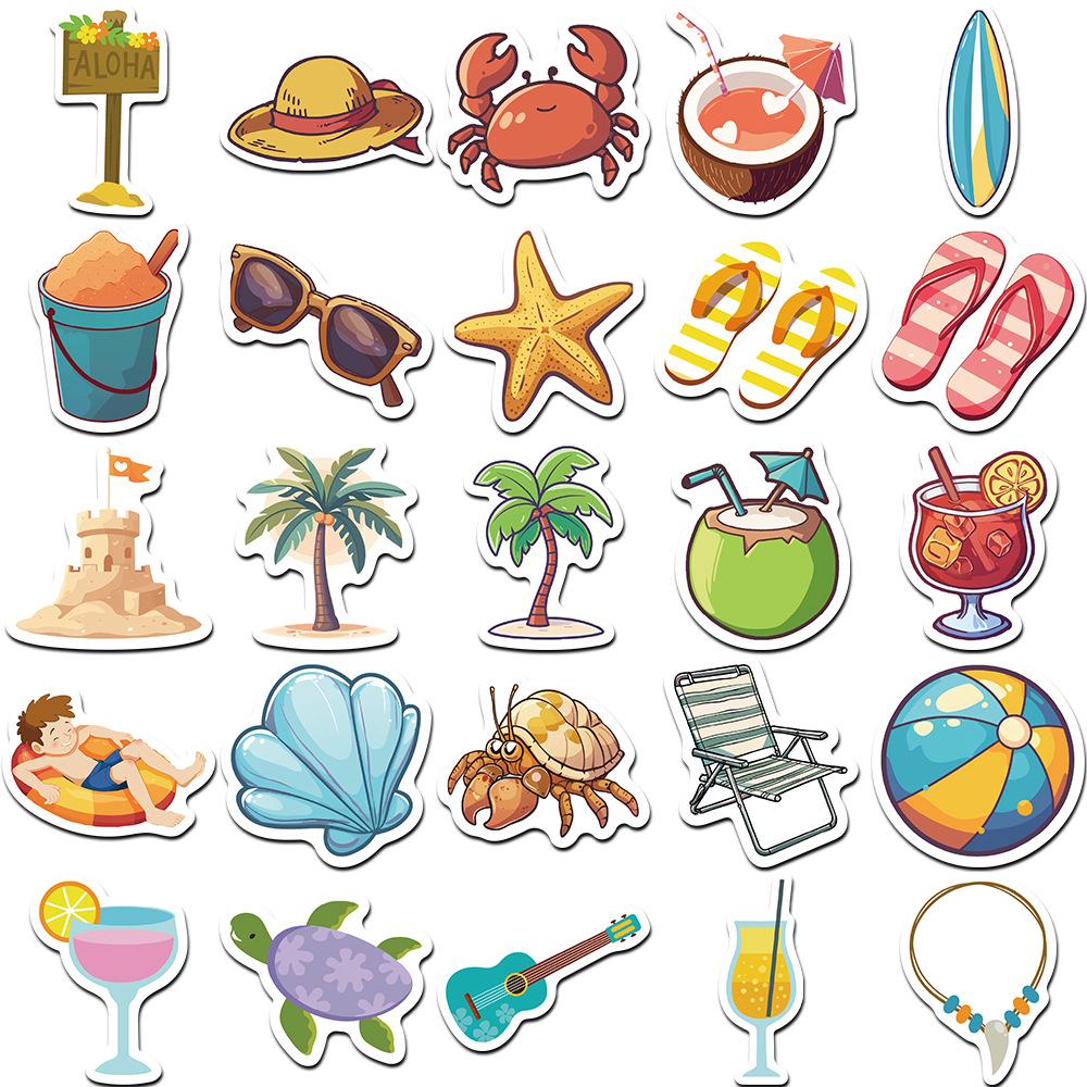 50 pegatinas de dibujos animados de verano, pegatinas de material de cuenta de mano, pegatinas para tazas, papelería, equipaje, notas, pegatinas impermeables