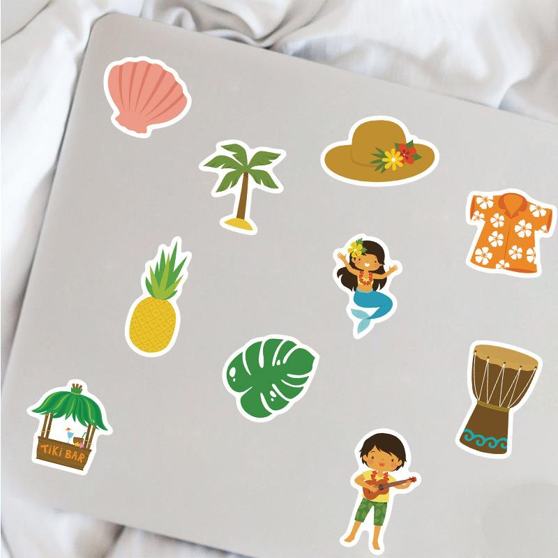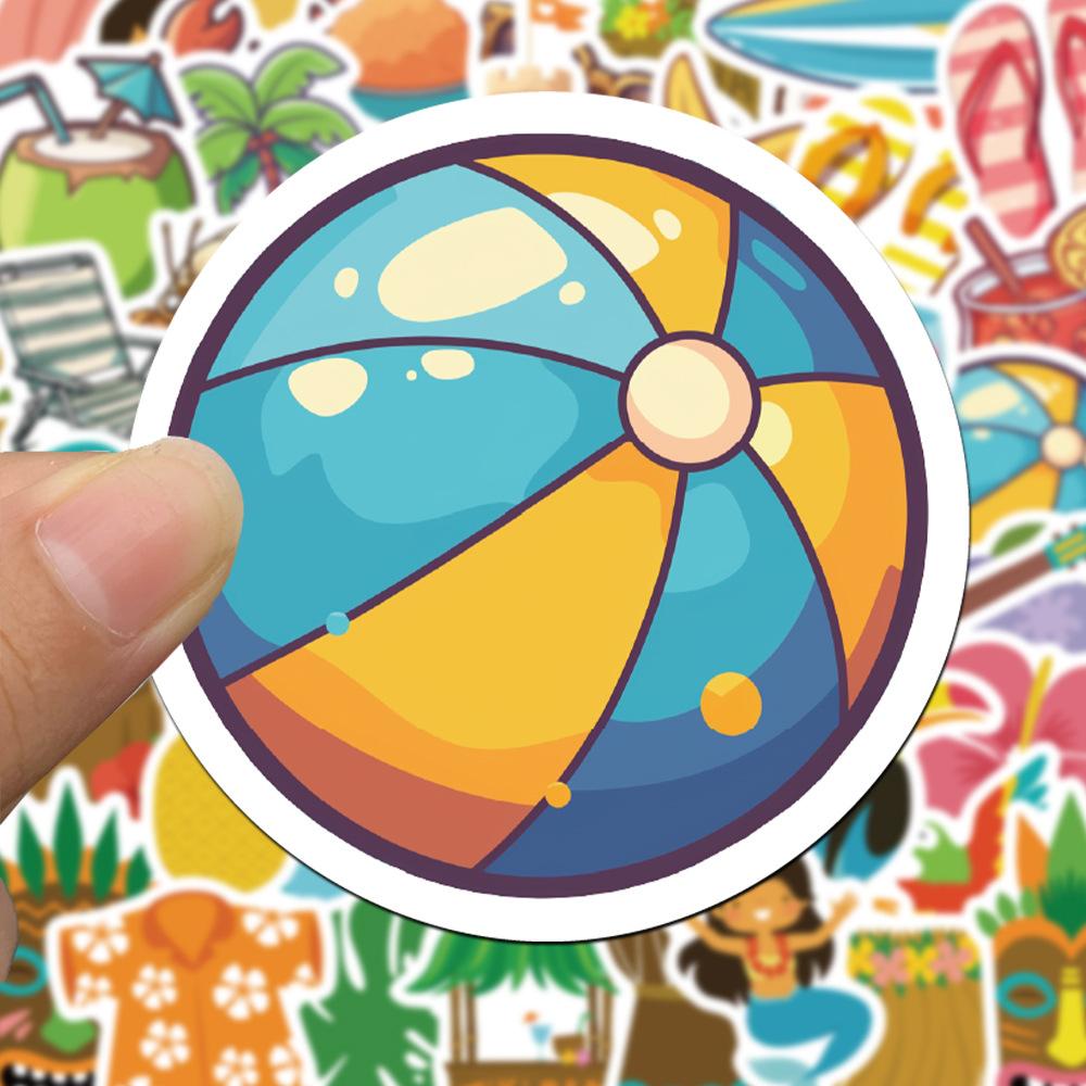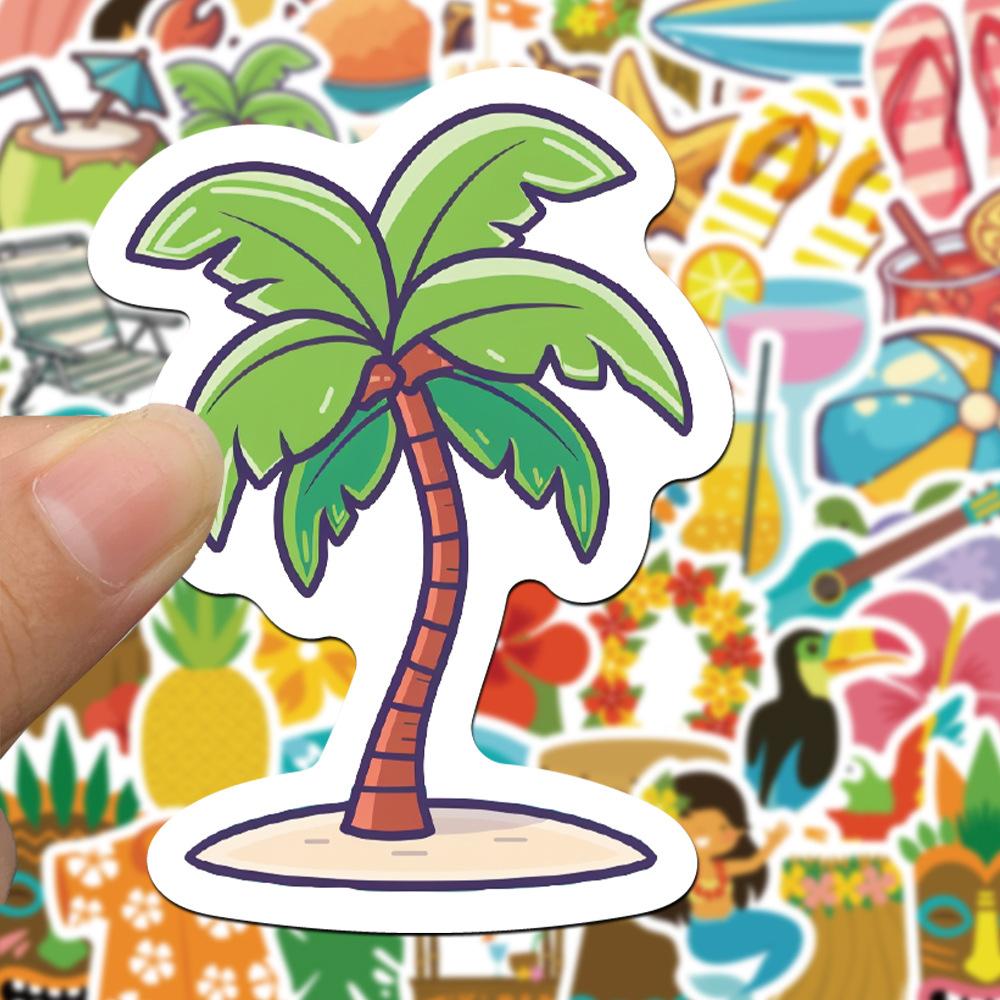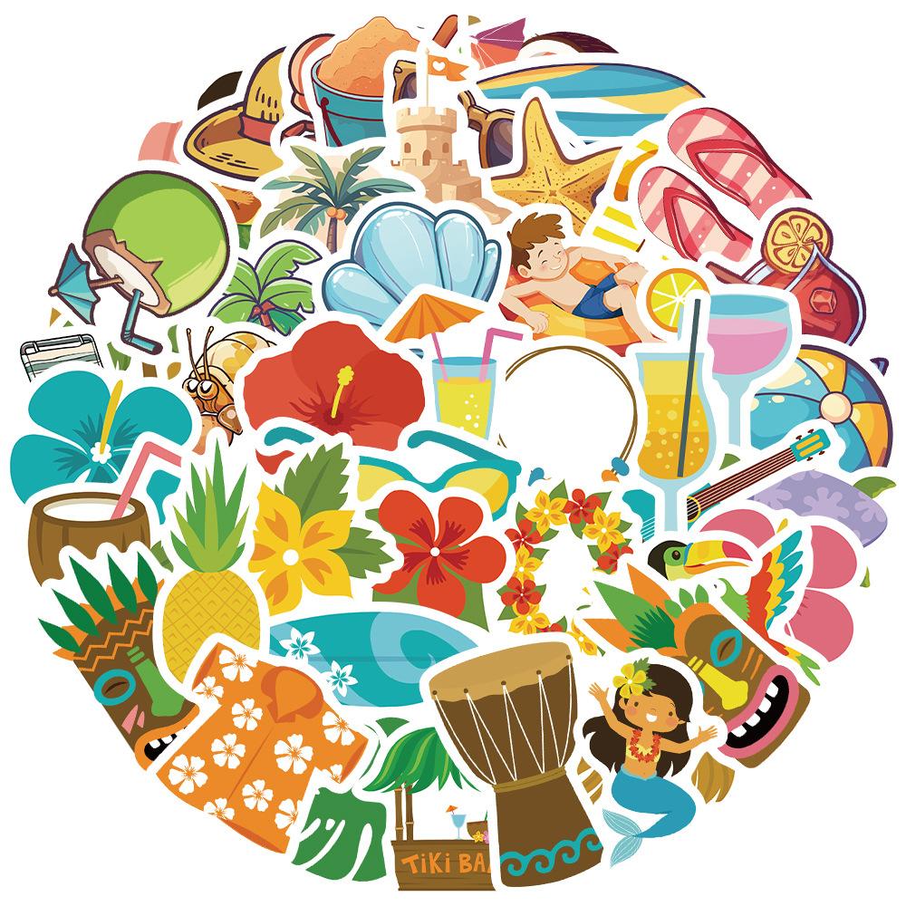 50 pegatinas de dibujos animados de verano, pegatinas de material de cuenta de mano, pegatinas para tazas, papelería, equipaje, notas, pegatinas impermeables
