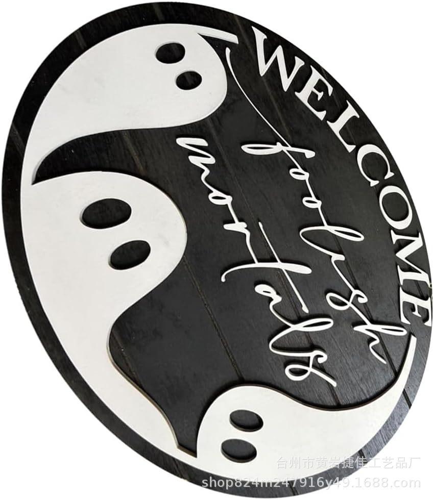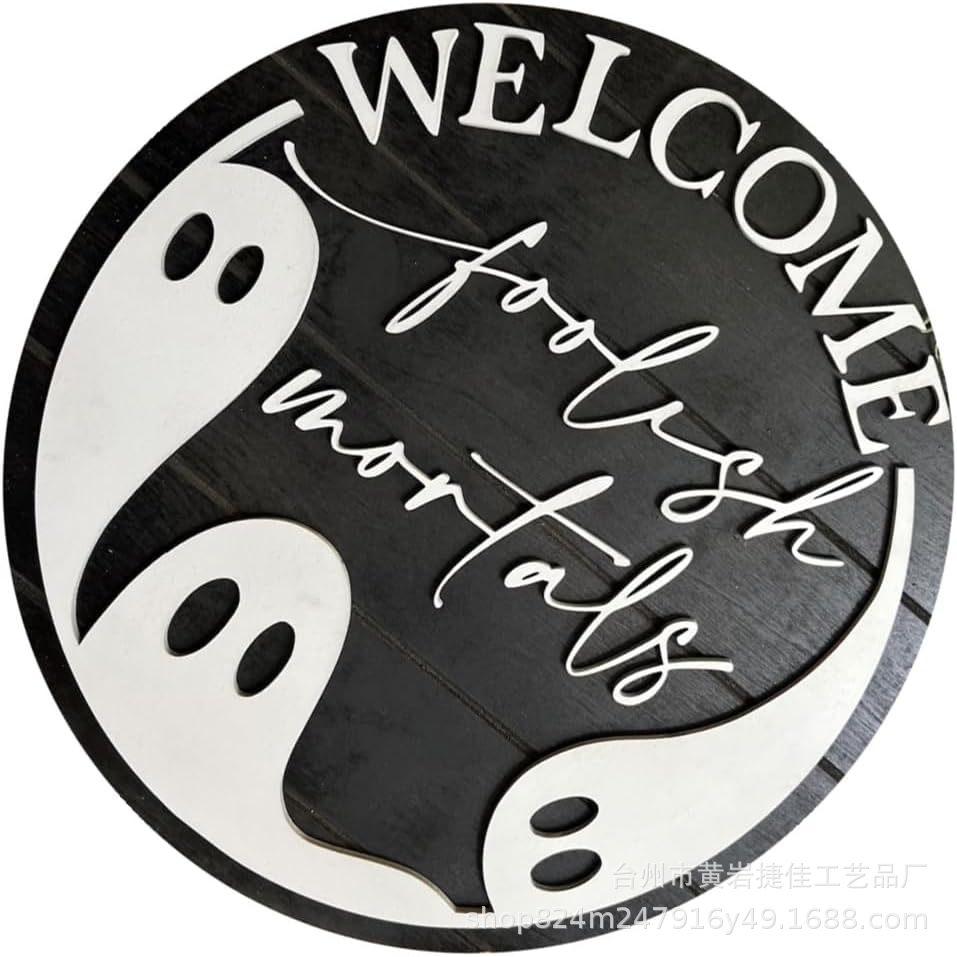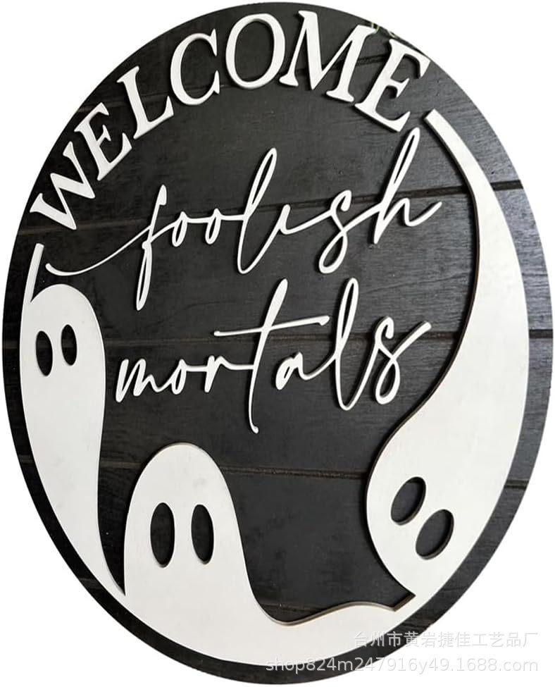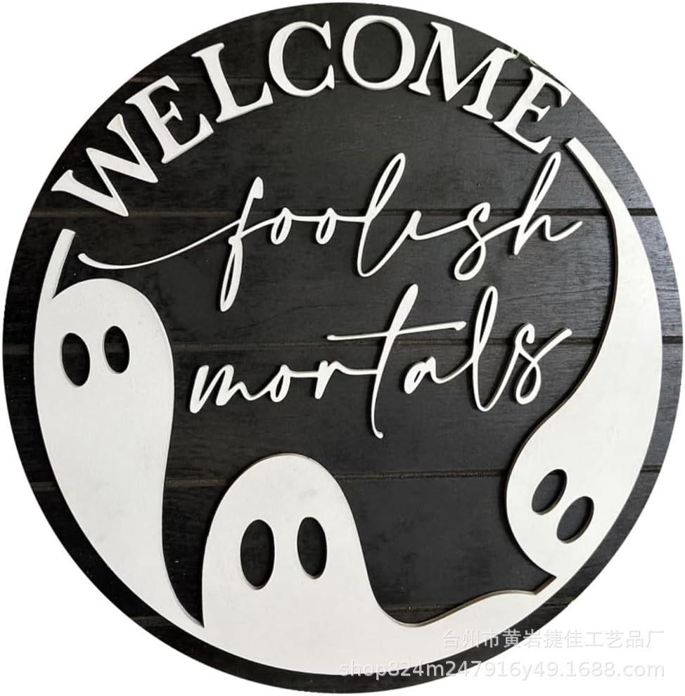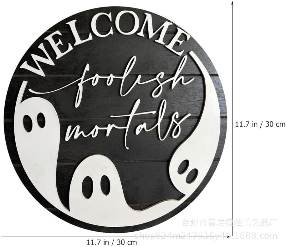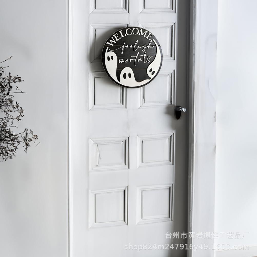 Letrero colgante de Halloween para puerta principal decoración de porche de madera regalo para fiesta de Halloween